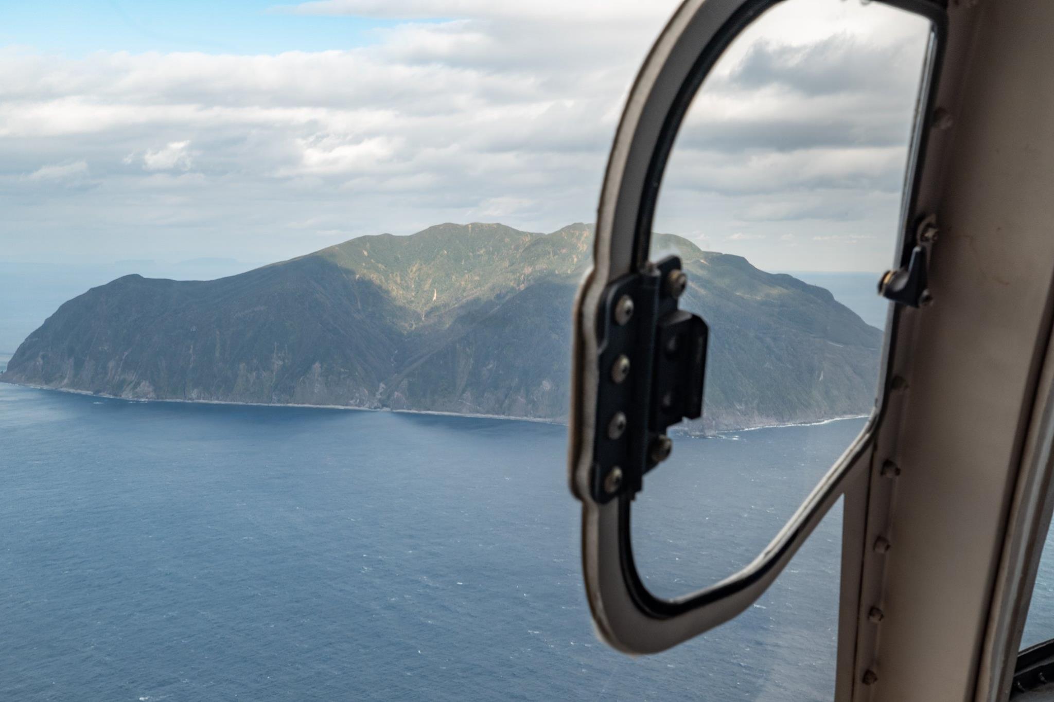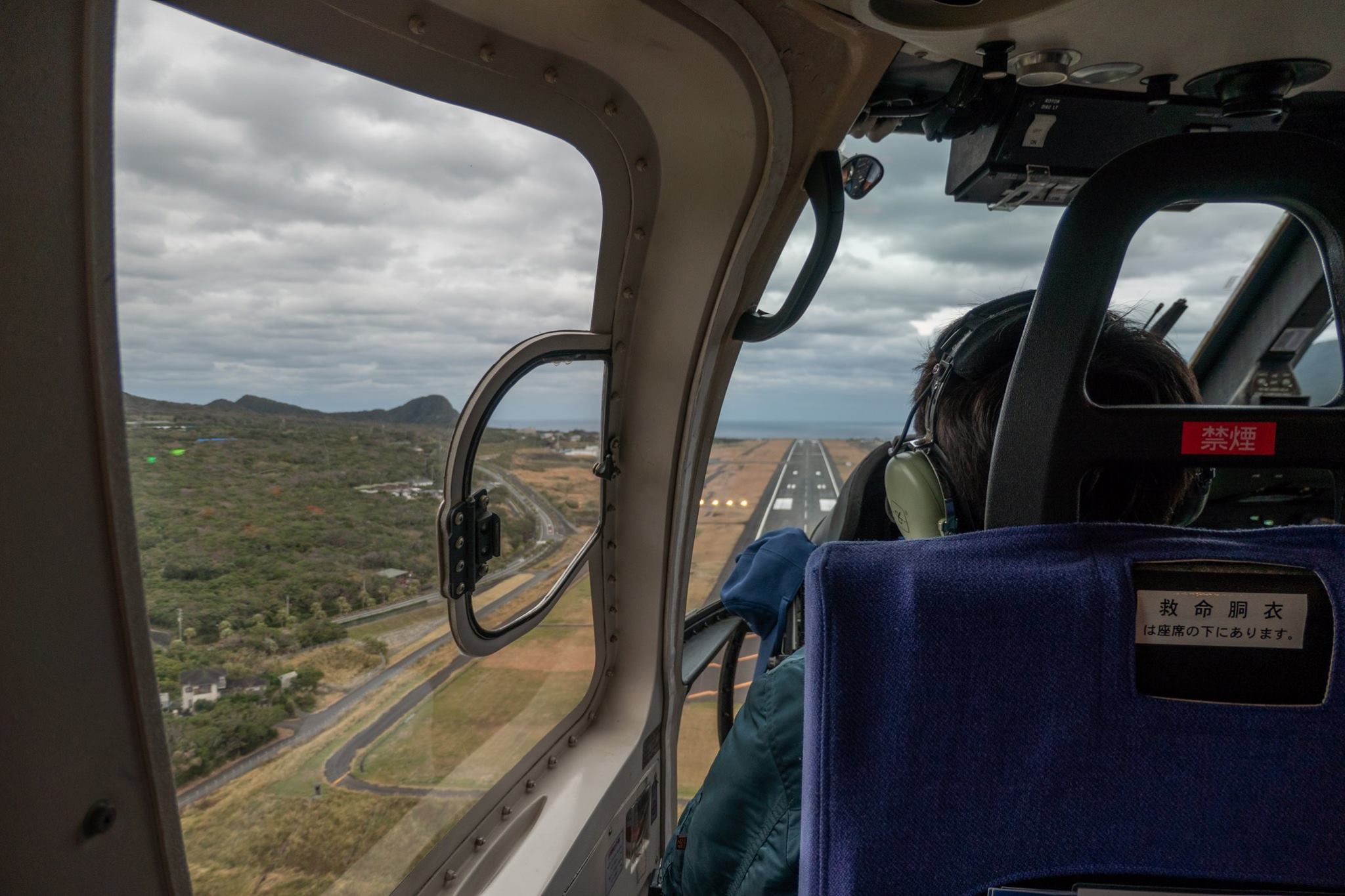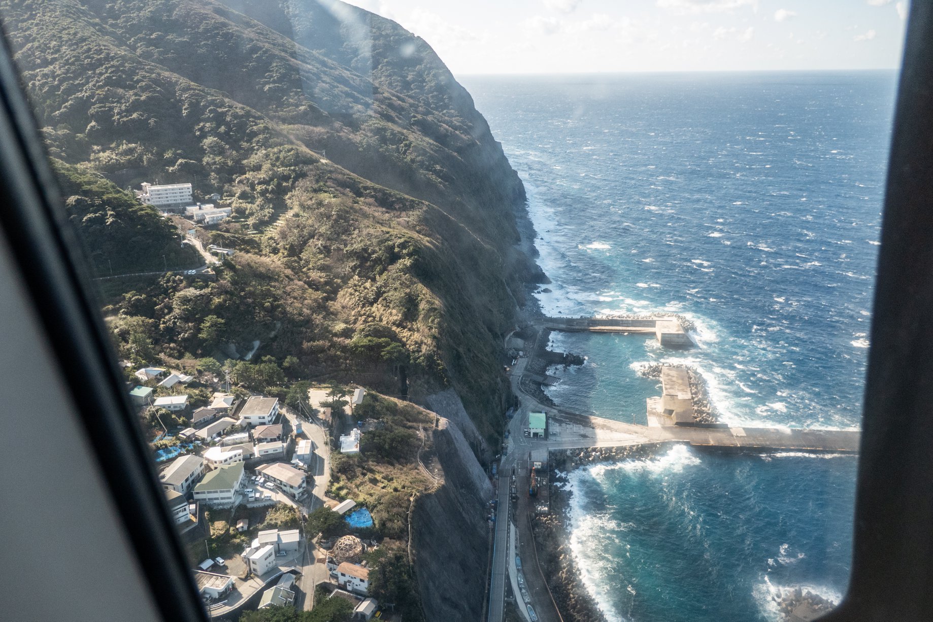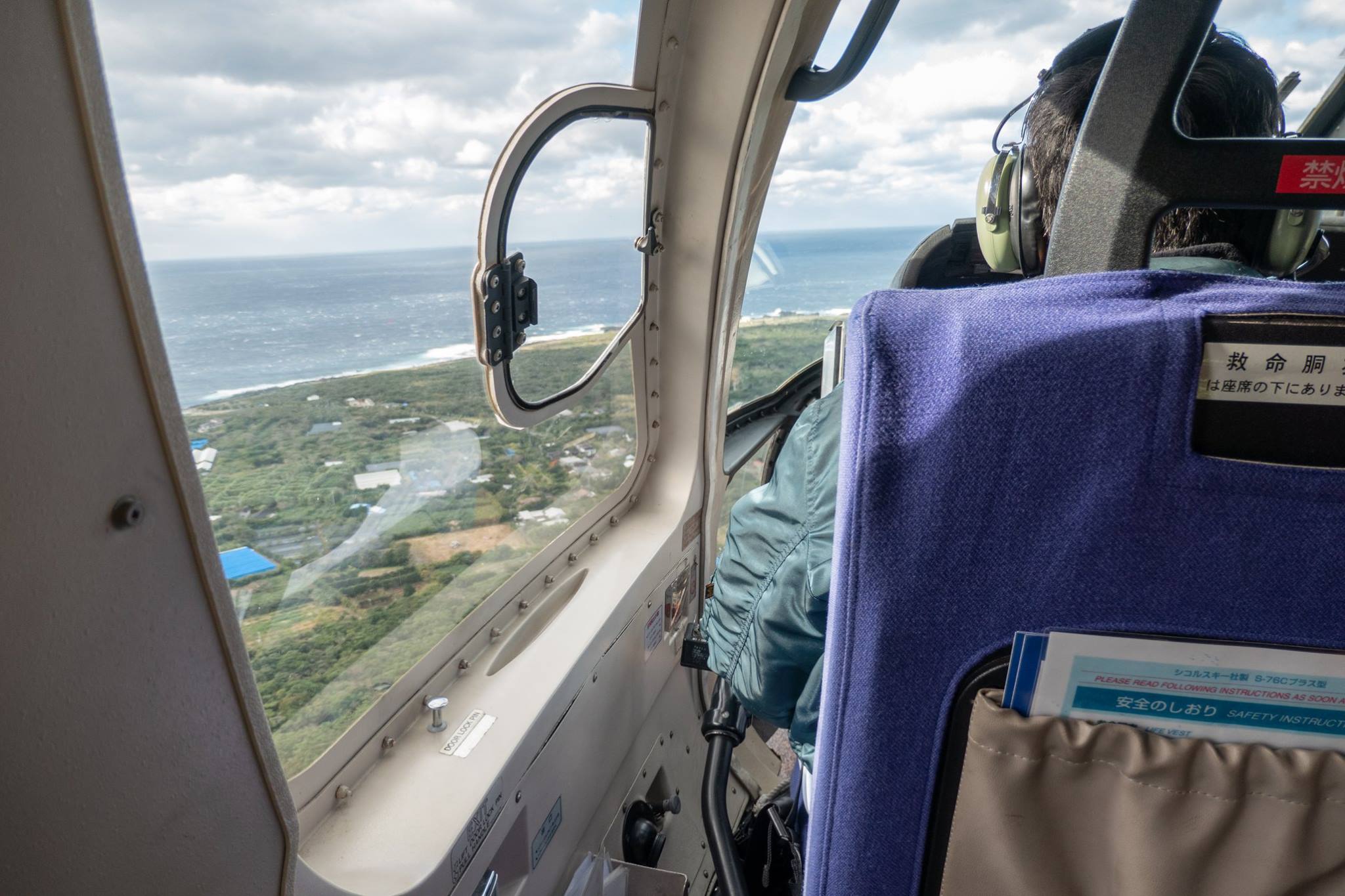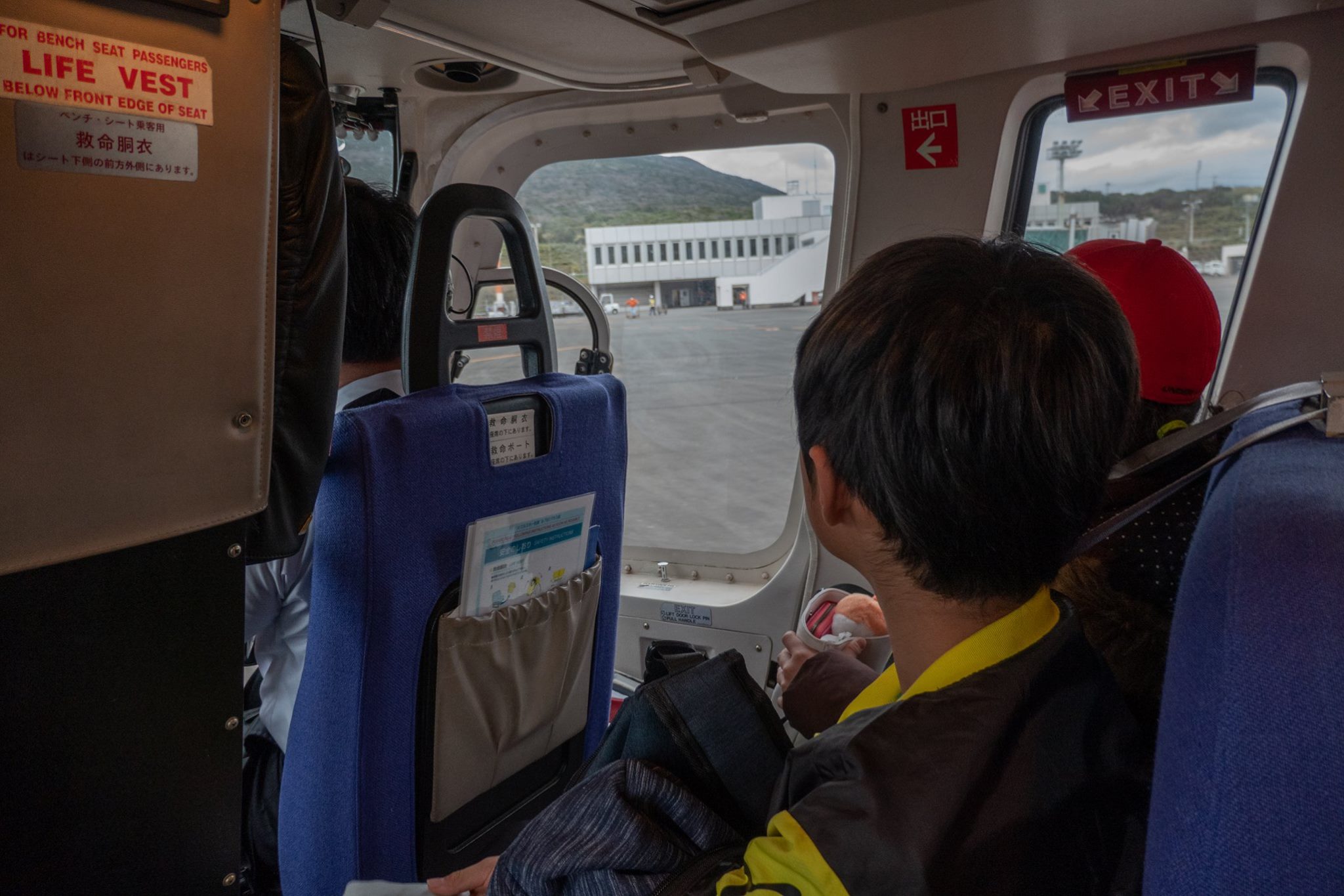 いったん八丈島でヘリを降りて、八丈空港待合室で待機した後、再びヘリに乗り込んで御蔵島へ向かう。