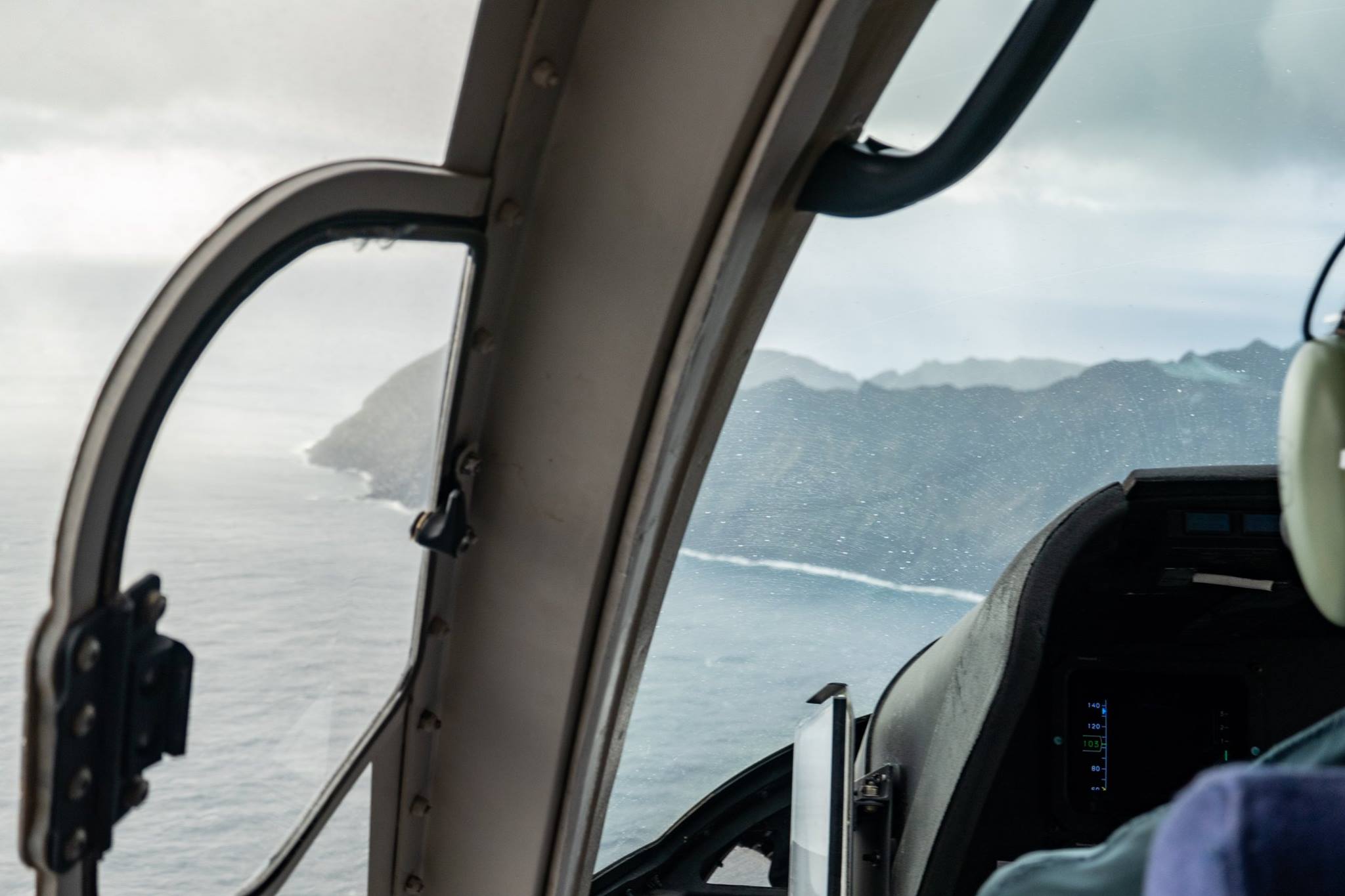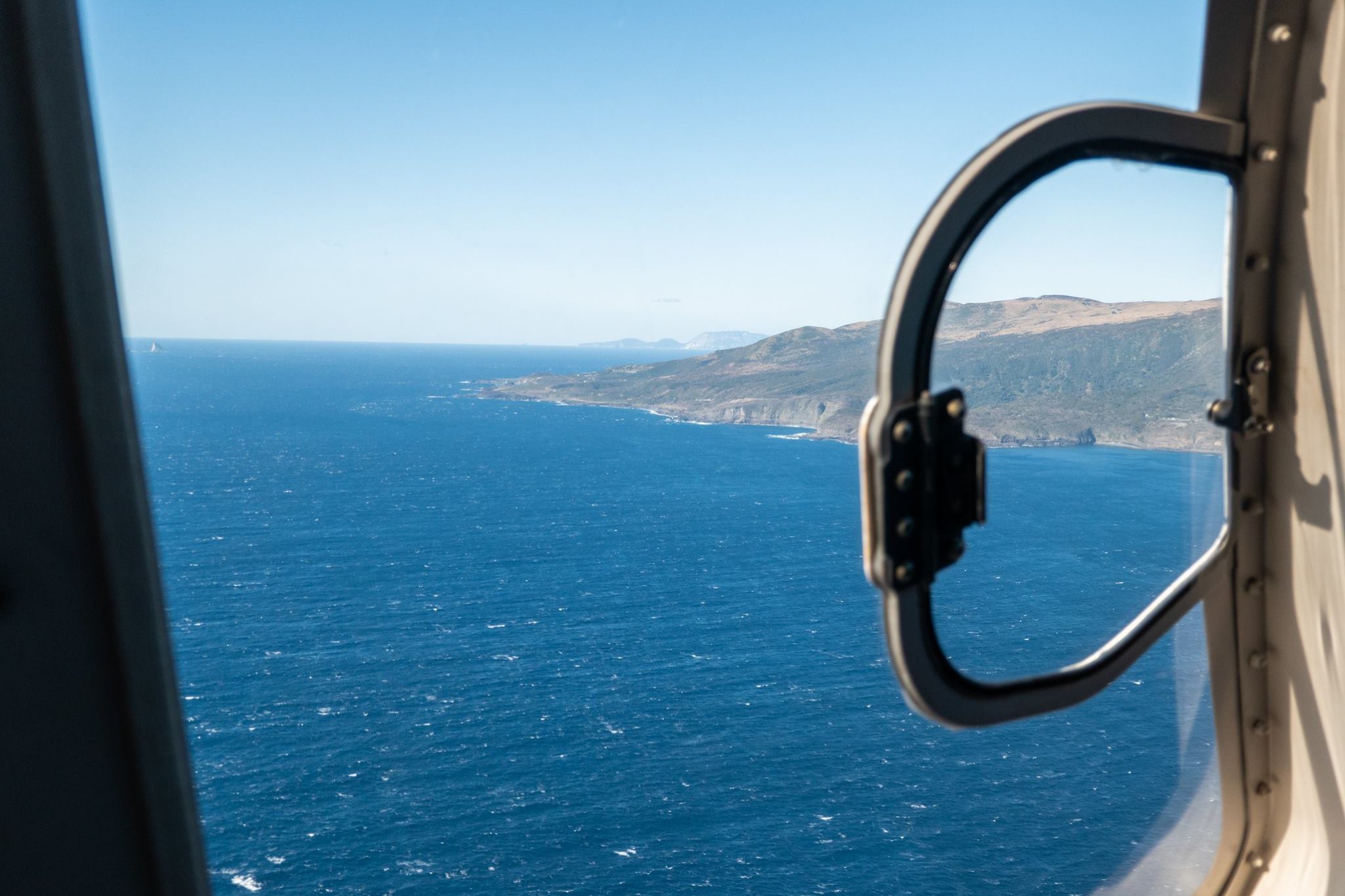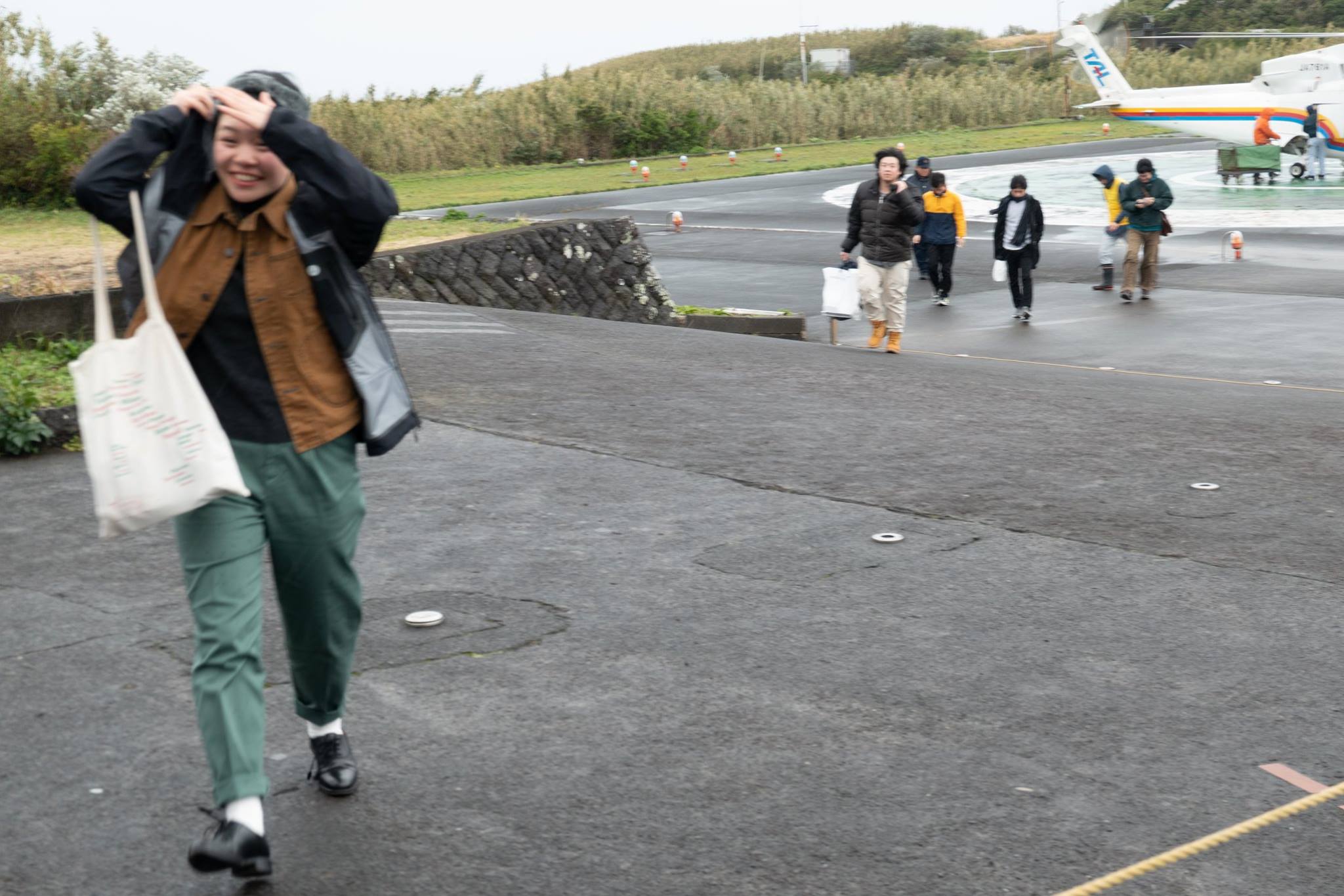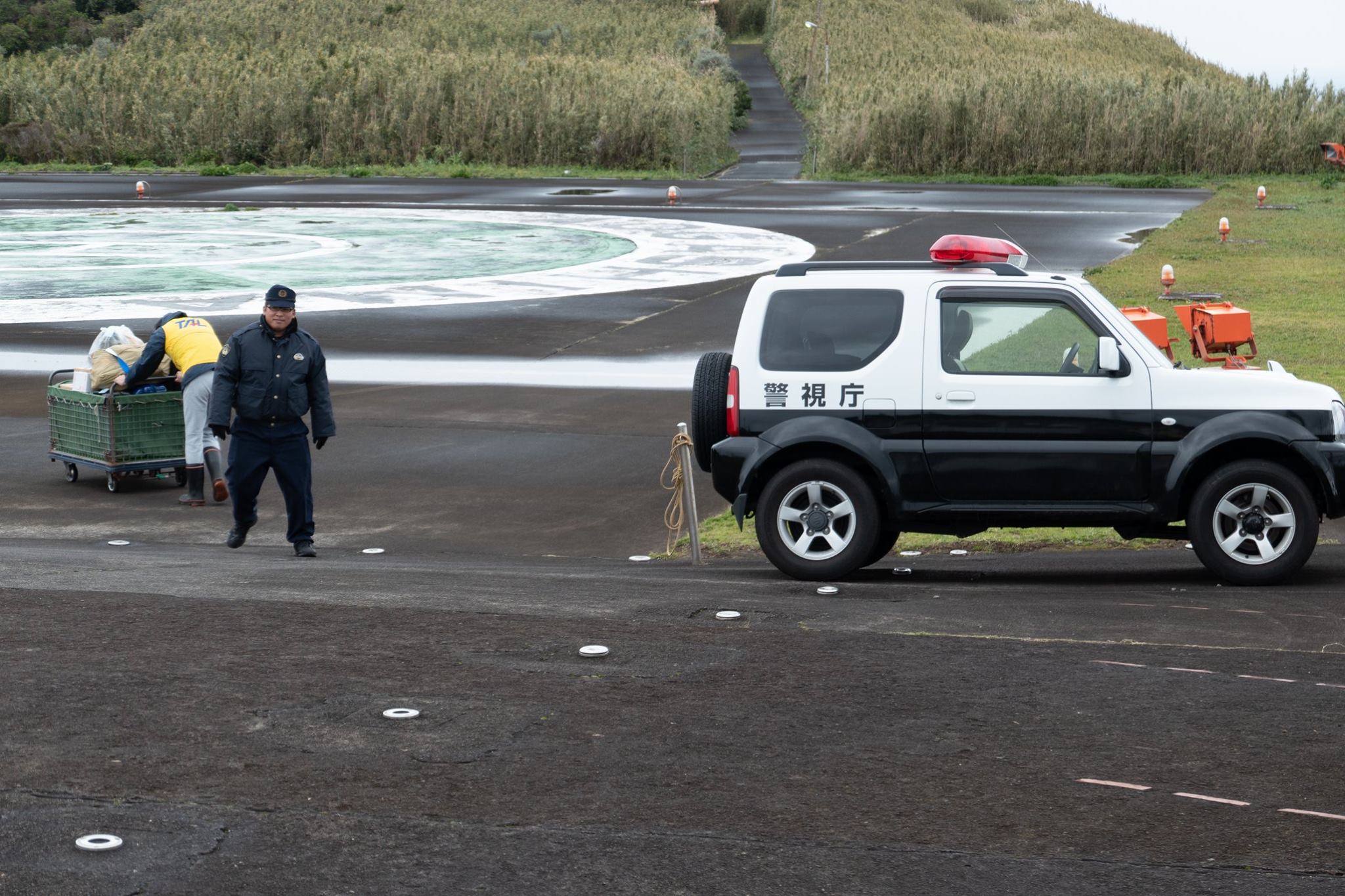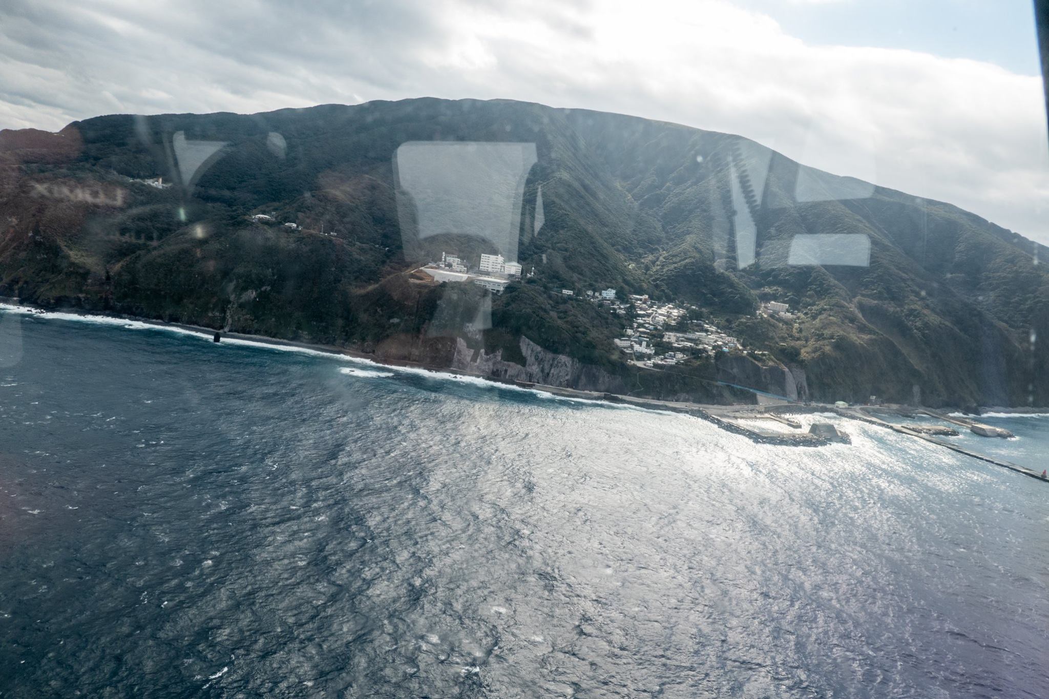 いったん八丈島でヘリを降りて、八丈空港待合室で待機した後、再びヘリに乗り込んで御蔵島へ向かう。
