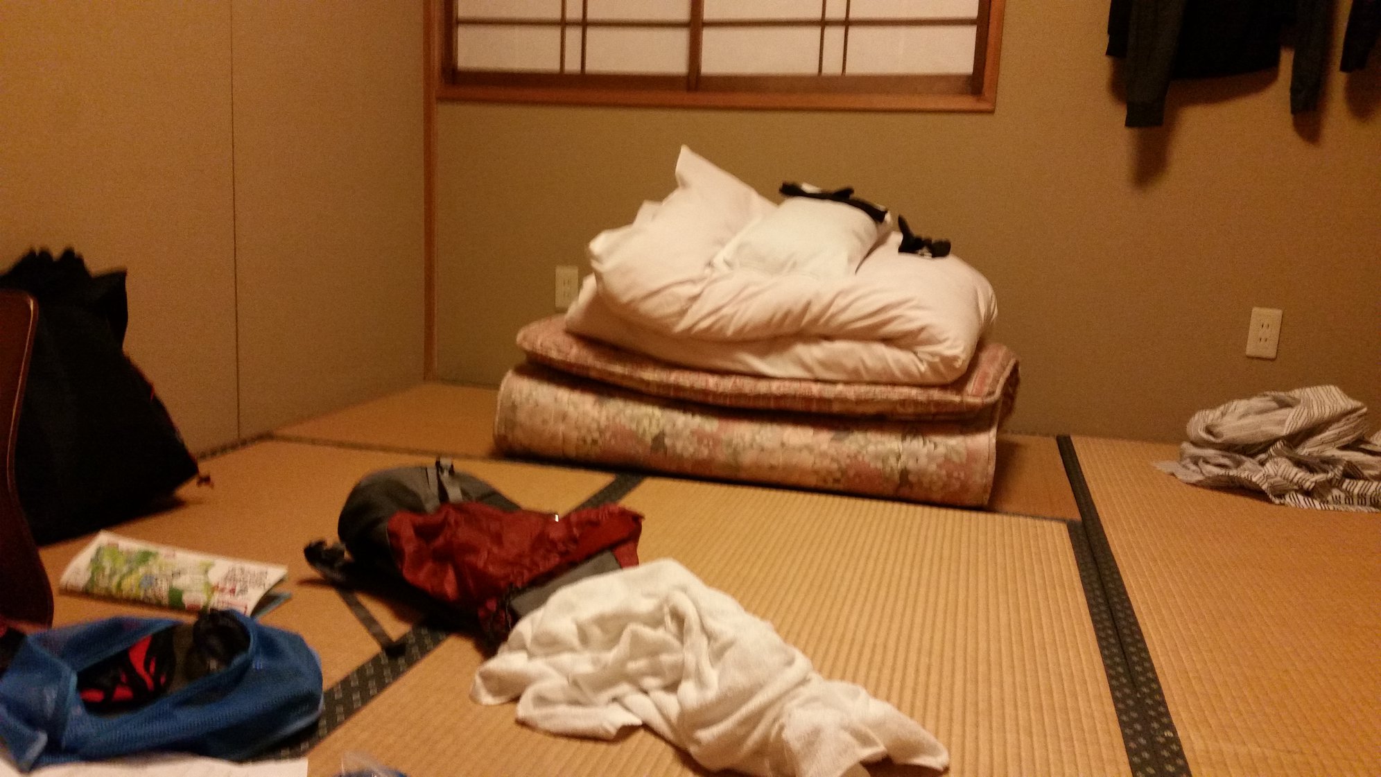 隣部屋の職人さんのテレビの音がうるさく、よくねむれなかった。