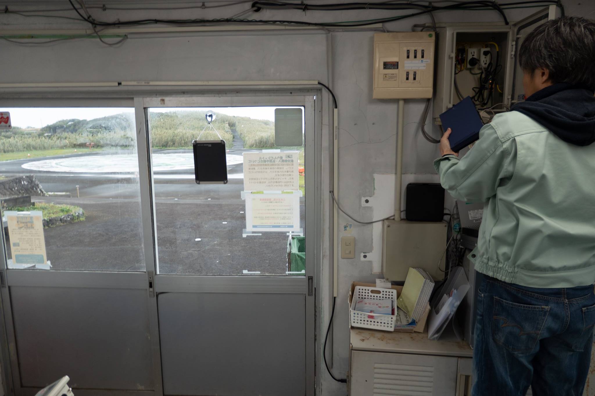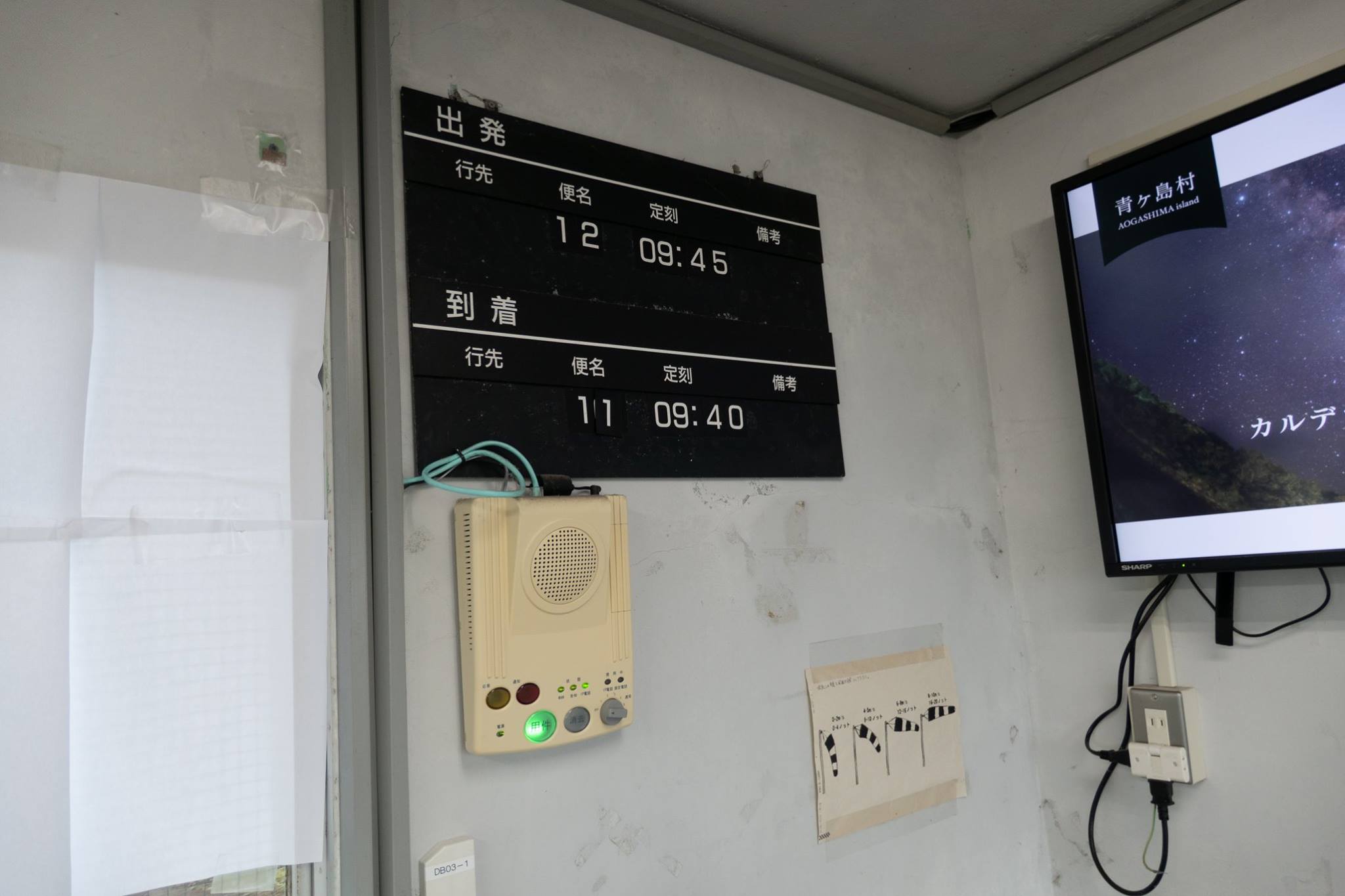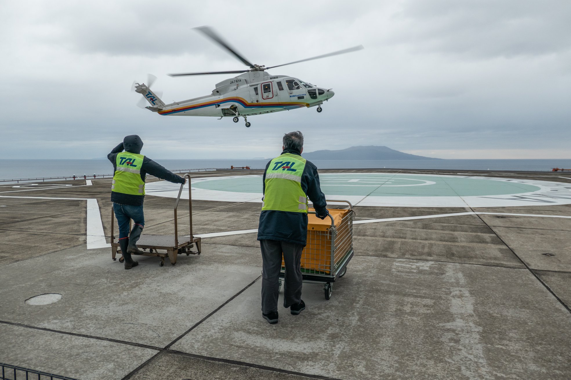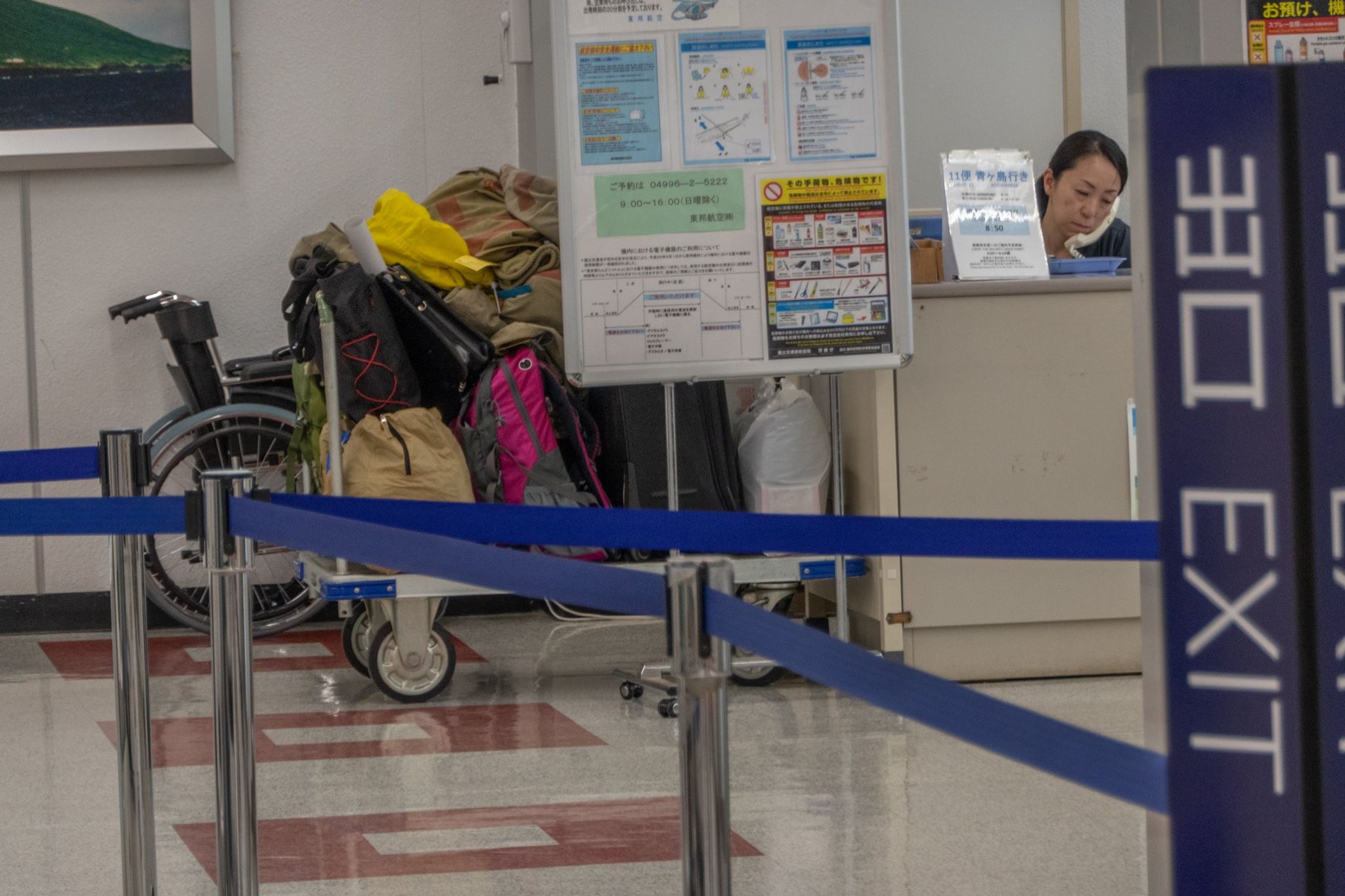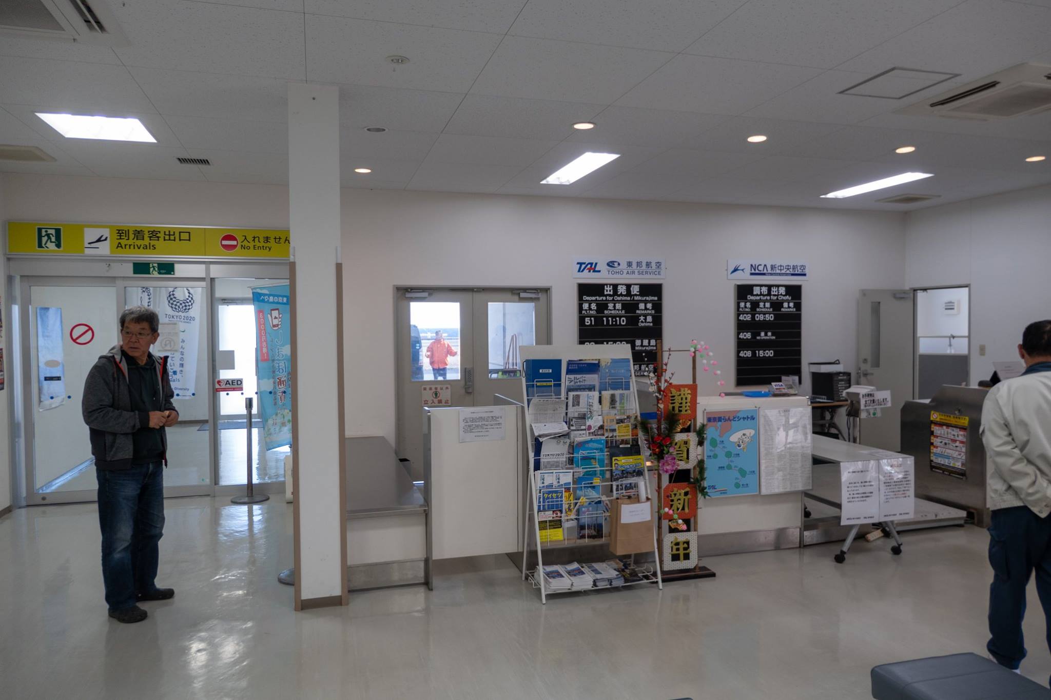 港近くまで下って、再びヘリポートまで登ってくると、ヘリポート地下のアイランドシャトル受付にはもう係員が来ていた。受付はまだ始まっていなかったけど、暖房のきいた建物には入れた。