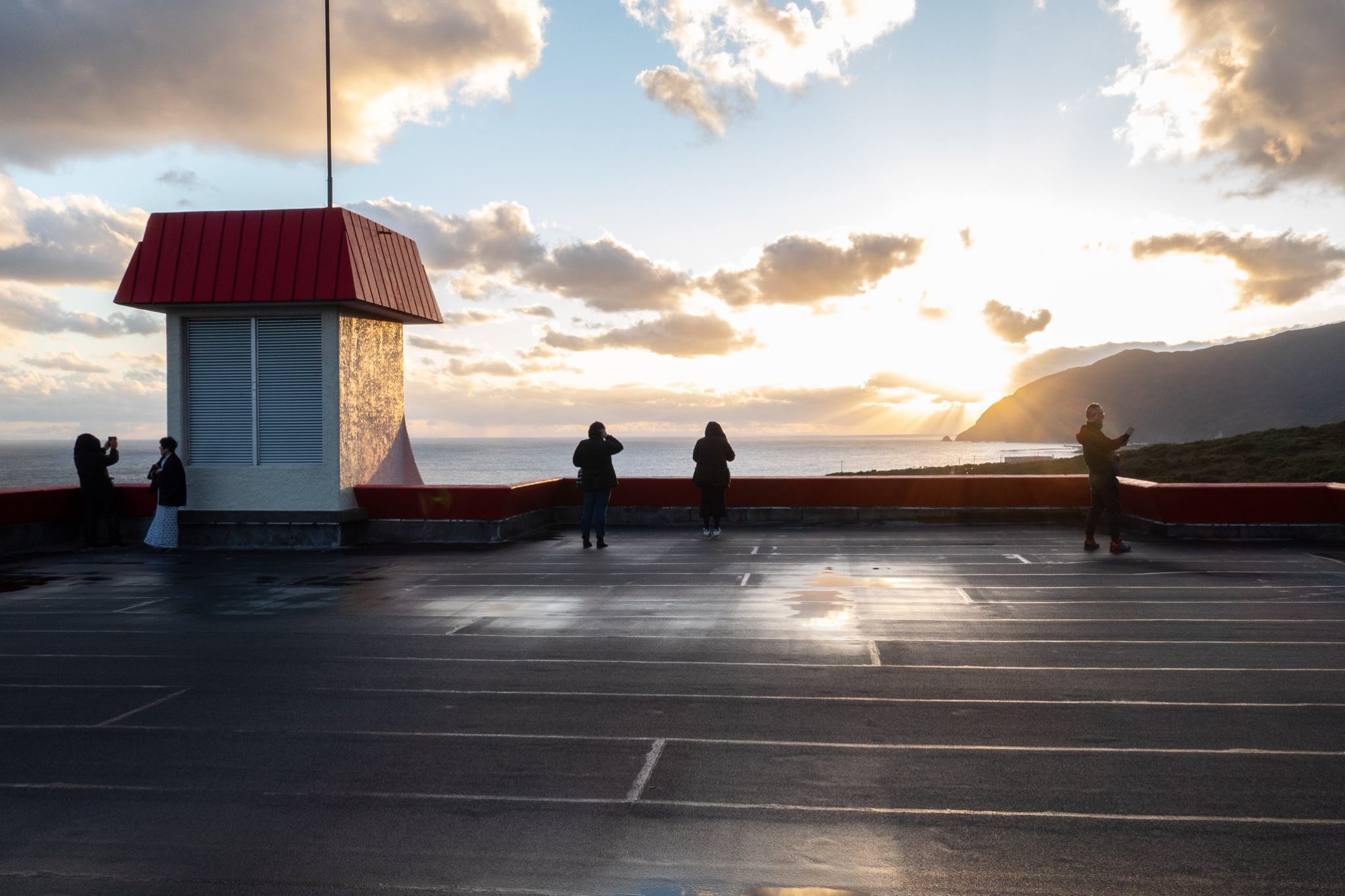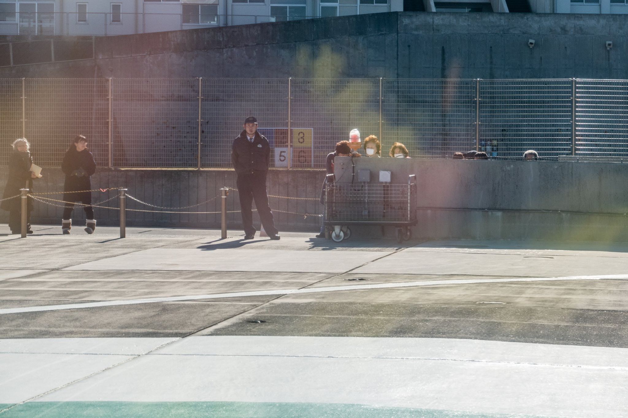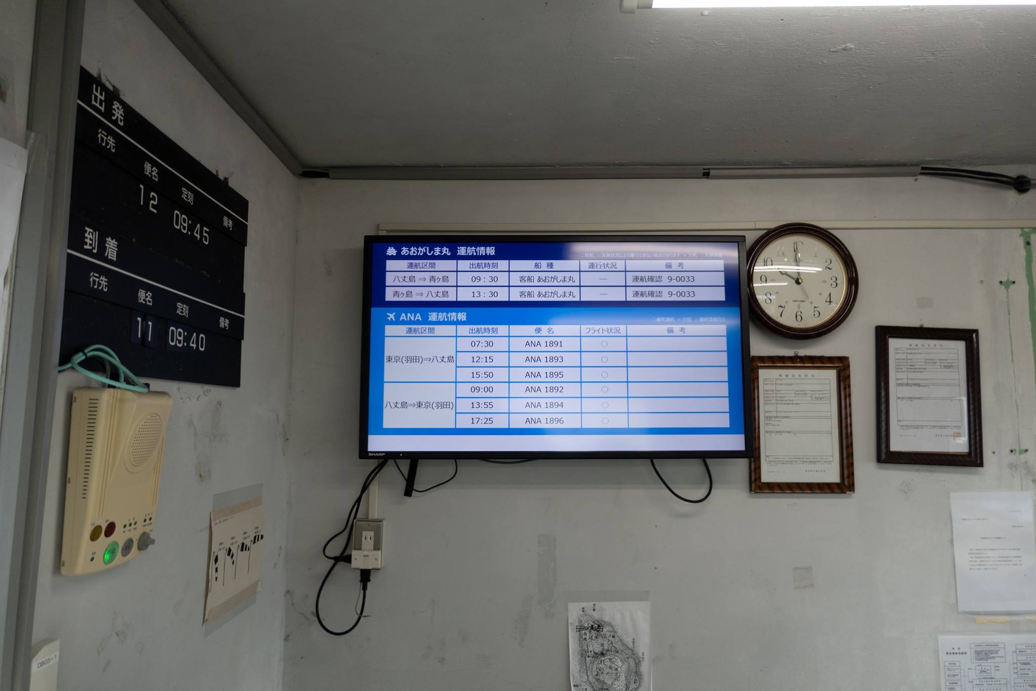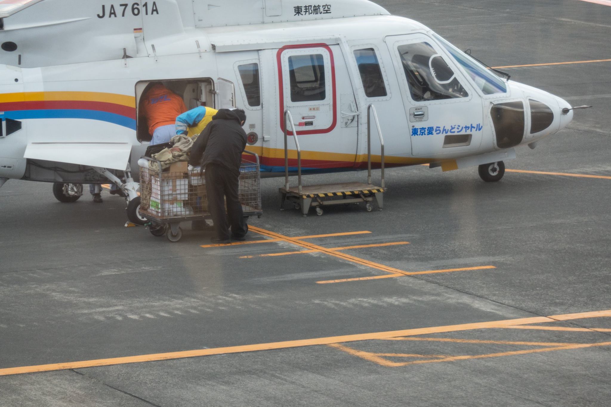 港近くまで下って、再びヘリポートまで登ってくると、ヘリポート地下のアイランドシャトル受付にはもう係員が来ていた。受付はまだ始まっていなかったけど、暖房のきいた建物には入れた。