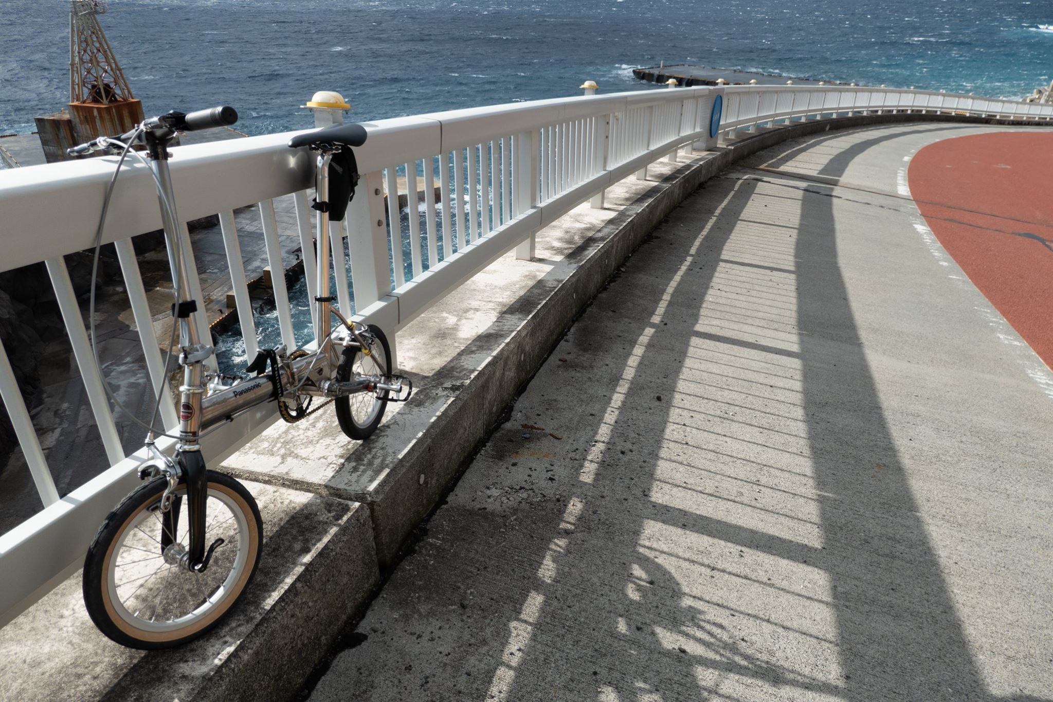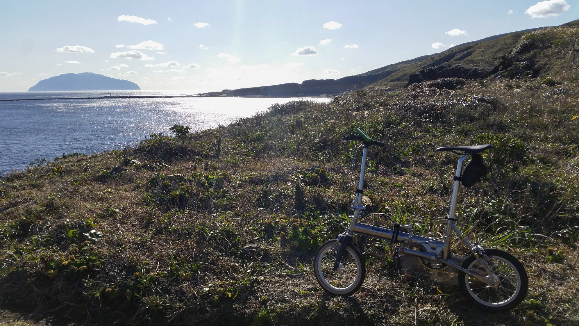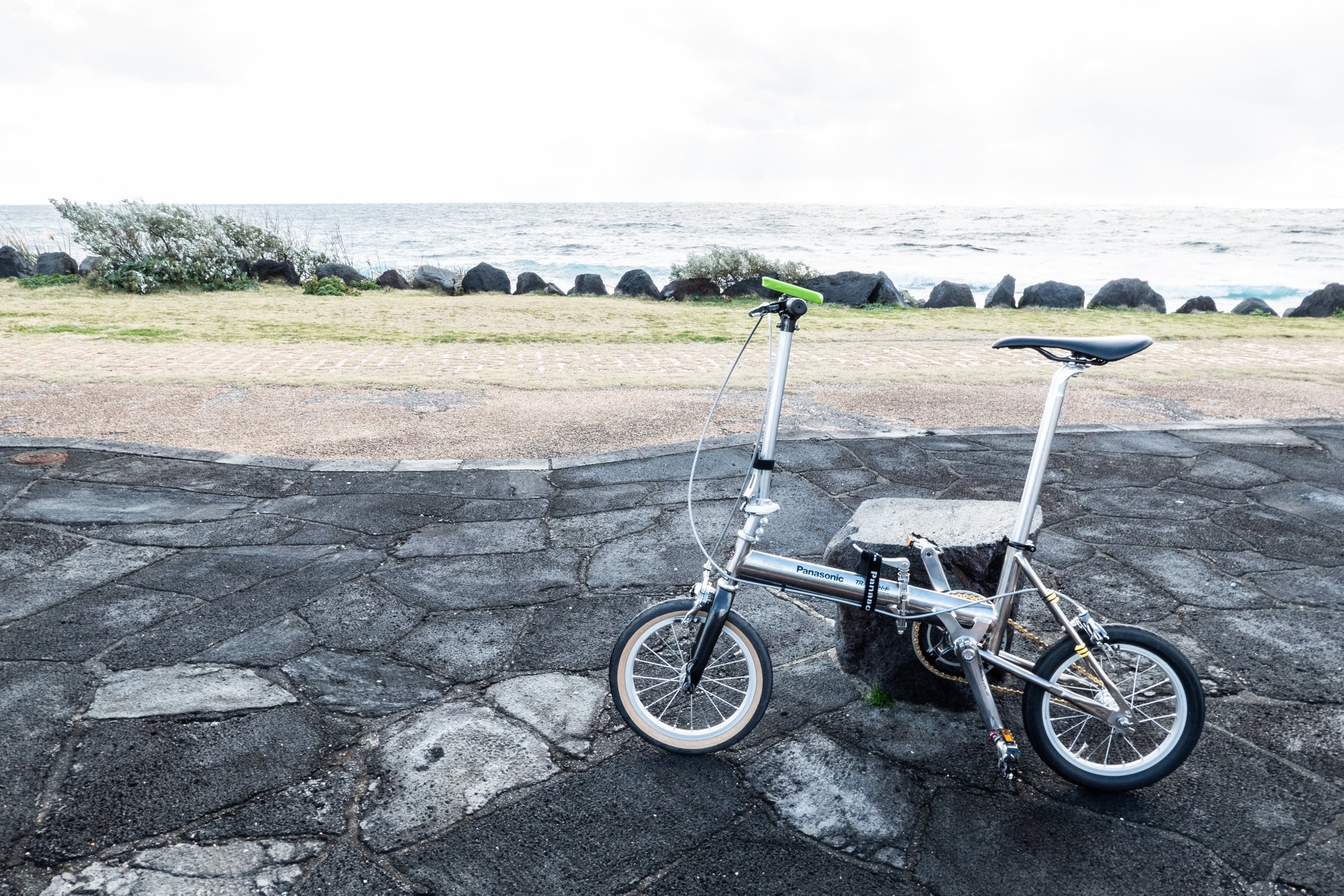 ヘリに乗るときの荷物のサイズ制限をクリアするため、いたしかたなくミニベロ(パナソニック トレンクル)を購入して出かけた。トレンクルの多段変速改造のための部品調達が間に合わず、シングルスピードのままの旅となった。