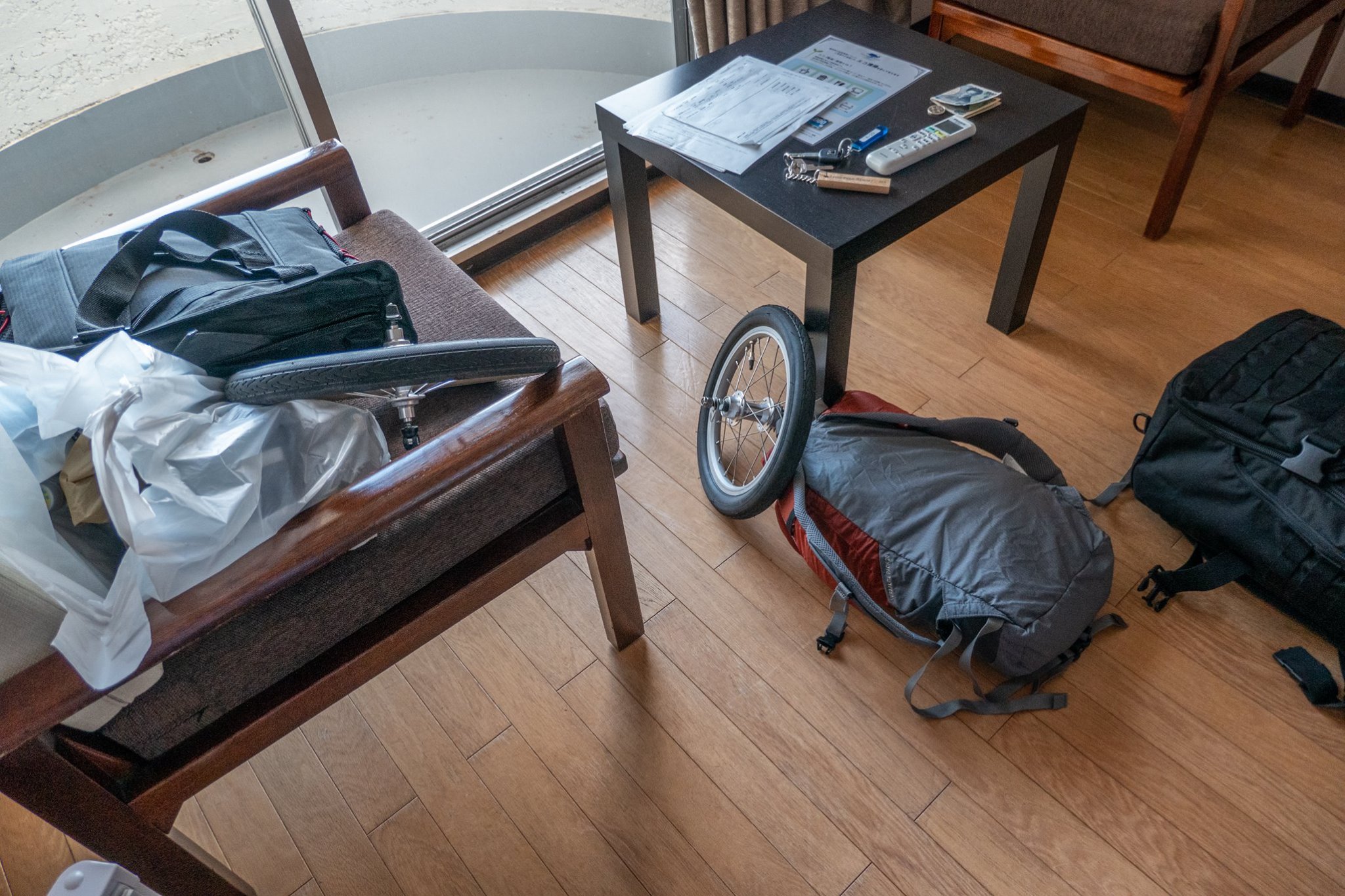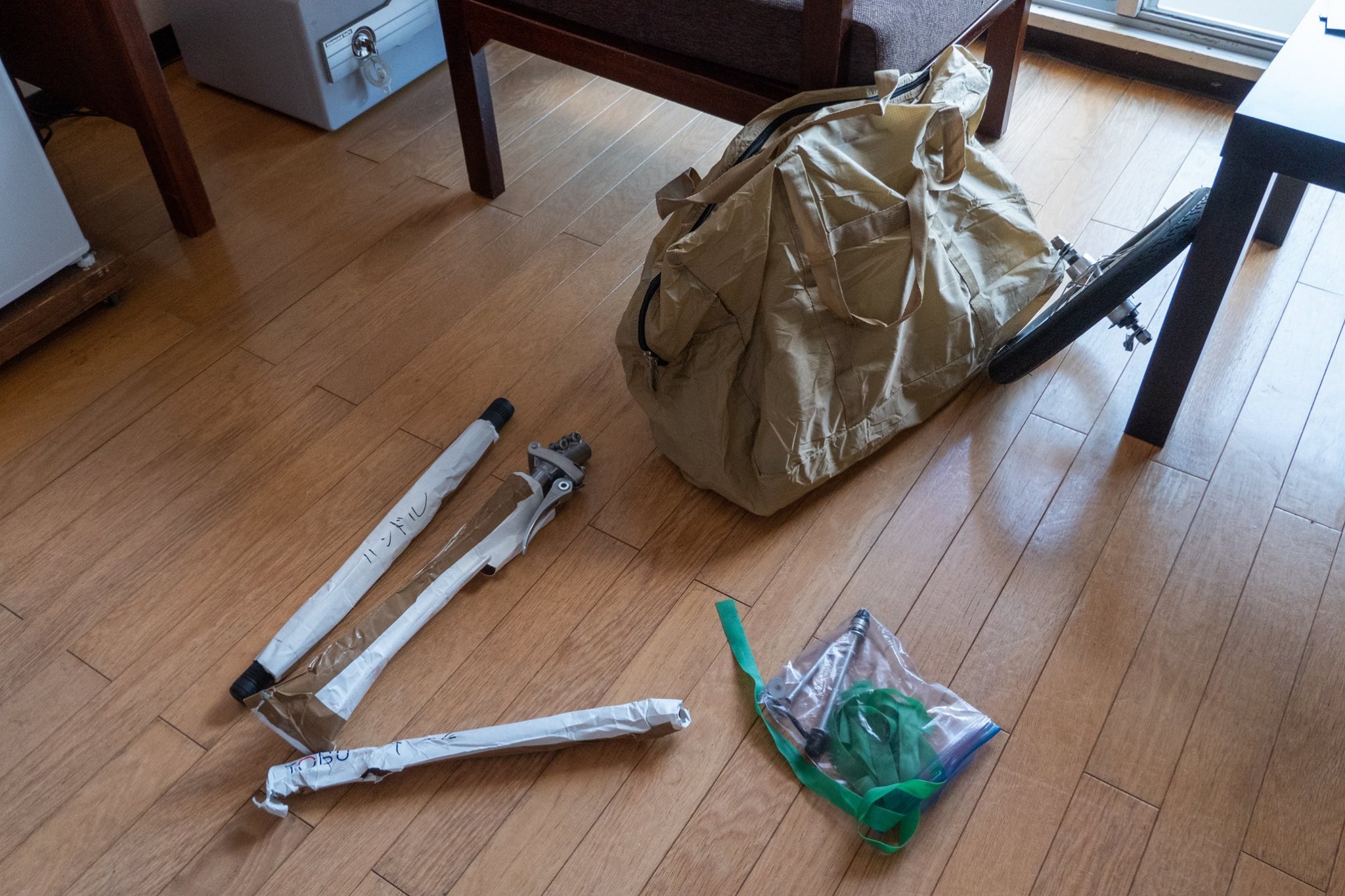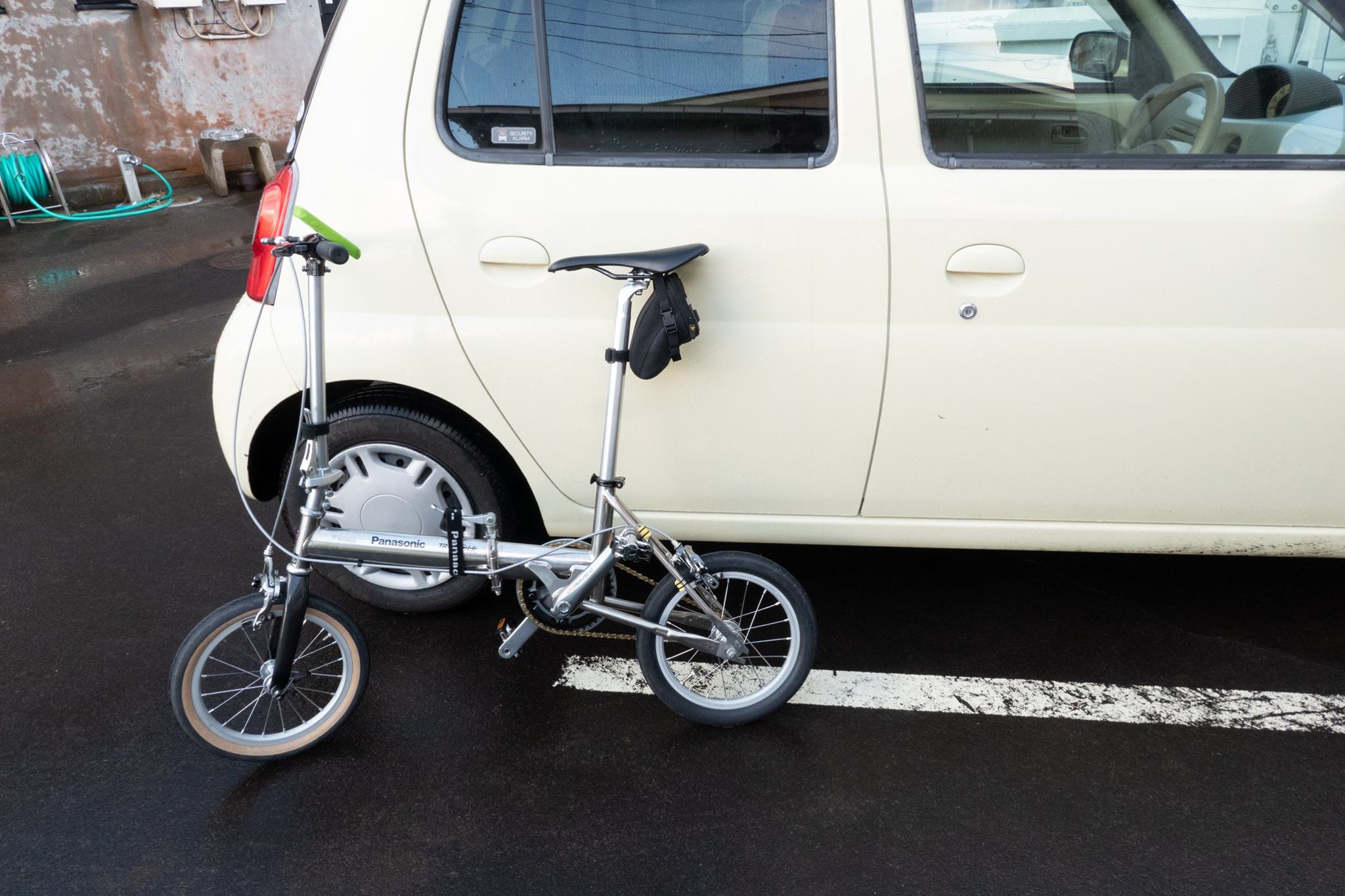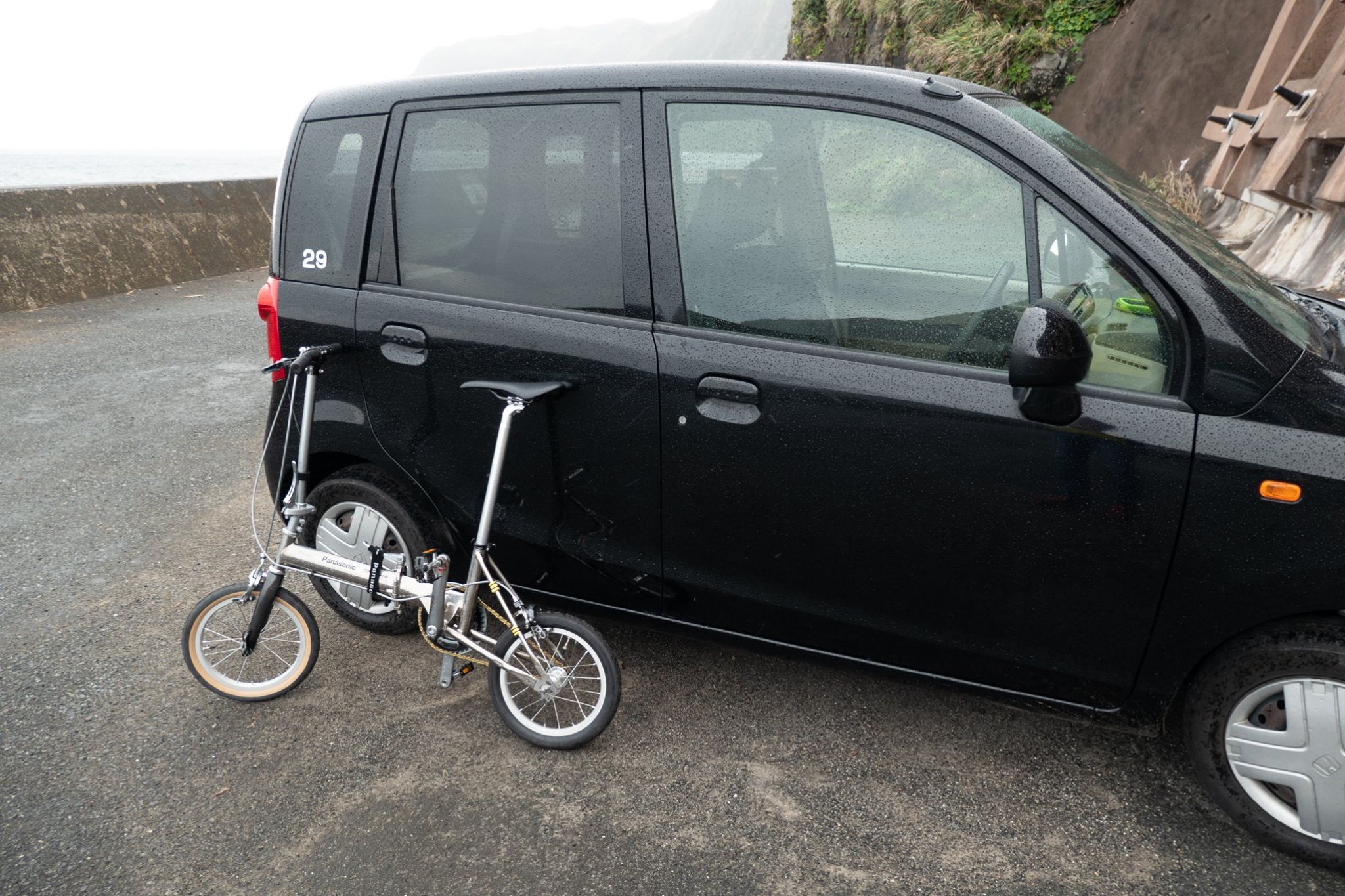 ヘリに乗るときの荷物のサイズ制限をクリアするため、いたしかたなくミニベロ(パナソニック トレンクル)を購入して出かけた。トレンクルの多段変速改造のための部品調達が間に合わず、シングルスピードのままの旅となった。