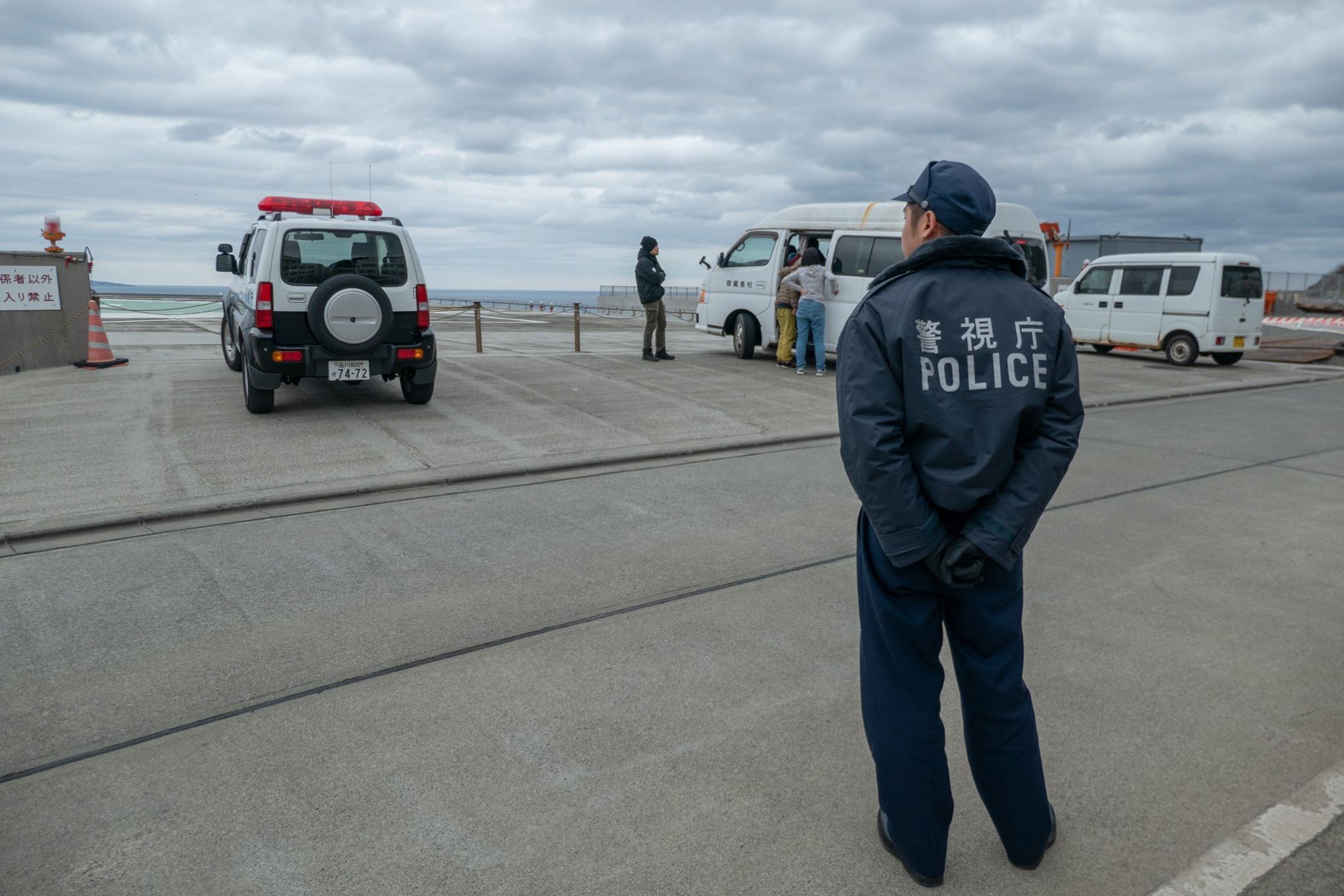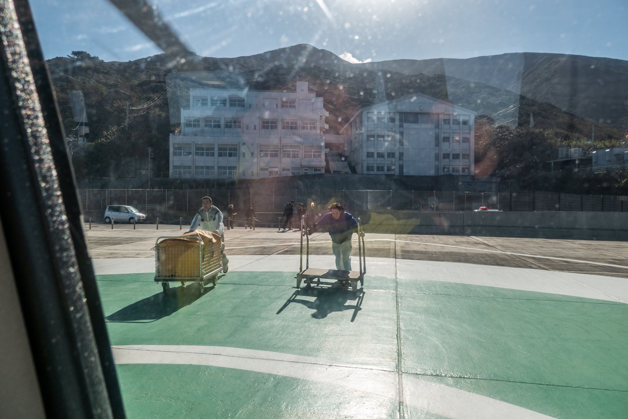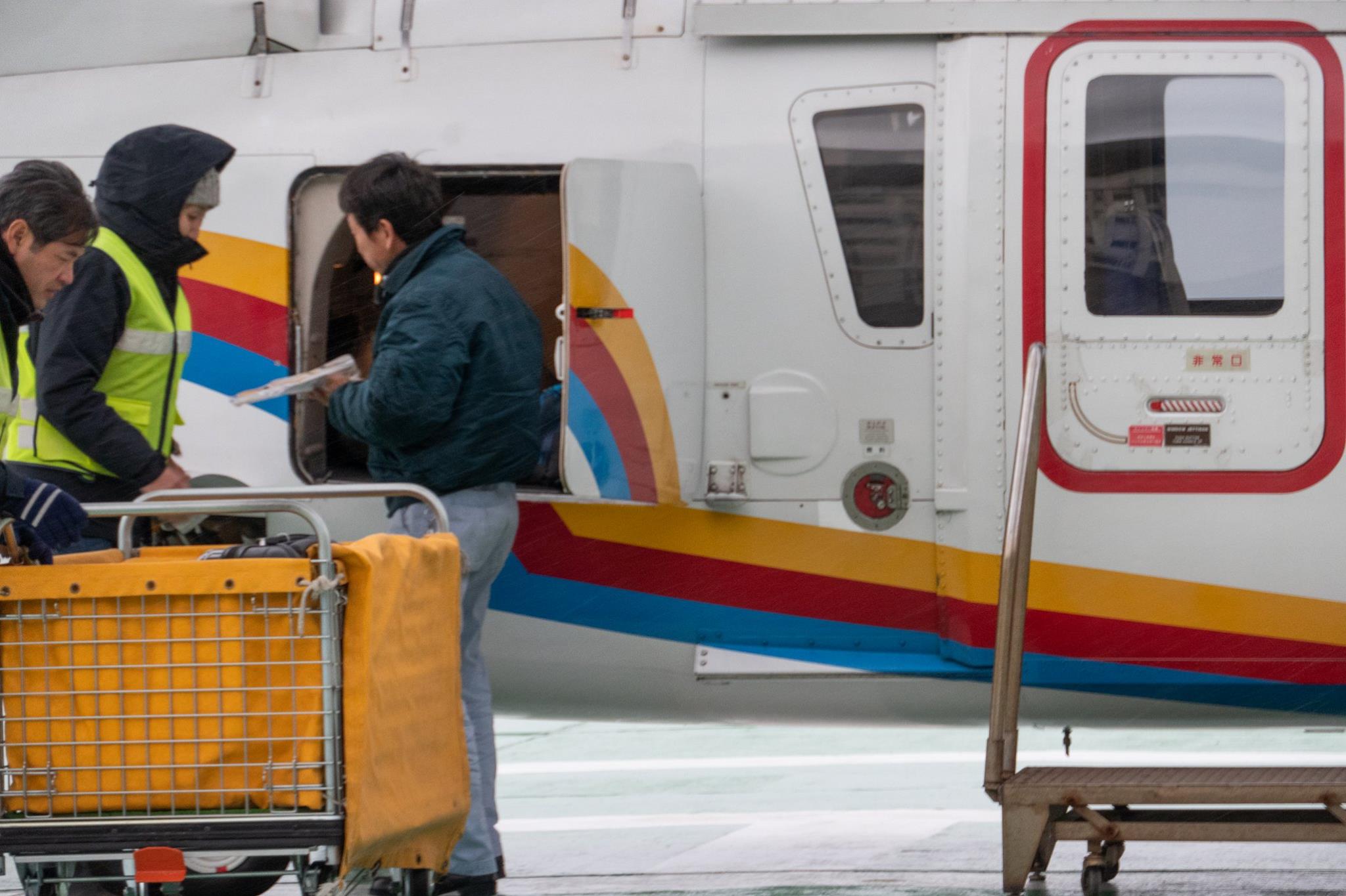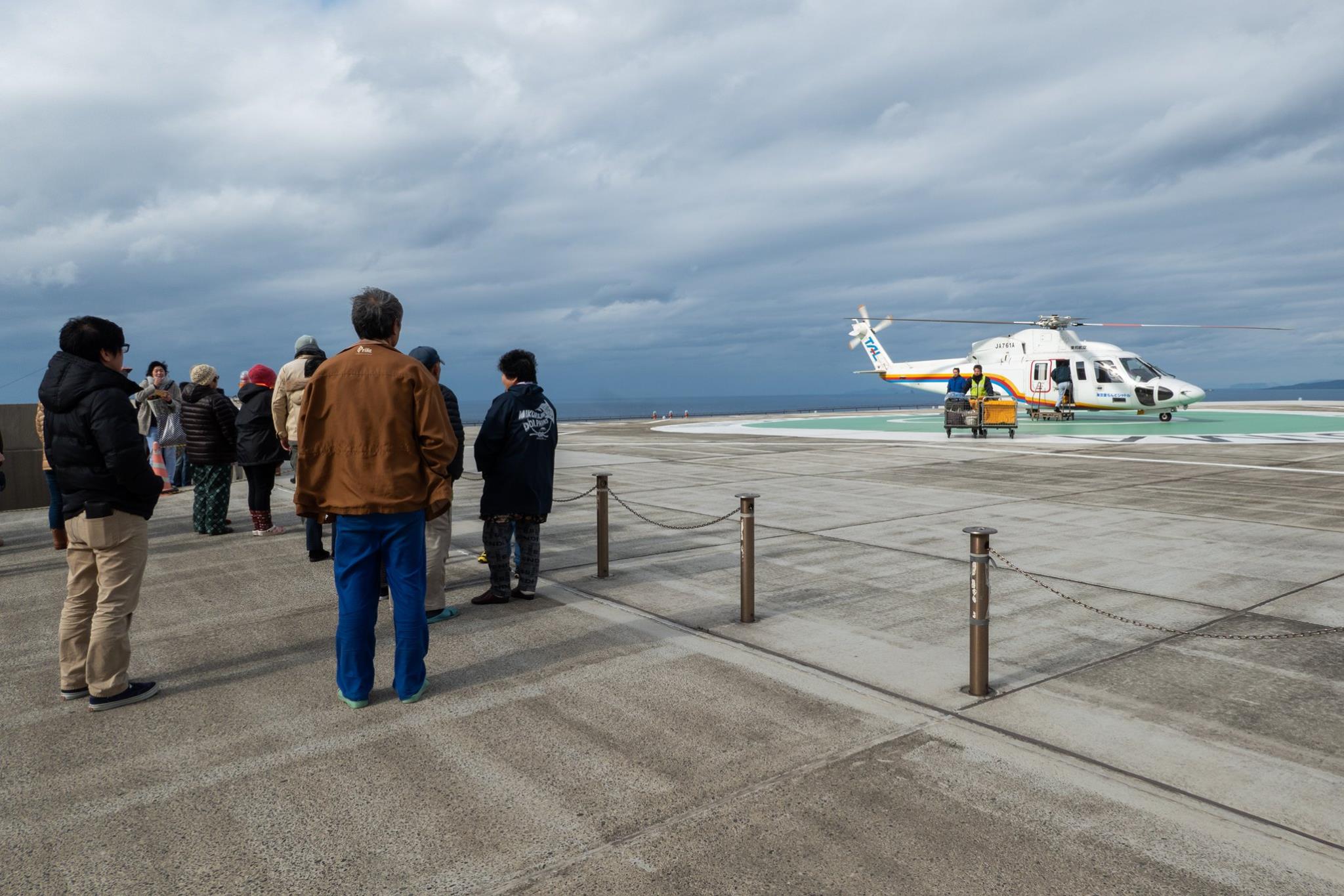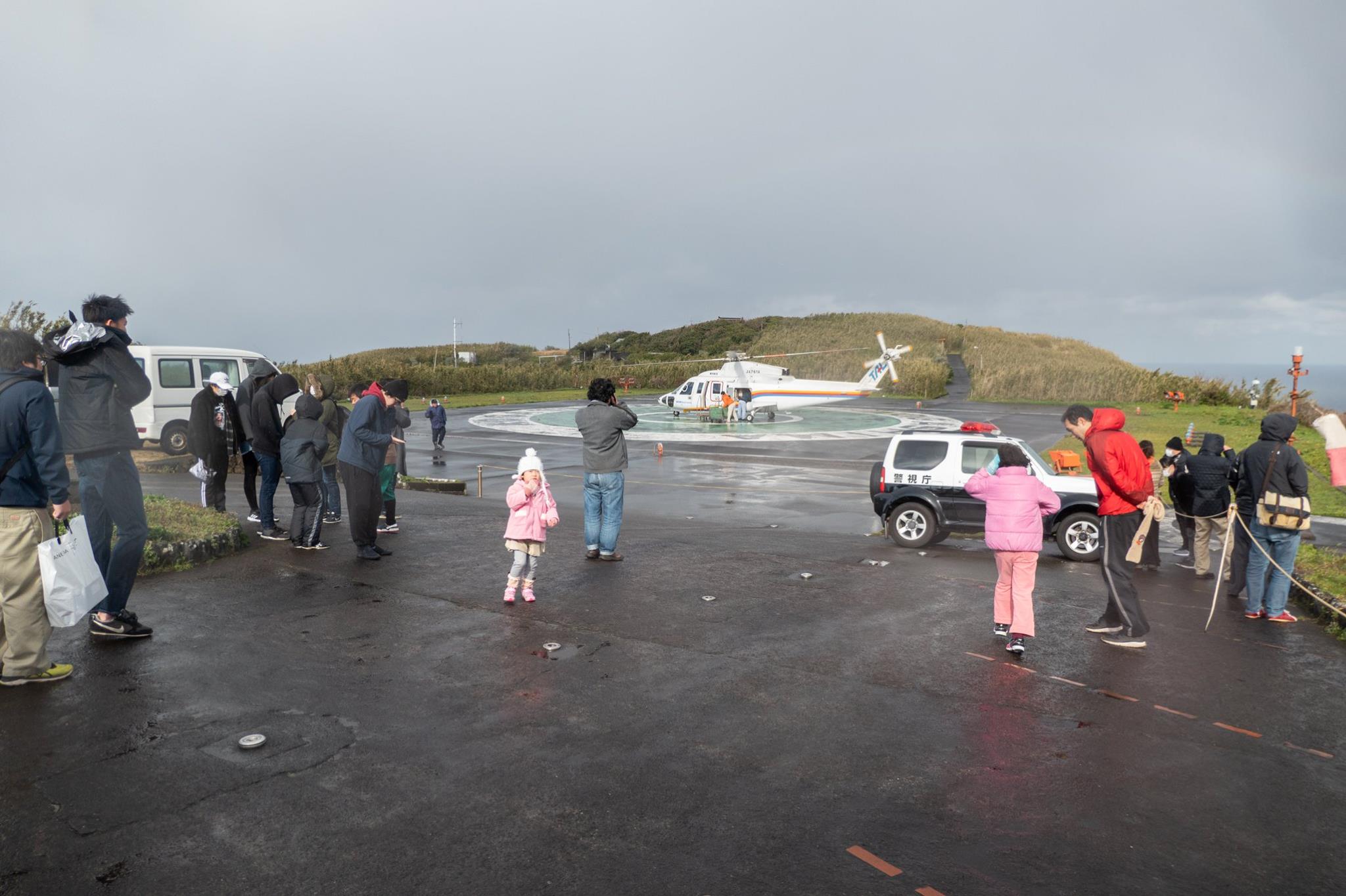 待合室に座ってしばらくした、午後2時前。ヘリが来るまではまだ1時間半もあるはずなのに、なんだかあたりが賑やかになってきた。