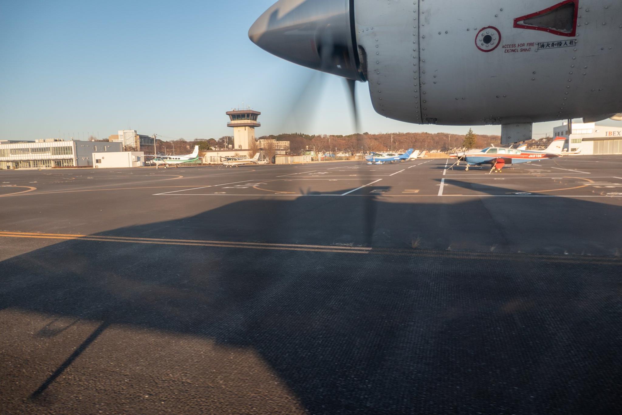 今度は新中央航空のセスナで調布空港まで飛ぶ。調布のホテルに一泊しながら、自転車の修理をして、翌朝再び調布空港から大島へ戻る。