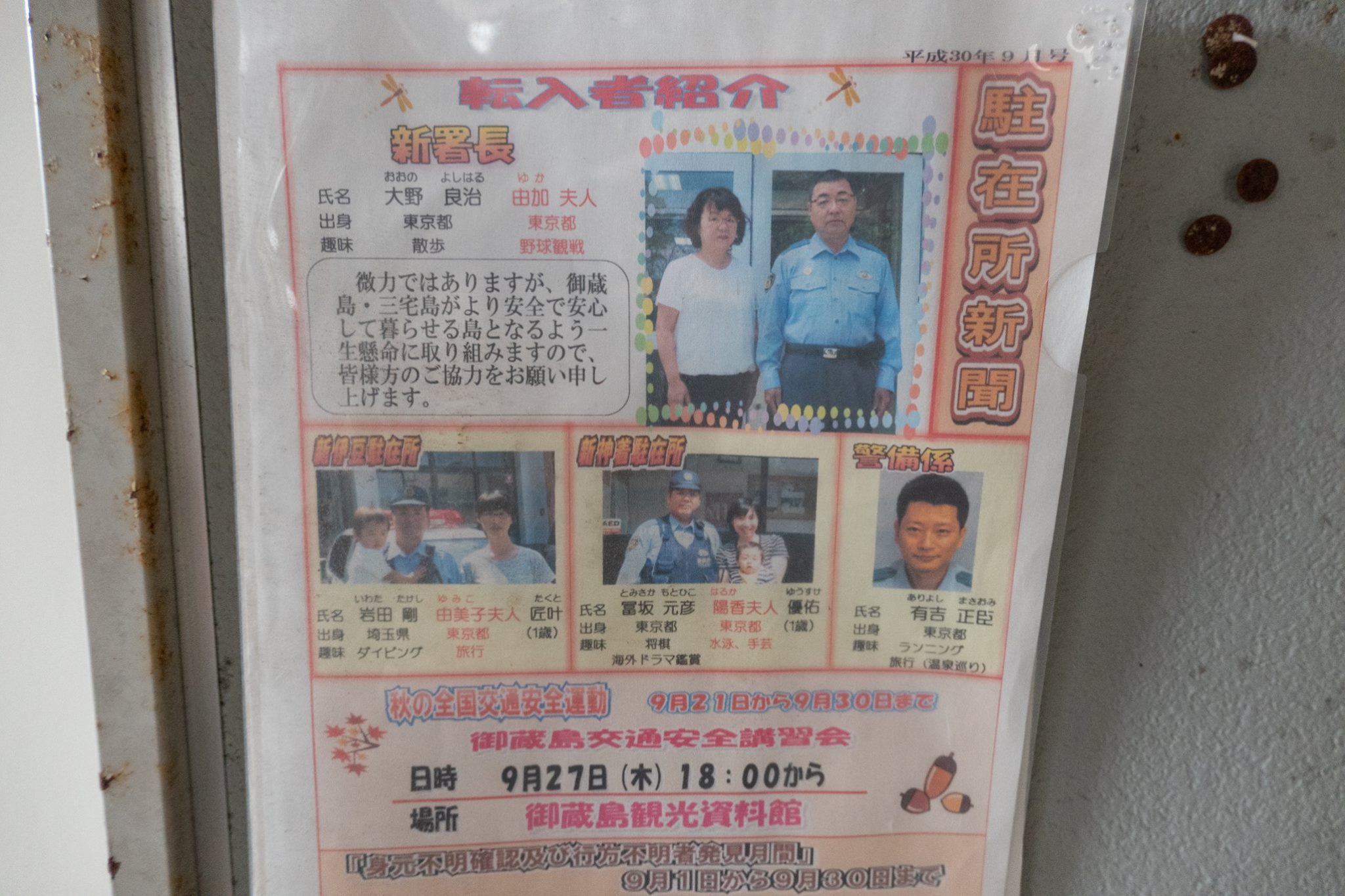 待合室へ戻り、ヘリ受付の役場の女性としばし話し込む。