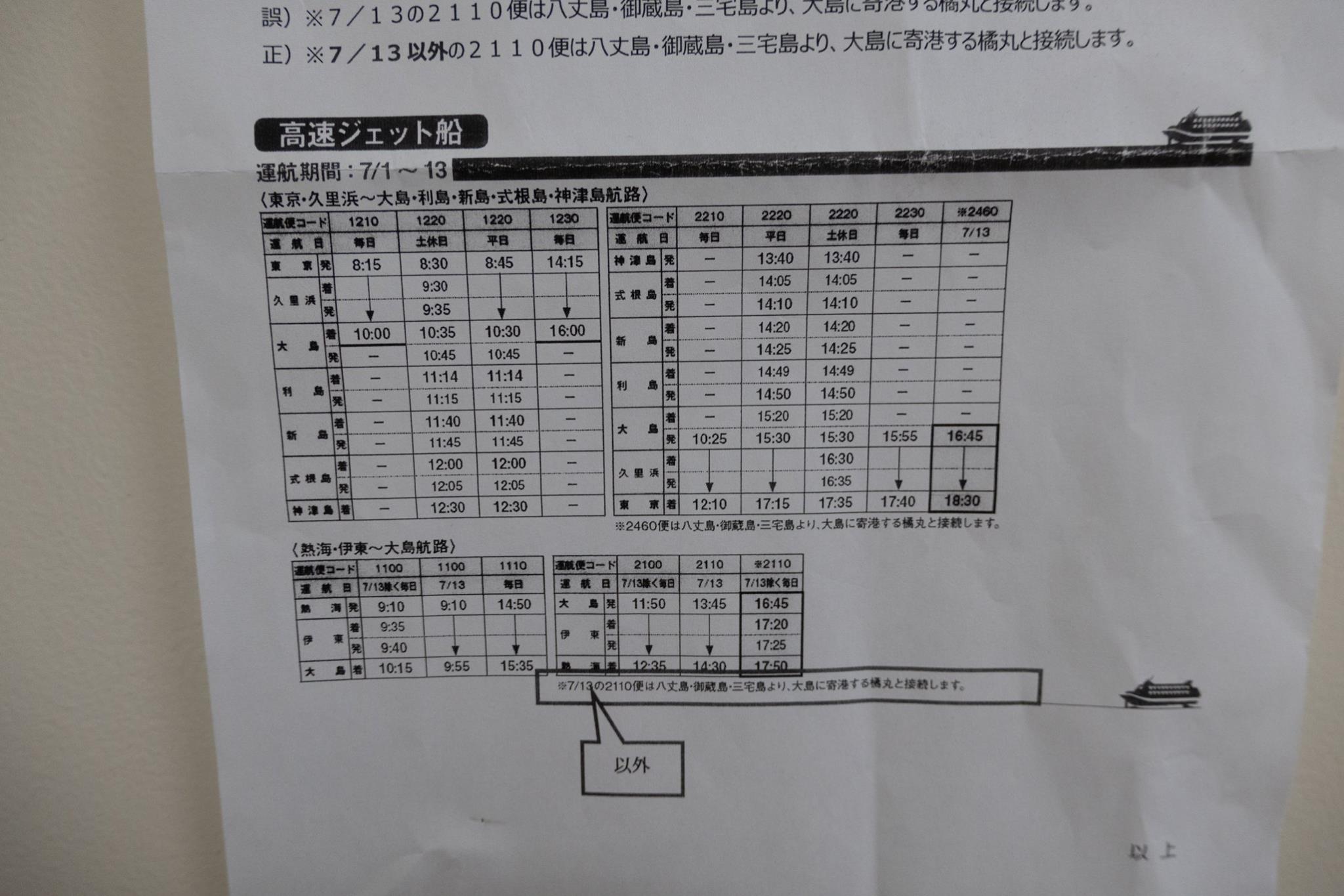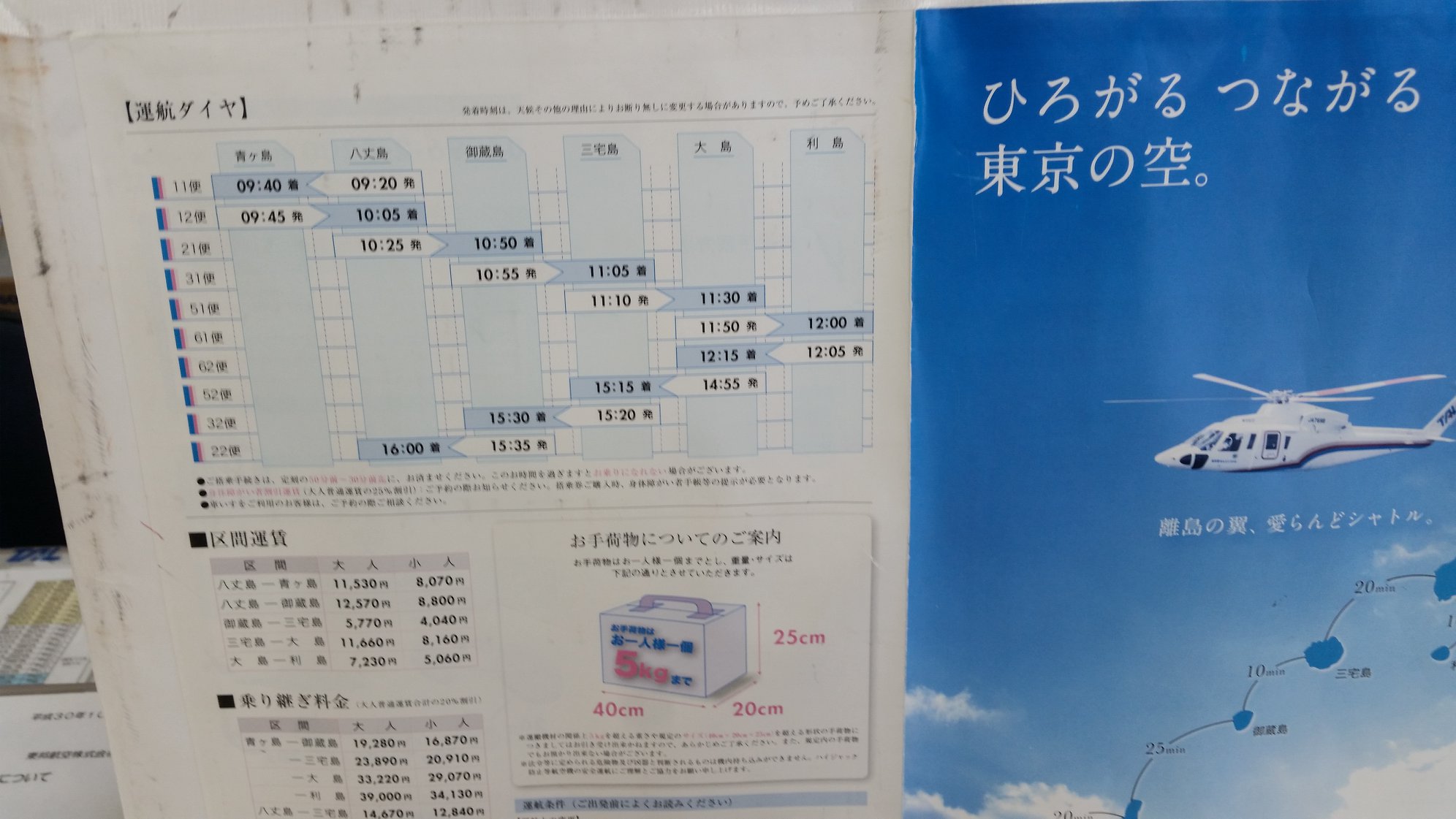 これまた、ヘリに乗っている最中に愛らんどシャトルから電話。1/2の大島―利島と三宅―大島―利島の経路が重複しているという。この電話で、せっかくキャンセル待ちでとれた三宅―大島―利島 区間はキャンセル。