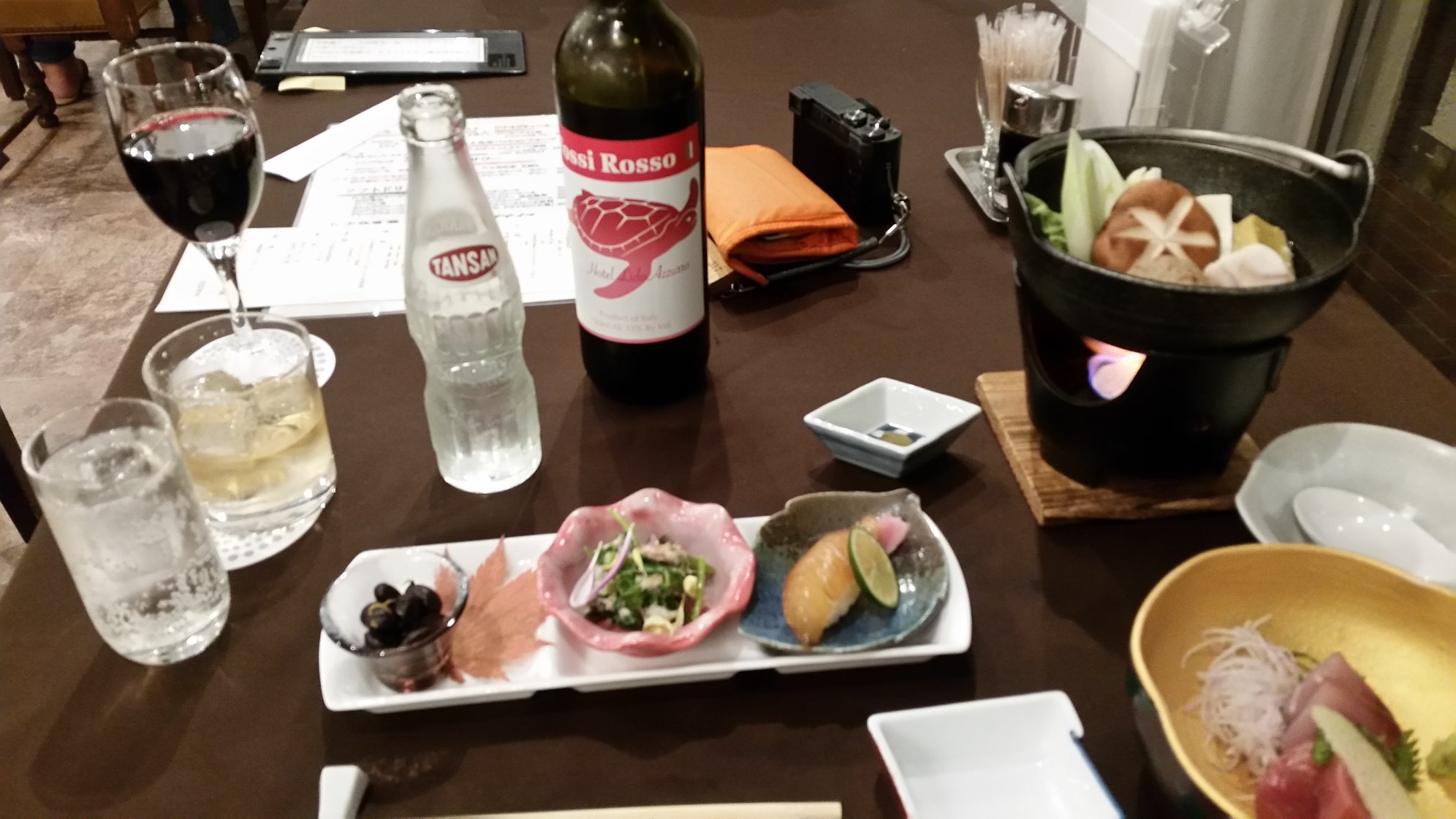 18時から夕食。ビールしかないので、十一屋で買ったワインを持ち込ませてもらった。