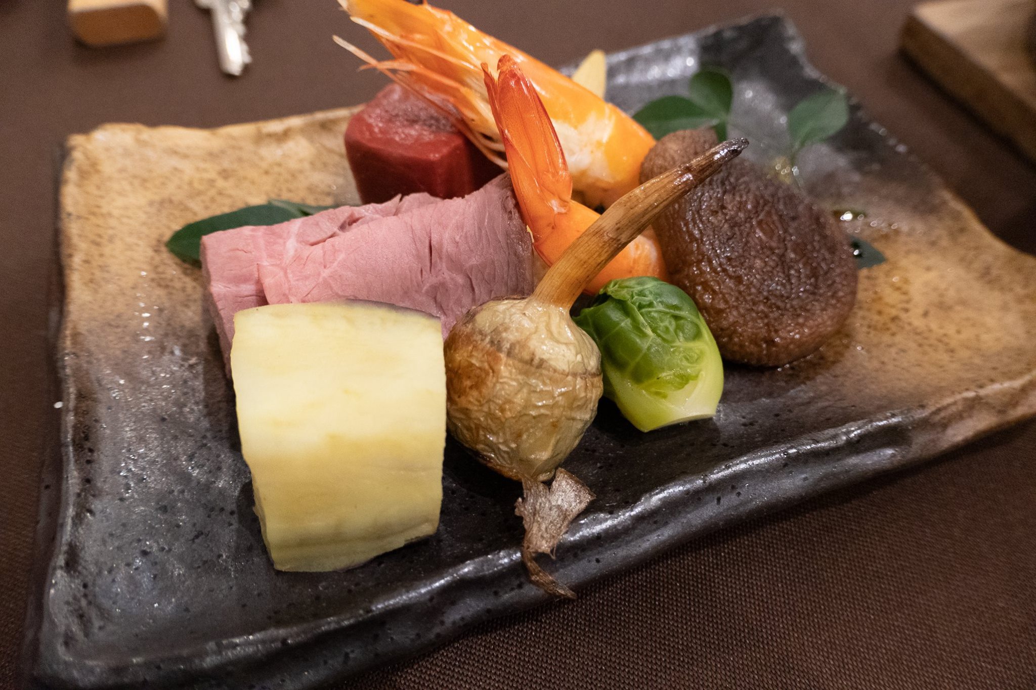 ホテルに戻って、バーストの修理を終え、軽くシャワーを浴びて、夕食。一泊あけると、料理は初日と同じメニューに戻っていた。