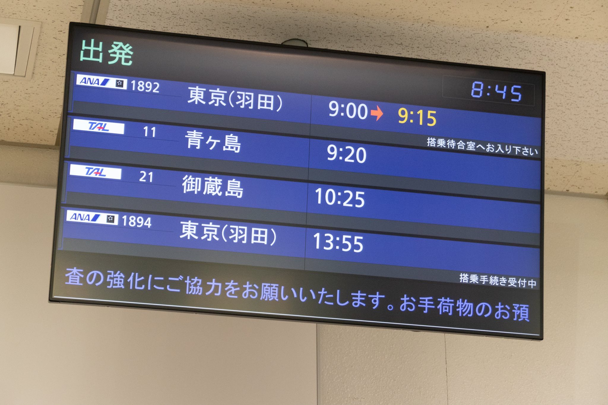 08:10にはアイランドシャトルのカウンターに到着し、08:15過ぎには受付の女性がやってきた。08:30前には受付が始まり、手荷物と預け入れ荷物双方を秤にのせ重量を計り、追加料金を払う。ちなみに一片120cmまでの荷物は複数個あっても受け入れ可能と後で知ることになる。体重は自己申告。