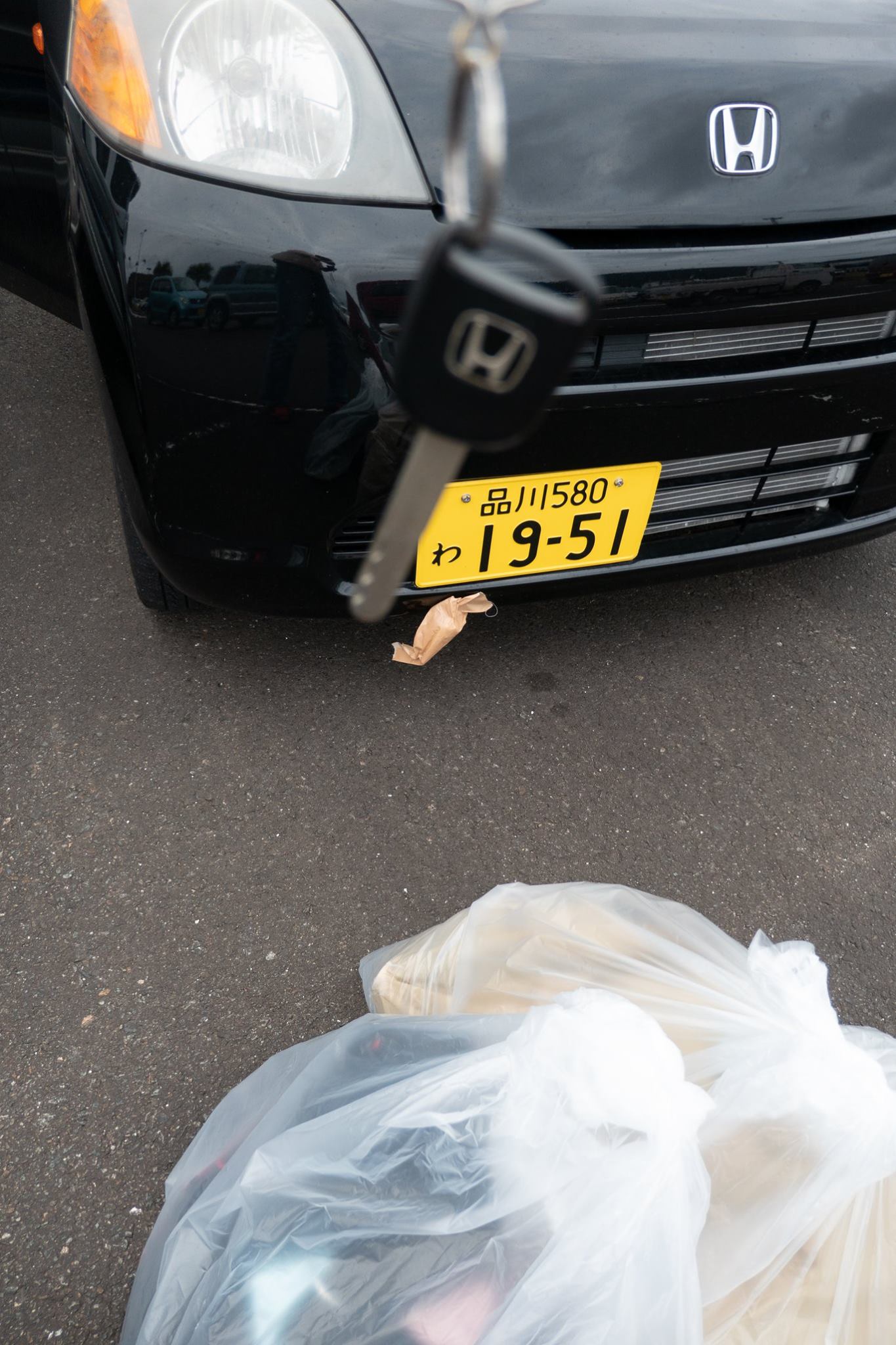 08:00には八丈空港に着いてしまった。空港の駐車場にレンタカーを止め、万一、翌日戻れなかった時のために、車のキーをナンバープレート裏のシャーシにガムテープで止めておいた。