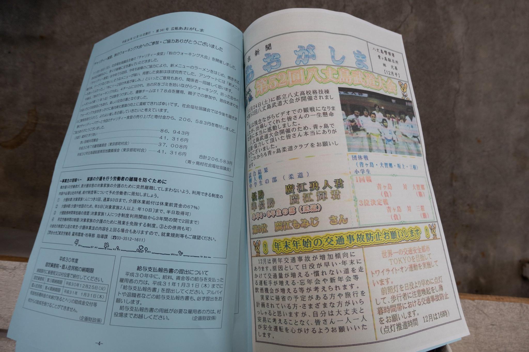 翌朝、朝食をいただいている時に、隣室でテレビが賑やかだった職人さんと会話。電力の保守の仕事らしく、伊豆諸島あちこち回っているらしい。今日は自分と同じヘリで八丈にでて、そのままANAで東京へ帰るとのこと。