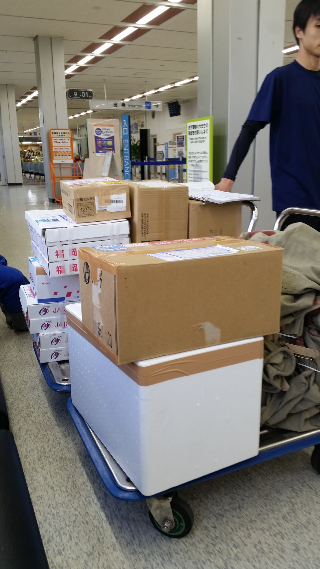 余分な手荷物と土産の酒類はダンボールの箱に入れて、自宅宛着払いのヤマト伝票を貼ってトランクに入れておいた。