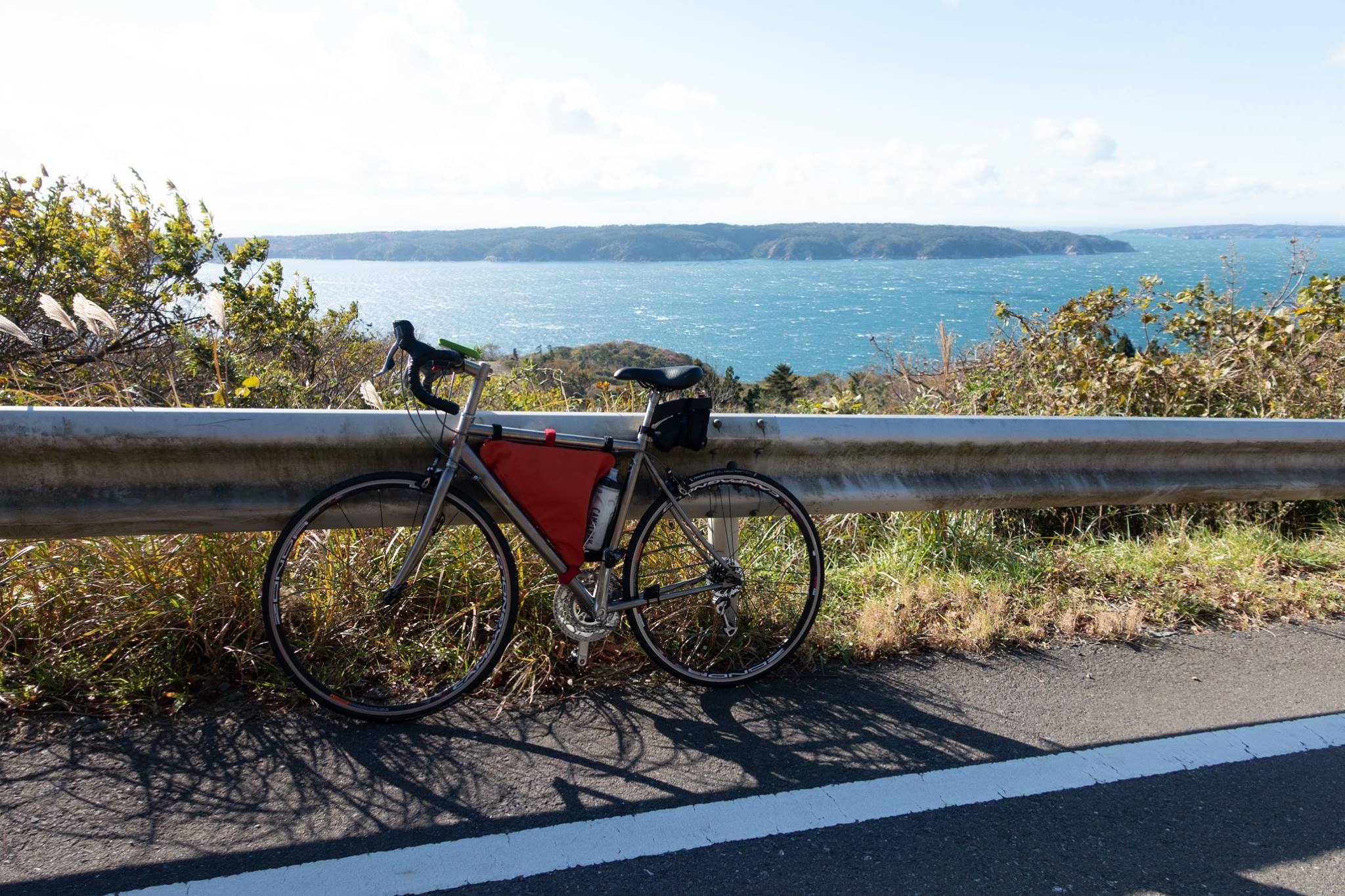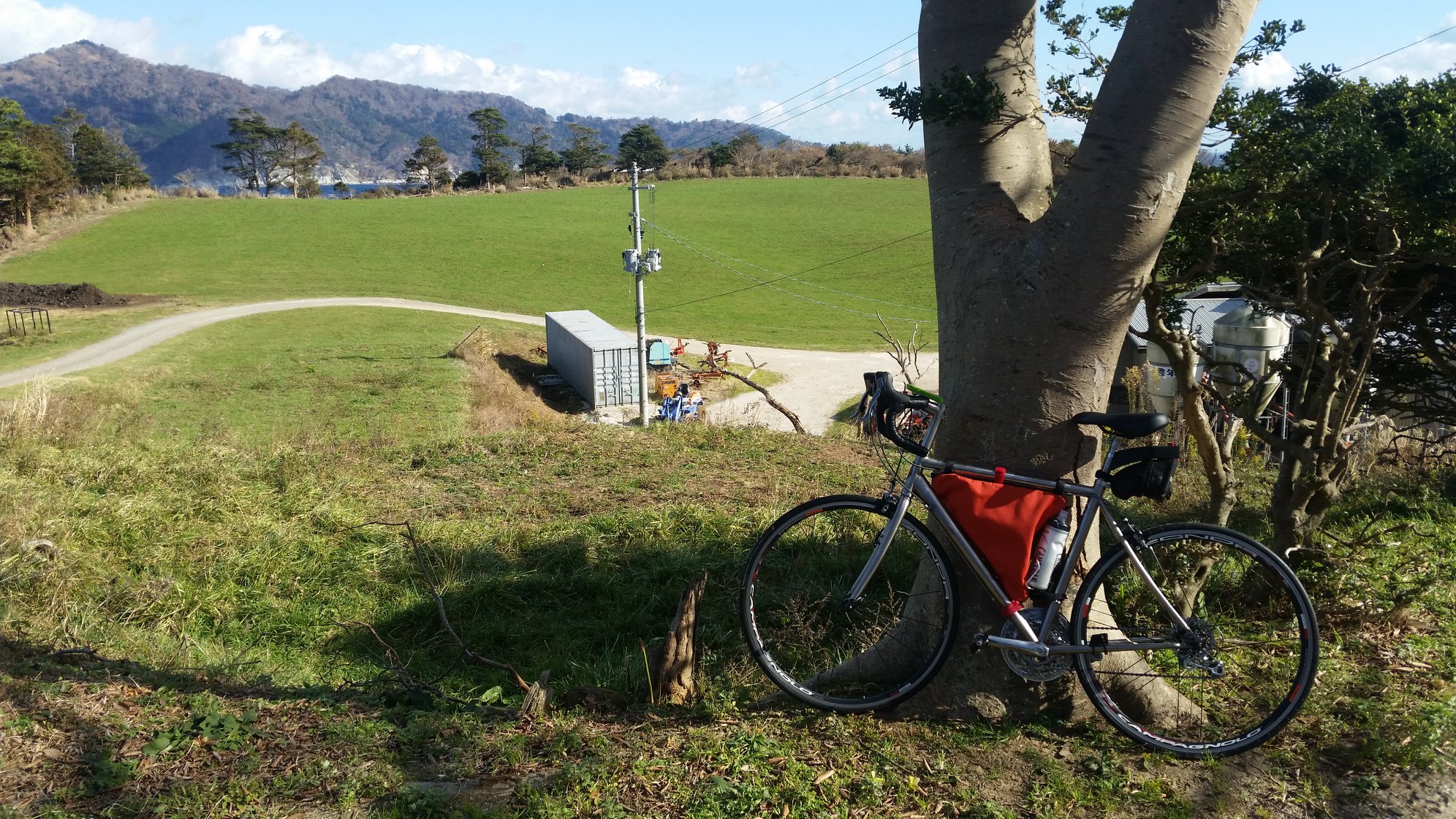 自転車を組み上げ、牡鹿を走りだしたのが12:00。時間がないので、下り区間のみをチャリで走り、上りは車に積んでもらって上り、また自転車で逆向きに下り、牡鹿半島先端から県道220全線(女川側)をR398まで走破。