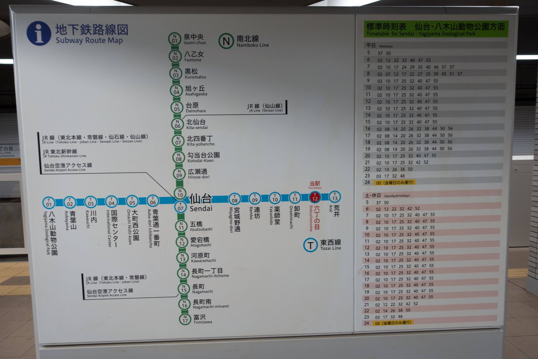 地下鉄東西線仙台駅から六丁の目駅まで乗車。六丁の目駅から歩いて、ローソンに立ち寄ってからホテルに戻る。