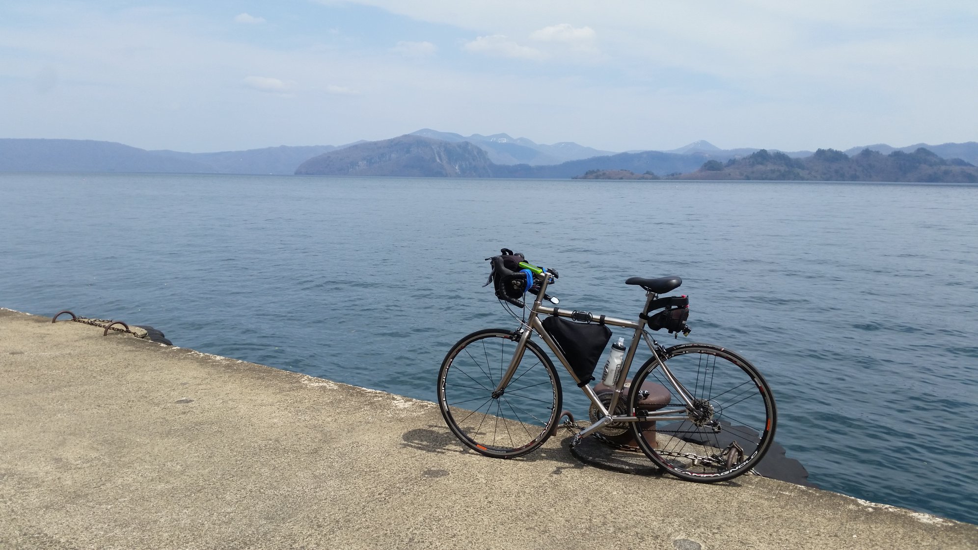 ホテル駐車場に車を止めて、自転車で十和田湖を時計まわりに一周。