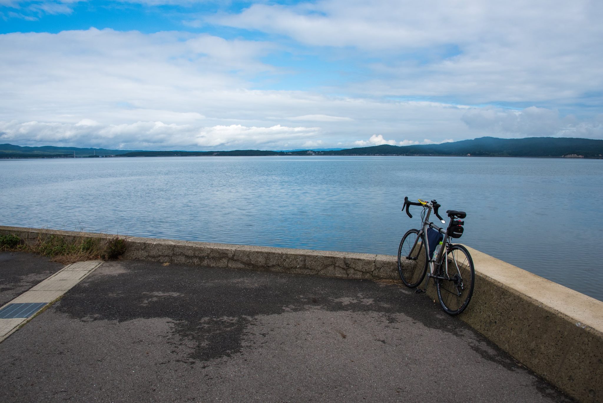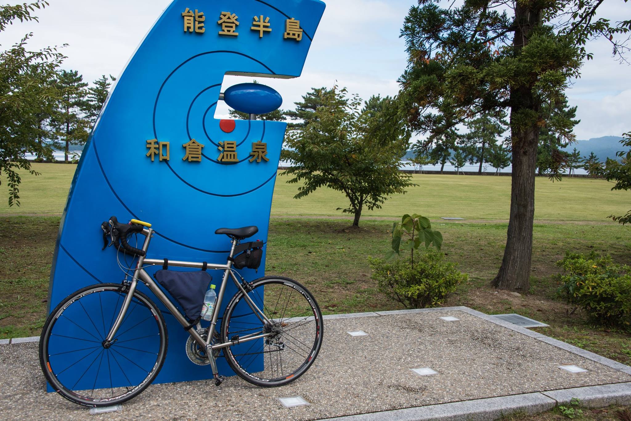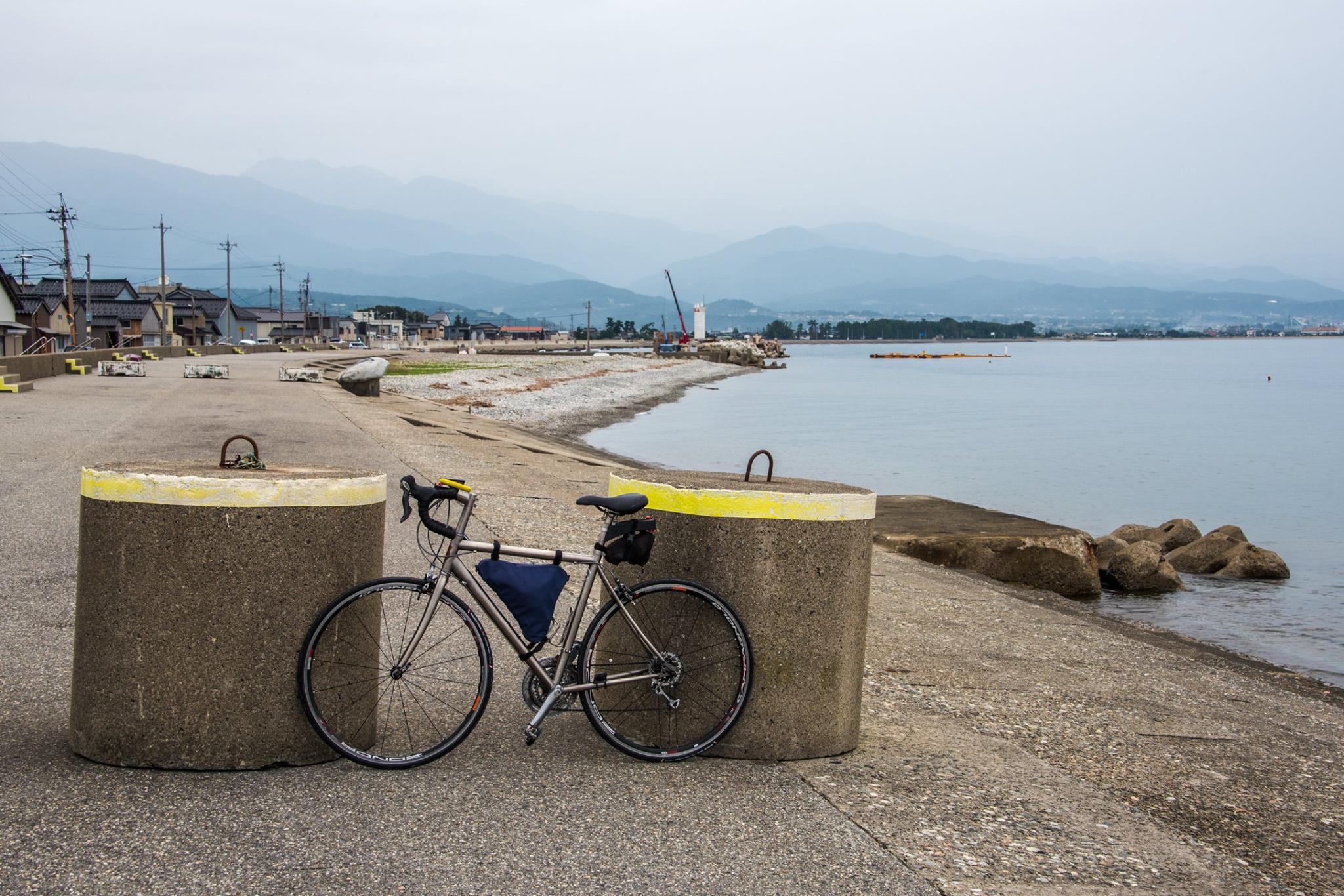 朝から雨。ゆっくり起きて、めずらしく朝食もいただいて、ゴロゴロして、雨があがってきた9時すぎにホテルを出発。能登島大橋ロードパークまで車で移動して、自転車でスタート。和倉温泉を経由して、いままで走ってなかった七尾西湾の西岸を走る。