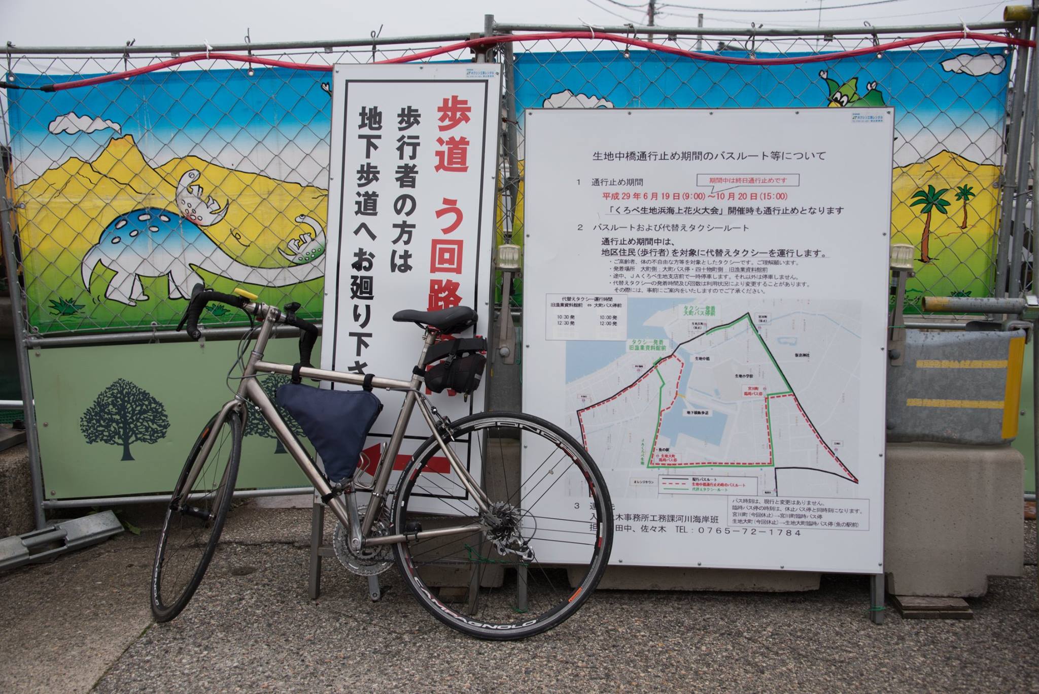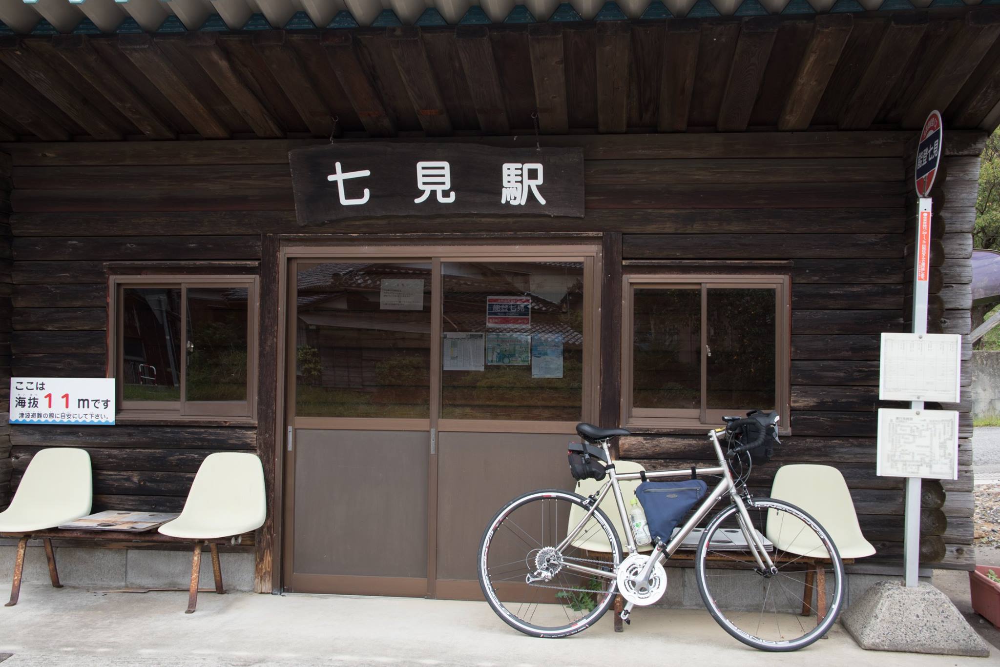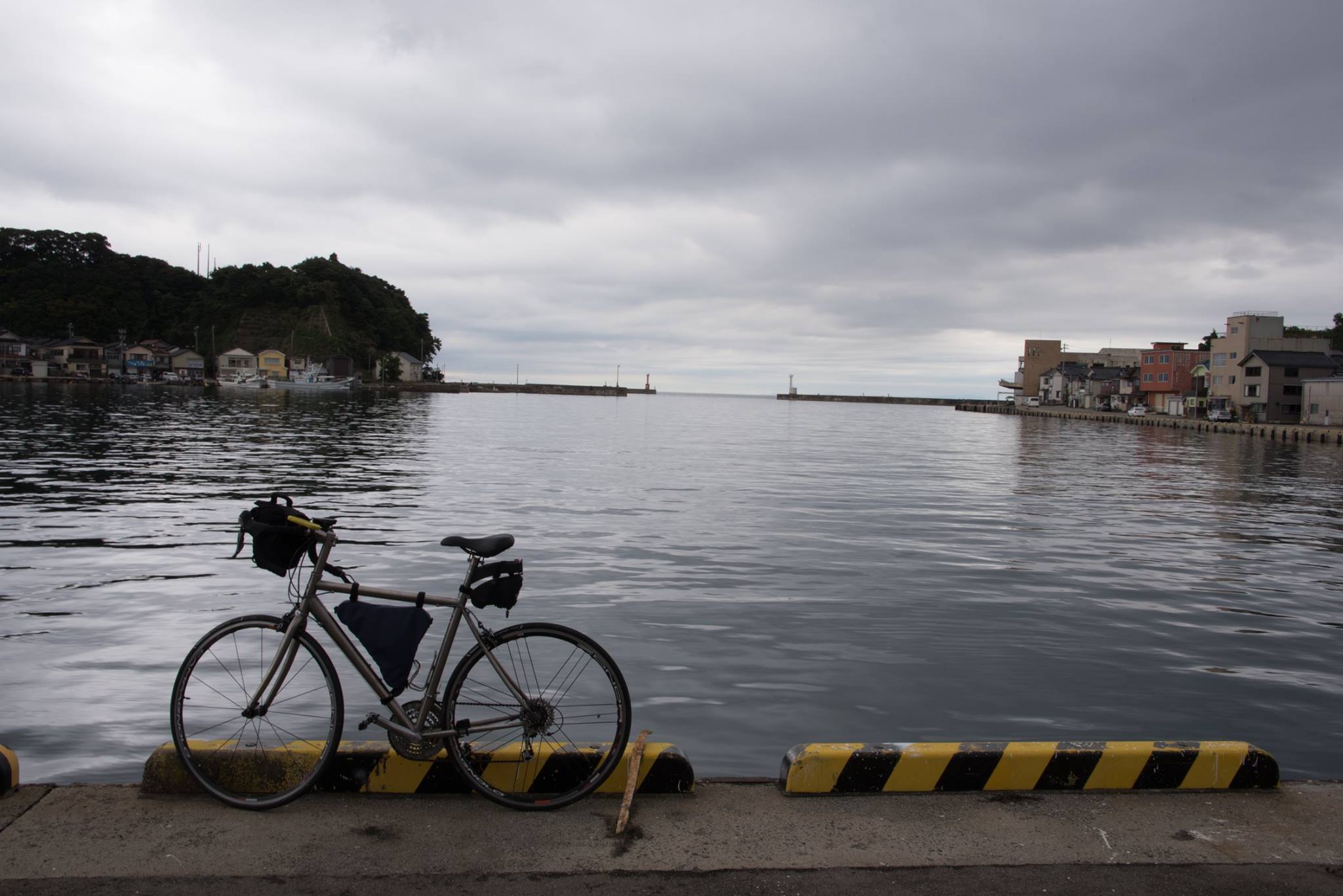 朝から雨。ゆっくり起きて、めずらしく朝食もいただいて、ゴロゴロして、雨があがってきた9時すぎにホテルを出発。能登島大橋ロードパークまで車で移動して、自転車でスタート。和倉温泉を経由して、いままで走ってなかった七尾西湾の西岸を走る。