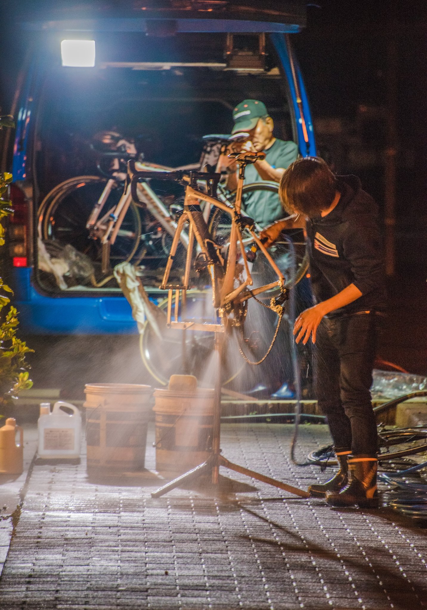 ルートインに着くと、シマノやら宇都宮なんとか、やらの自転車プロチームが駐車場で整備に勤しんでいた。なにやら翌日、輪島で自転車レースがあるらしい。