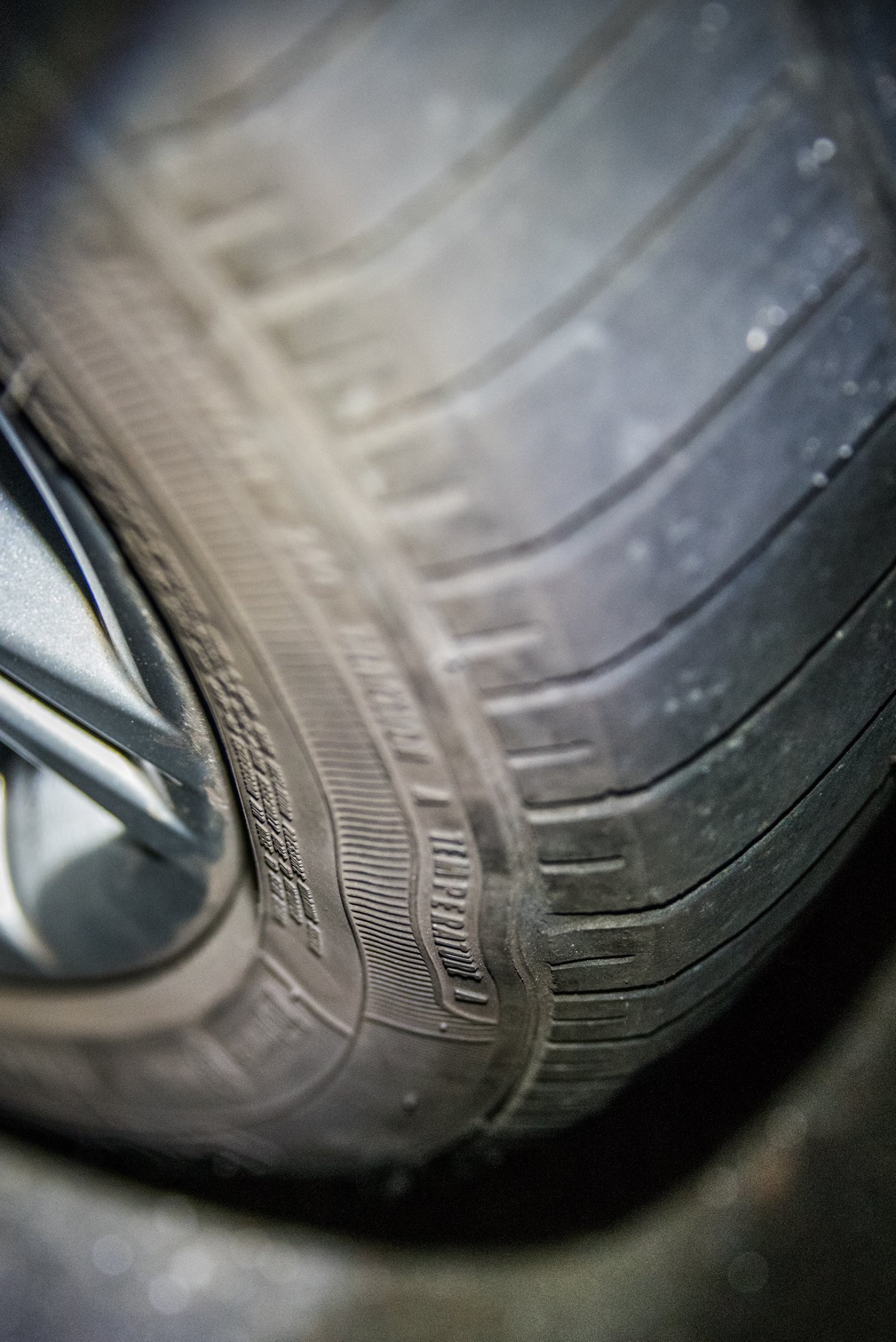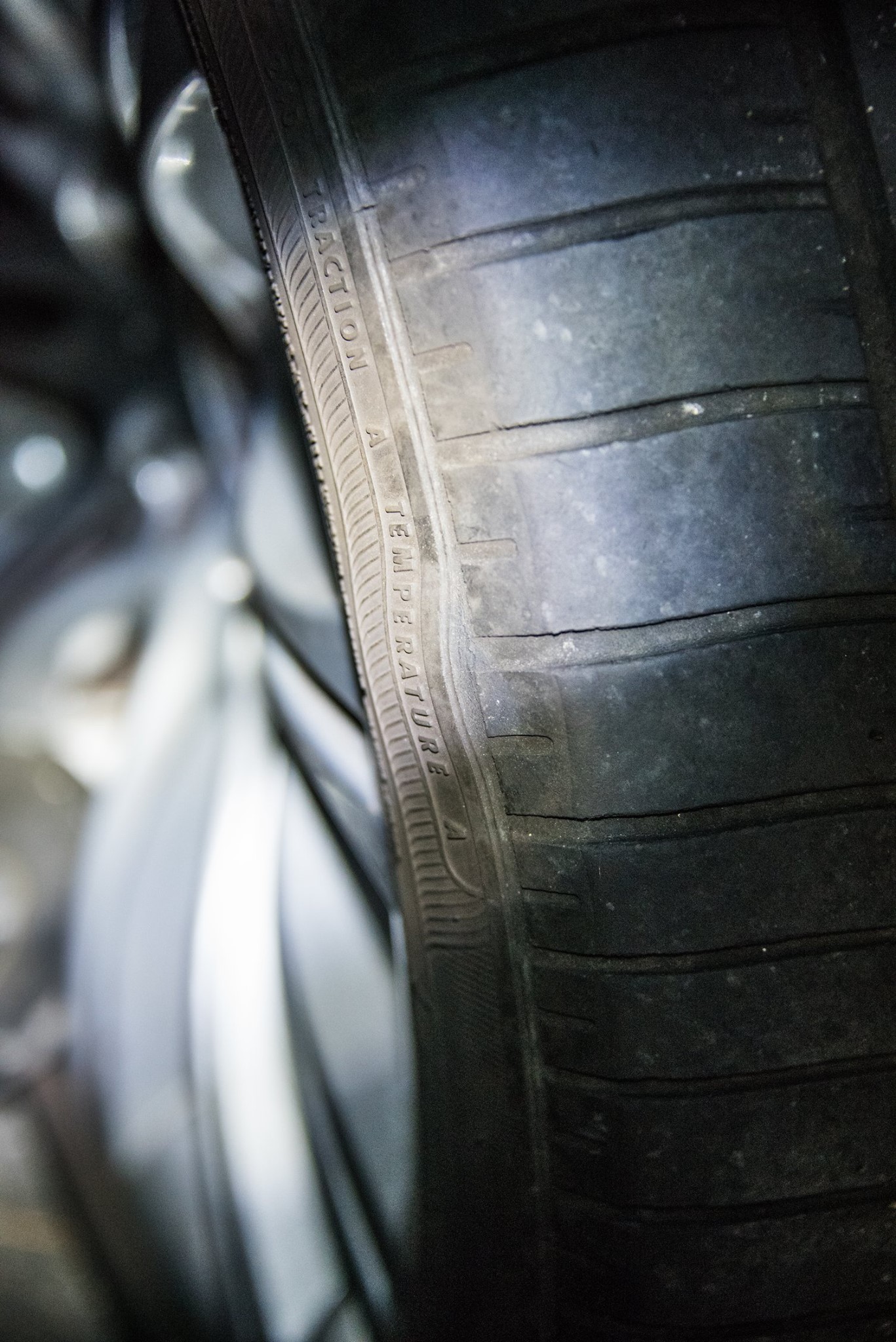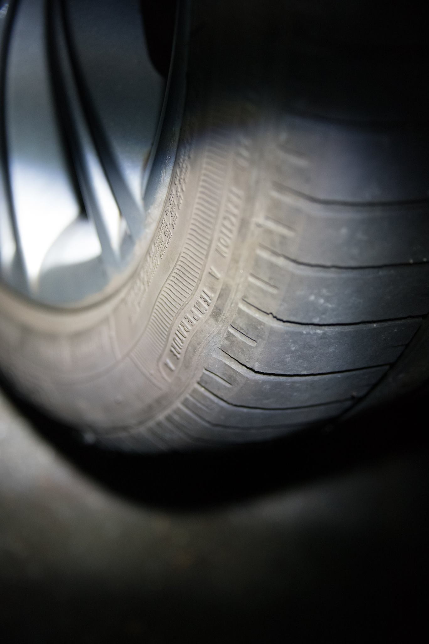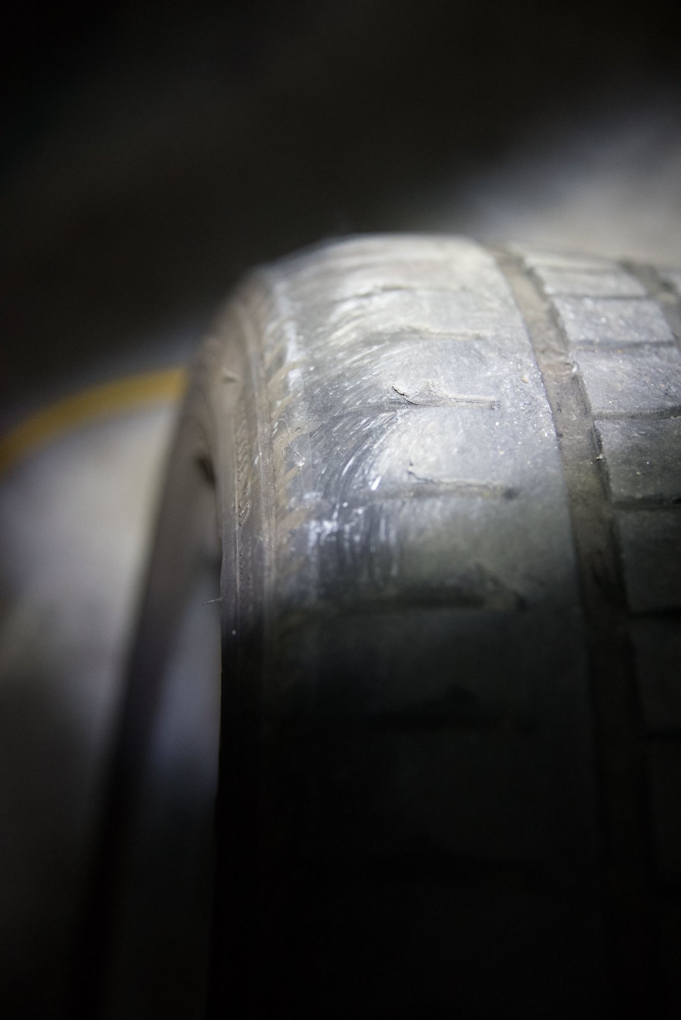 走り出して間も無く、右後輪に何かが絡まり、それがホイールハウジングを叩いて、カタカタ音がした。停車して確認すると、なんと右後輪内側のサイドウォールに接したトレッド面が幅1CMほどでグルリと剥離していた。