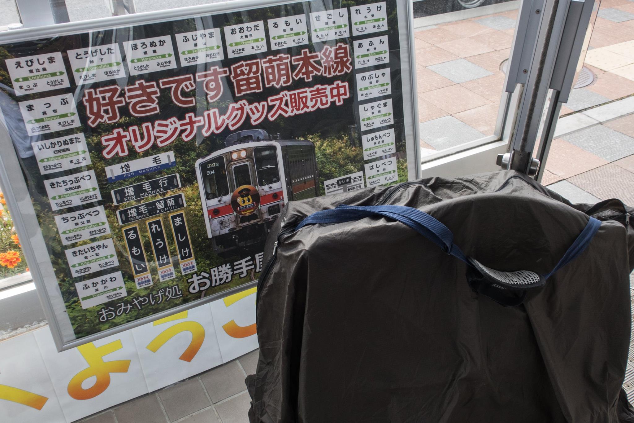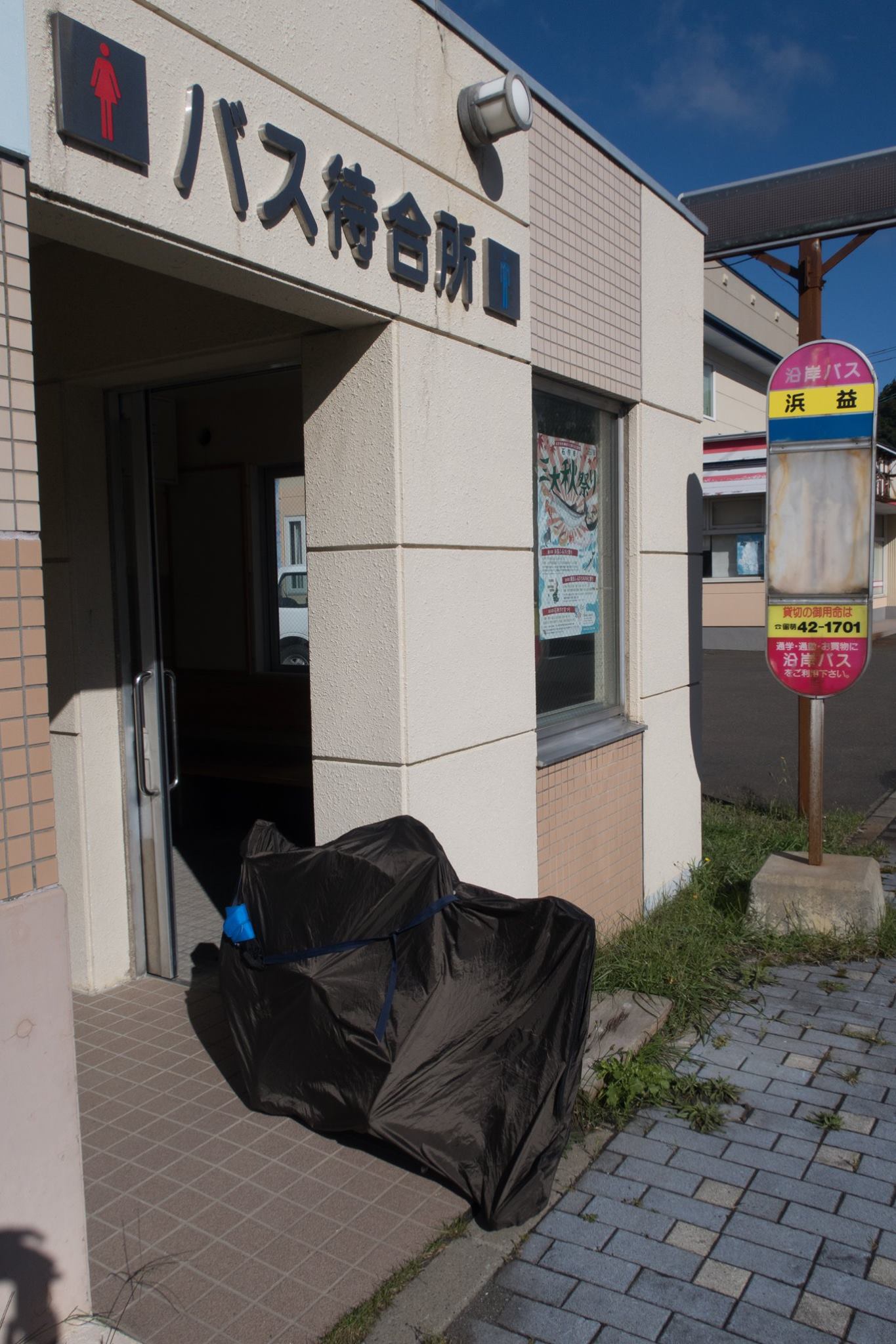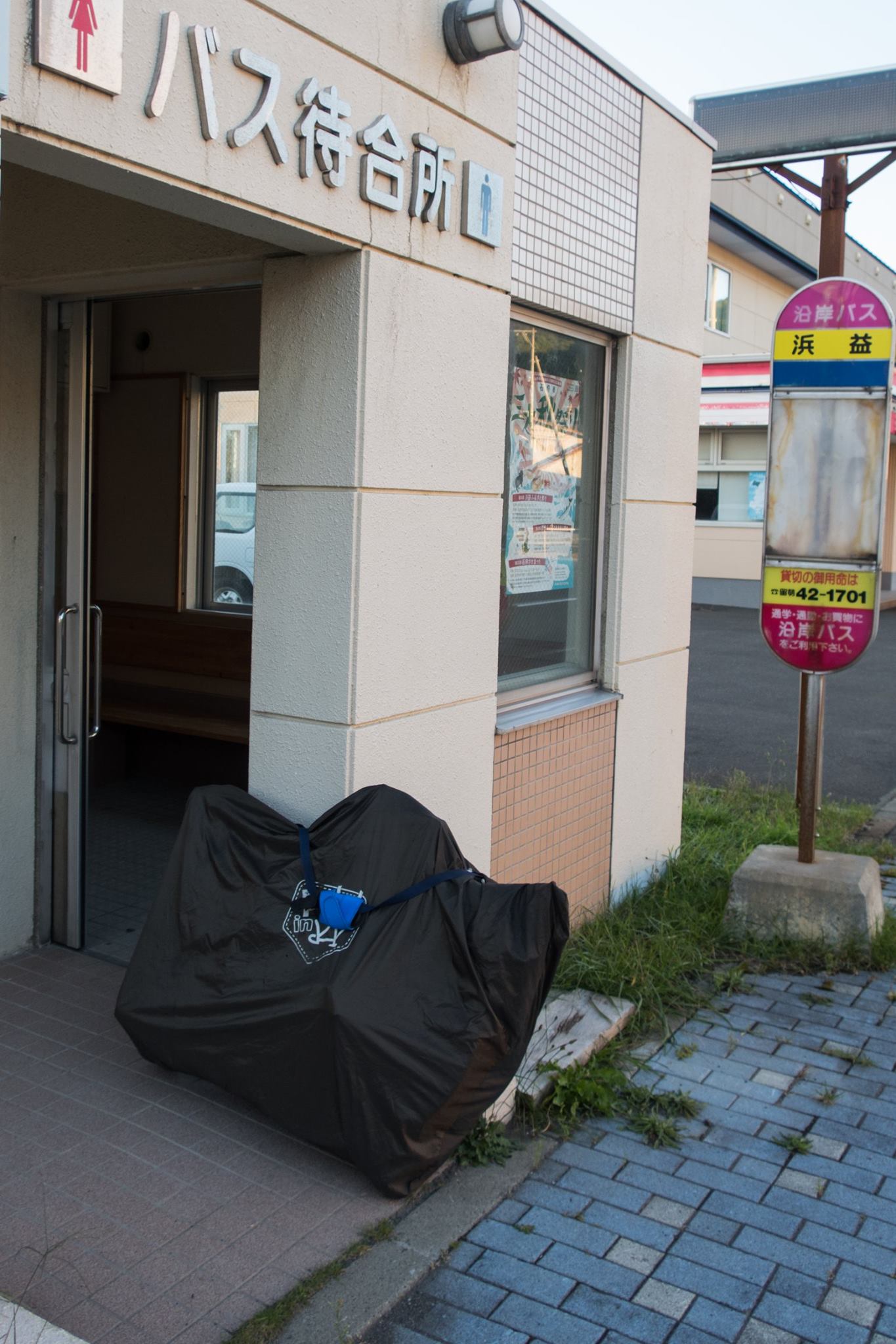 宿の目の前にある“増毛バスターミナル”までチャリで走って、そこでパッキング。