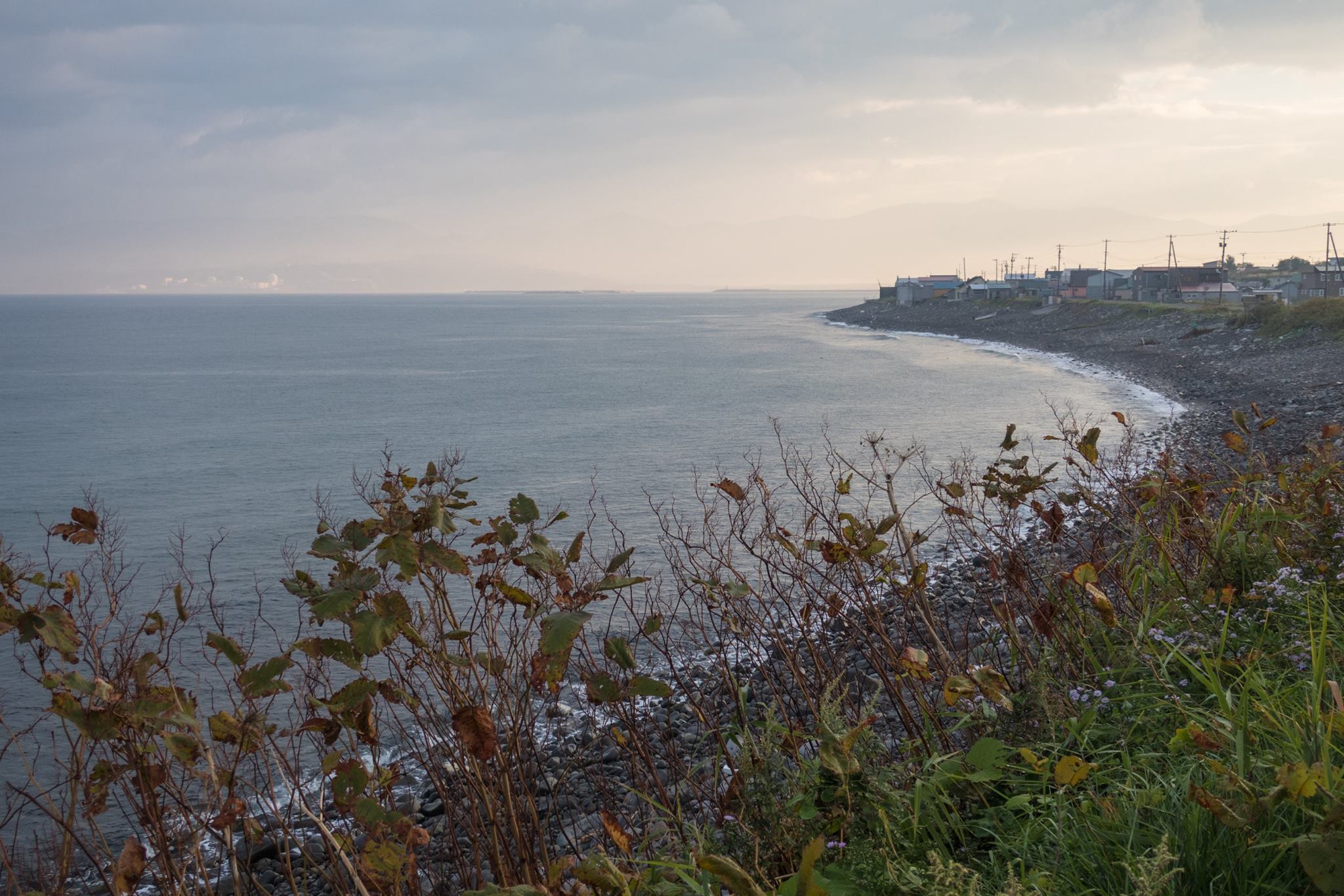 浜益のバス停で、バスを待っている間に、陽は水平線に沈んだ。まだ18時前。陽が短くなったものだ。バスから眺める残照の海はきれいだった。