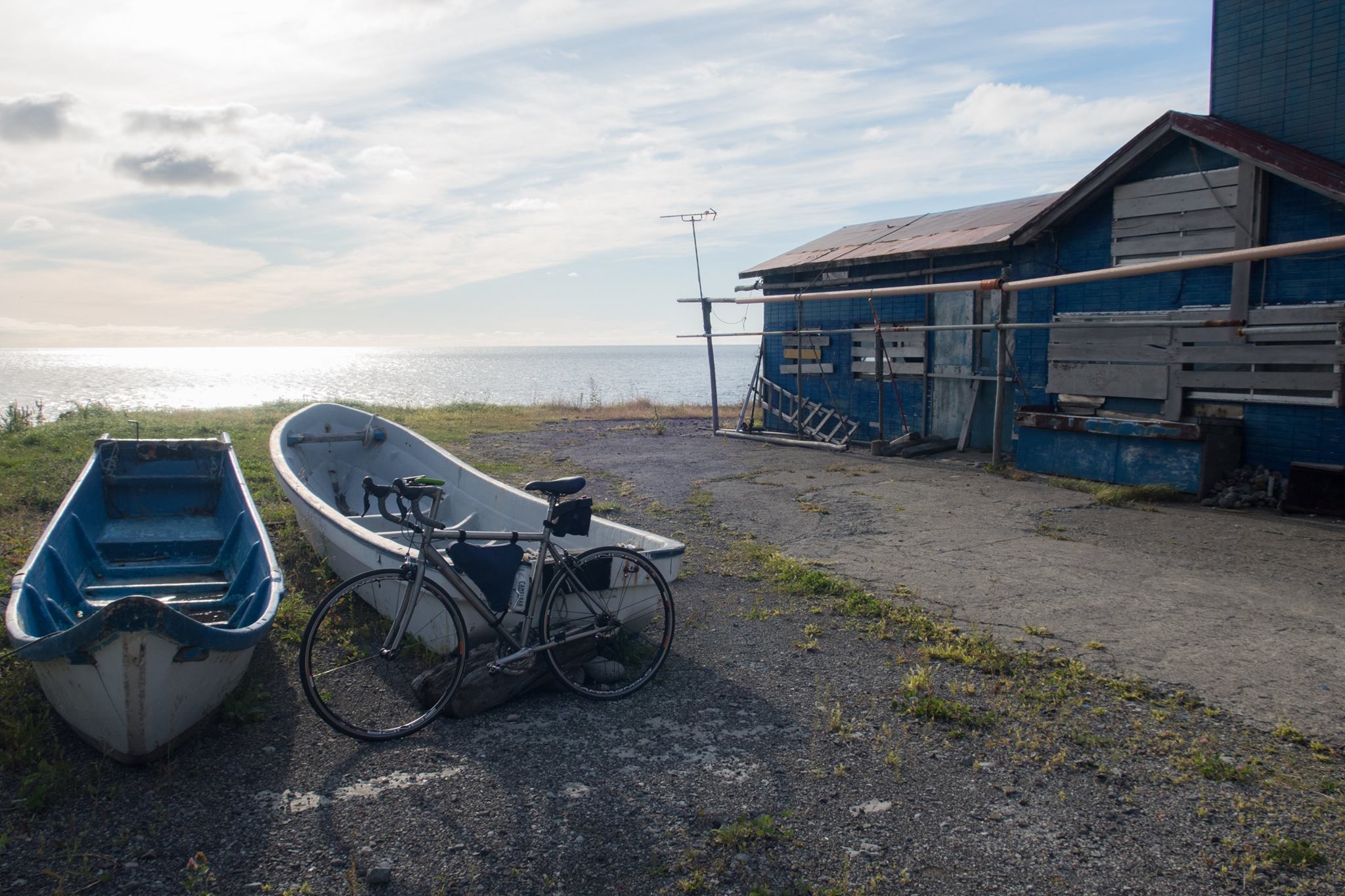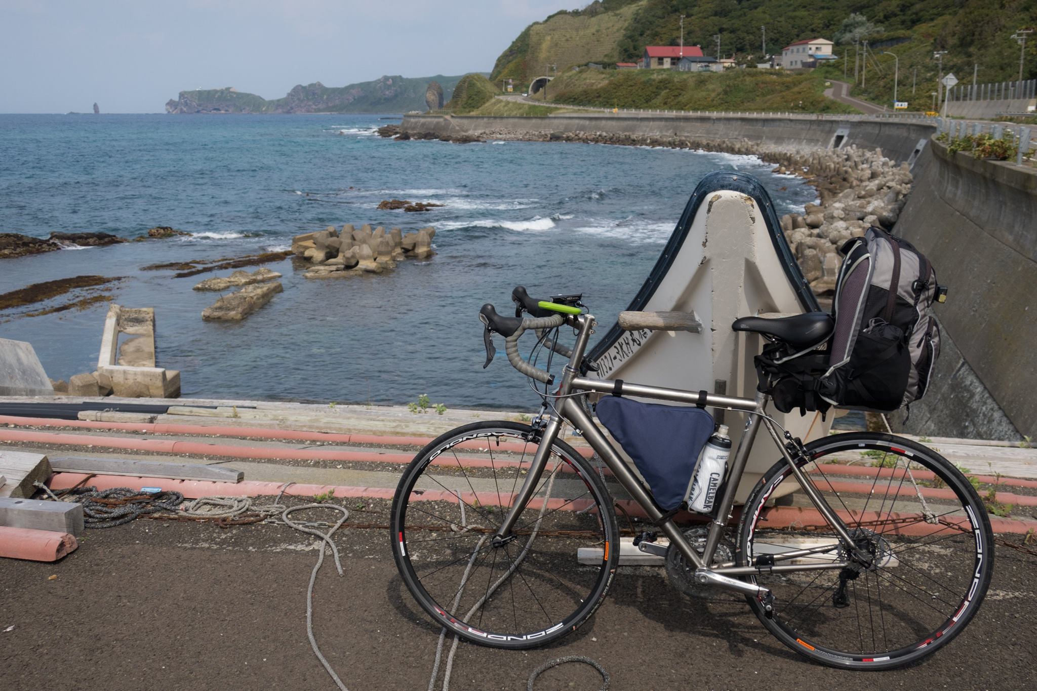 浜益のバス停で自転車を組み上げ、9時にスタート。スタート時は晴れ、そののち、徐々に曇り。