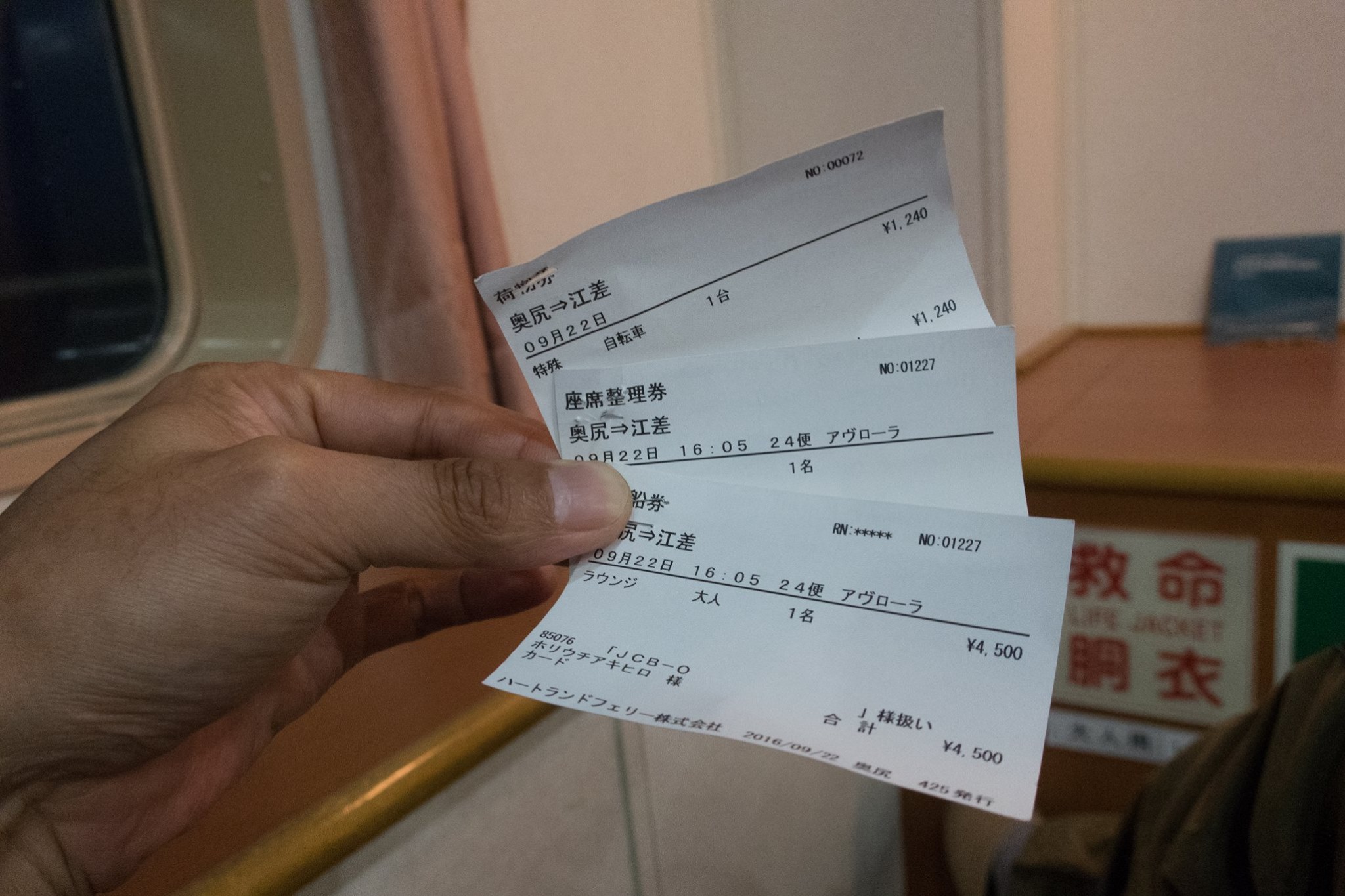 奥尻(奥尻港)[16:05発]→江差(江差港)[18:15着]