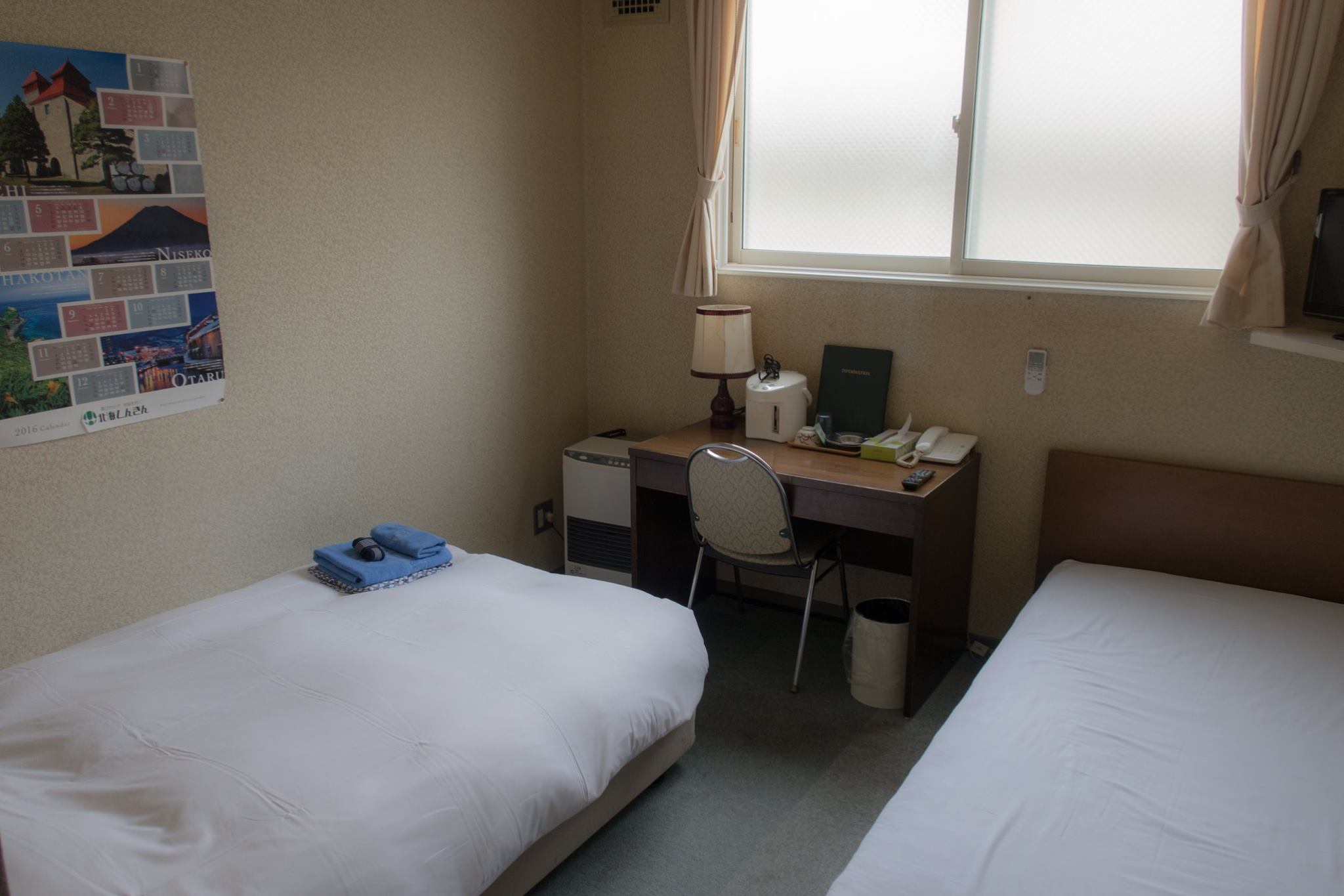 オーセントホテル小樽 に到着。予約していたのはシングルだったので、「広めの部屋の空きを聞こうかなあ・・」などと思いつつ、「まあいいや」とそのままC/inすることにした。とても感じのよいマネージャー格の男性が案内してくれて、自転車はビル駐車場の一角で預かってくれることになった。