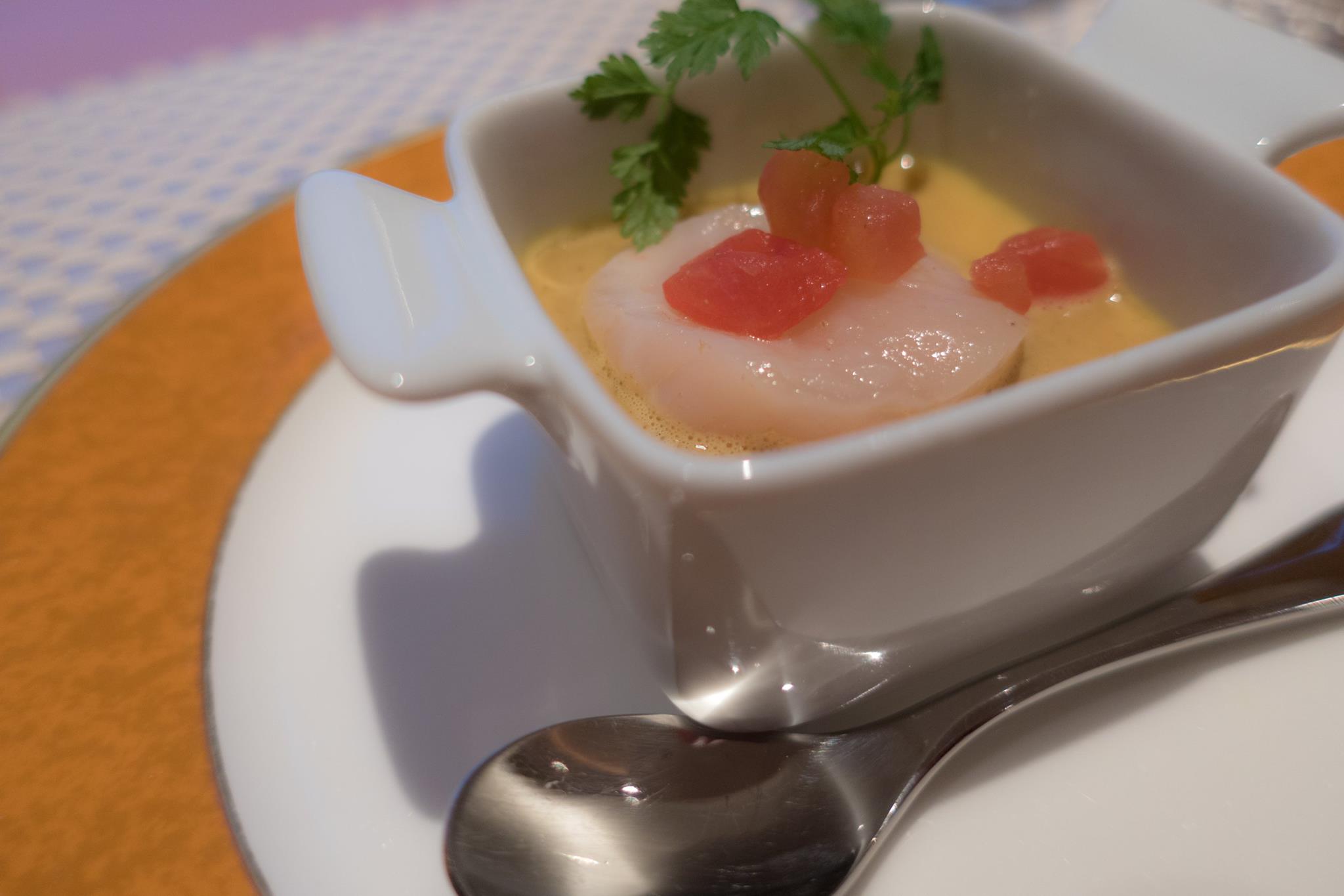 10分遅れただけなのに、すでにフロントまで迎えが来ていて、テーブルに着くなり、こちらのペースは関係なく、料理が矢継ぎばやにでてきた。
