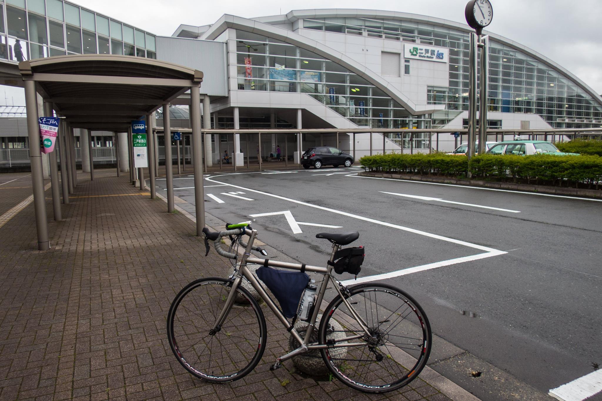 二戸の手前、金田一あたりから降ったりやんだり。二戸駅到着すると、自分は西口、F爺は東口。跨線橋をチャリ押して東口に渡りピックしてもらう。