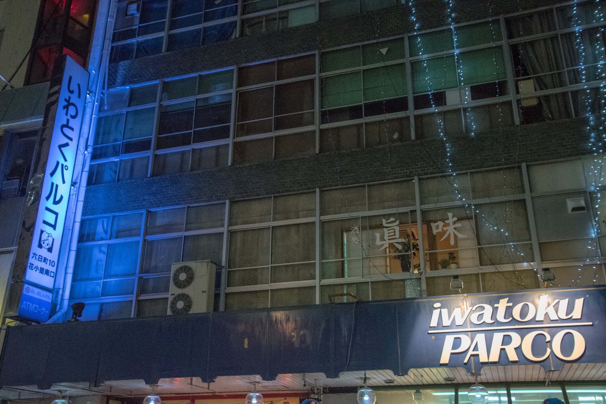 O氏が18:40に駅前まで迎えにきてくれて、本八戸まで移動。「たちばな」の駐車場にクルマを置いて、繁華街まで歩く。なんだか階段登るのがやっと、というほど脚の筋肉が痛い。