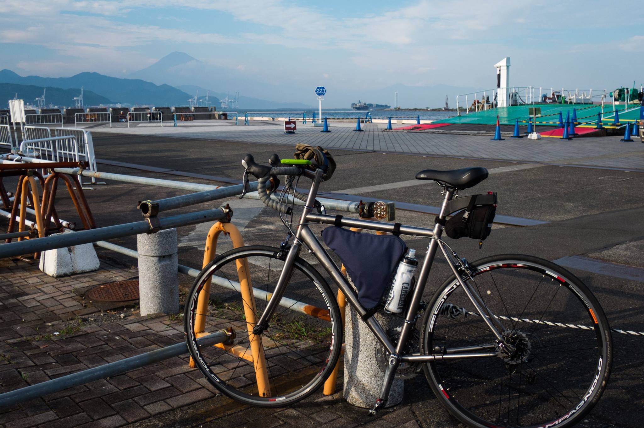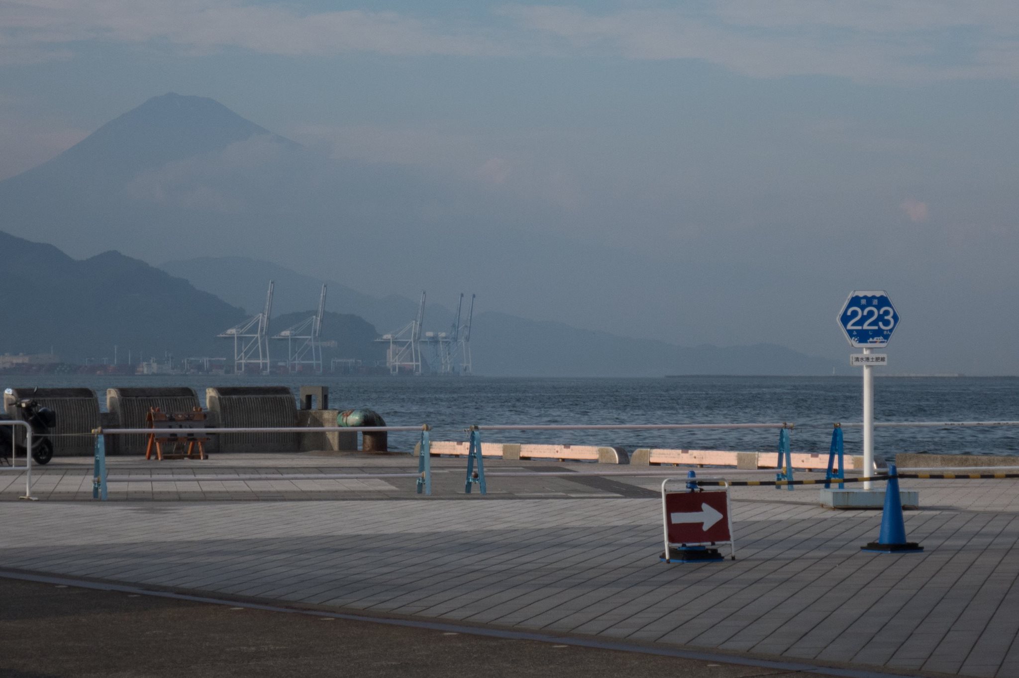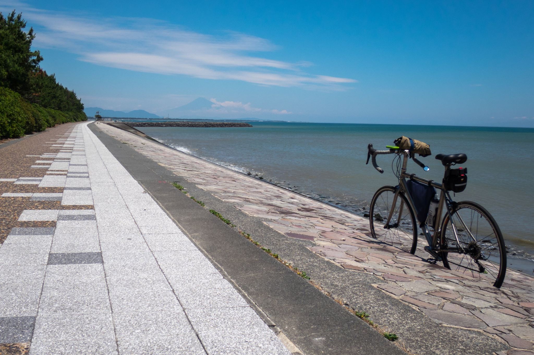 静岡から再び海岸沿いを走り、美保の松原(この手前から向かい風に変わる)を経て清水港著。