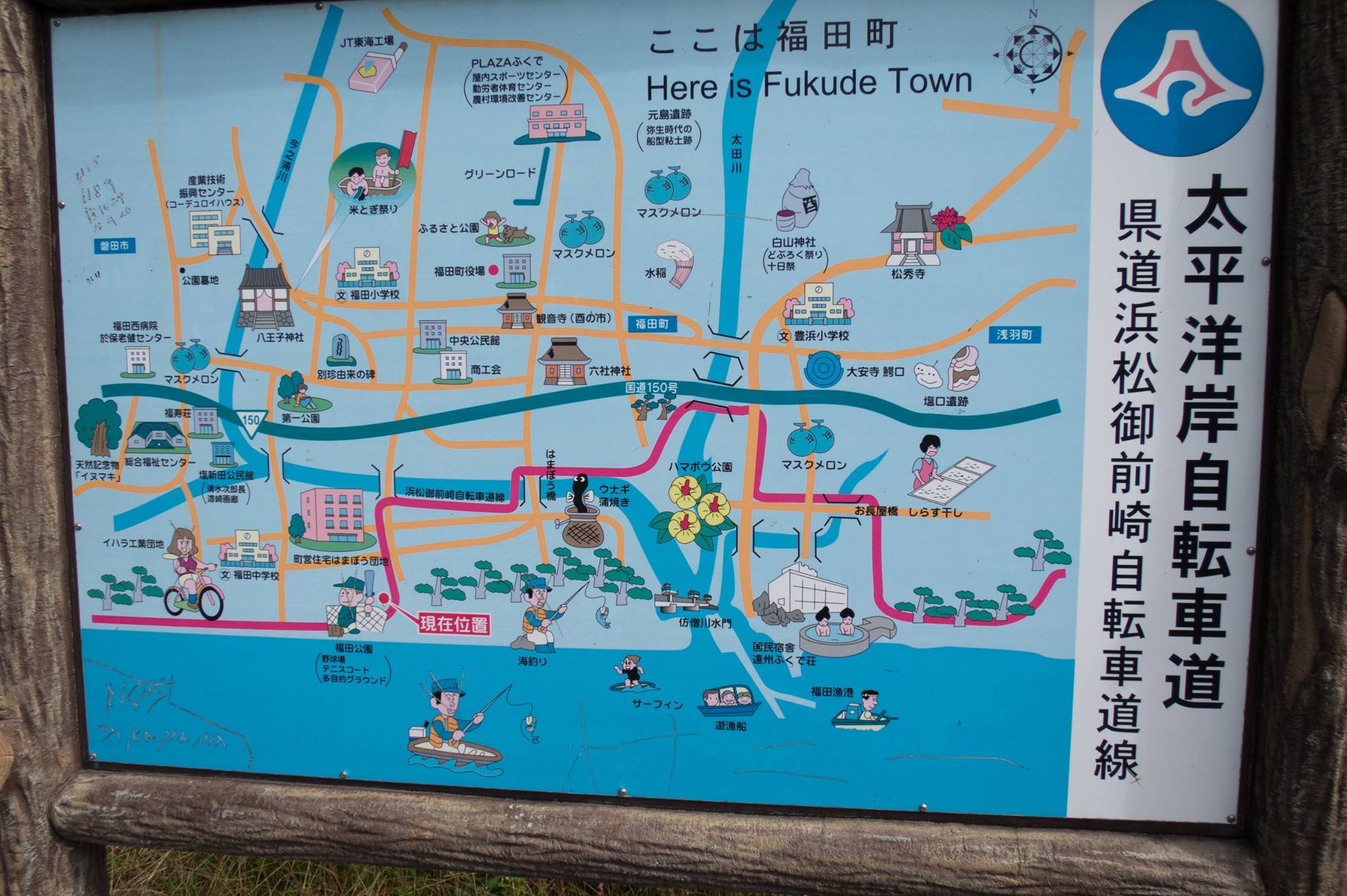 R150日本坂トンネルは自転車・歩行者通行止めのため、太平洋岸自転車道に戻り、朝比奈川沿いに内陸に入り、県道208 — 国道1号 — 二軒屋交差点 を経て、丸子川沿いに静岡市内へ下る。