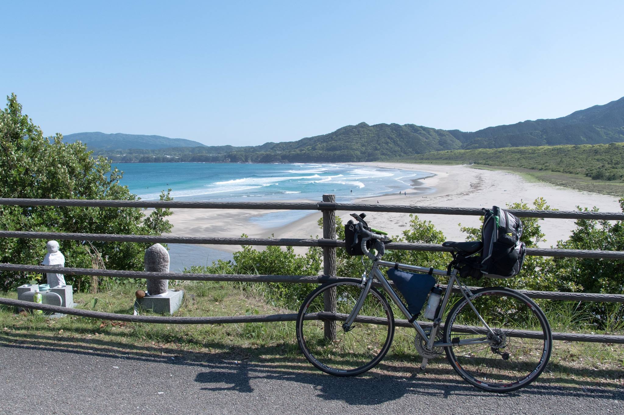 中村駅前で自転車を組み上げて足摺岬に向けて走り出す。