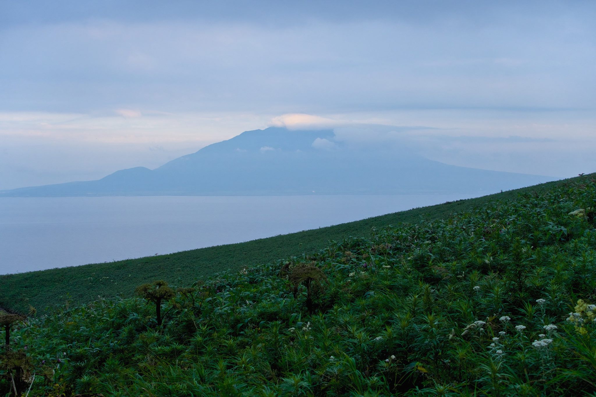 空港で自転車を組み上げ利尻を一回りしてホテルまで。曇天。