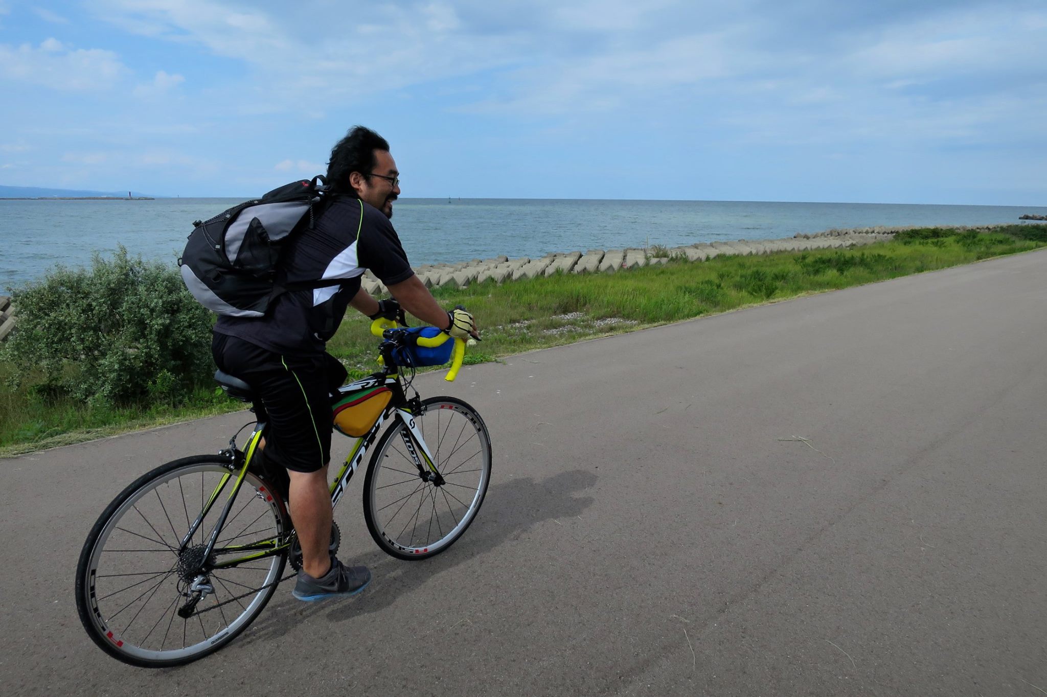 翌朝一番の“しらさぎ2号“で加賀温泉駅まで移動。そこからスタートして、海沿いに富山市の神通川河口までを走った。以前に糸魚川から富山までを走った時と同様、”萩の湯”で汗を流す。