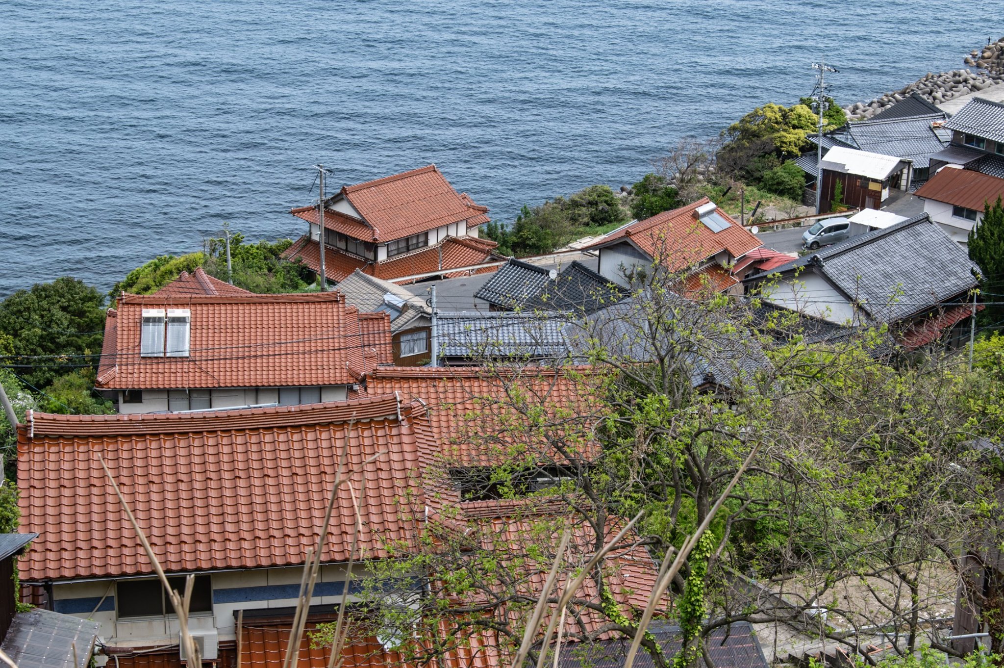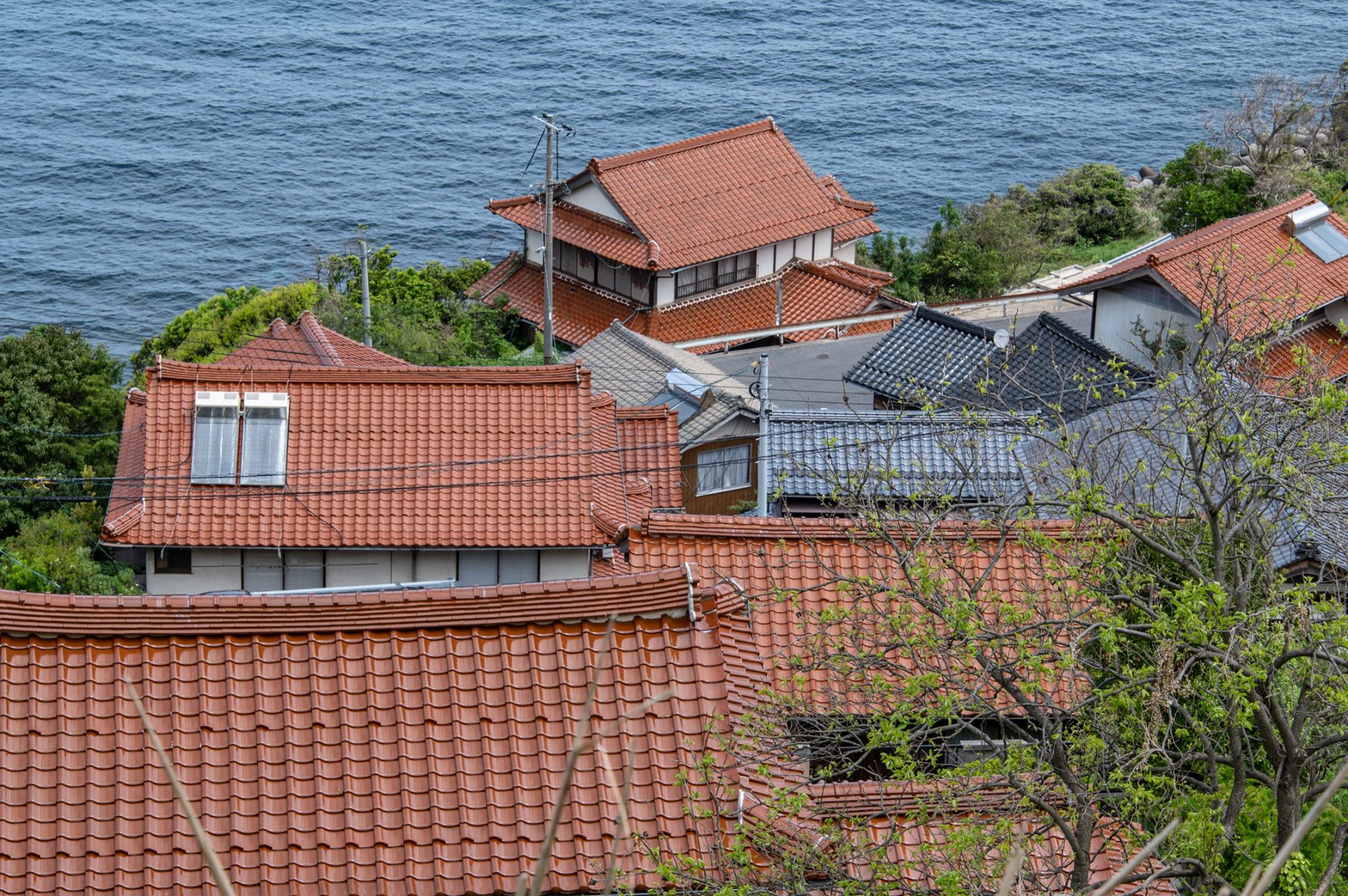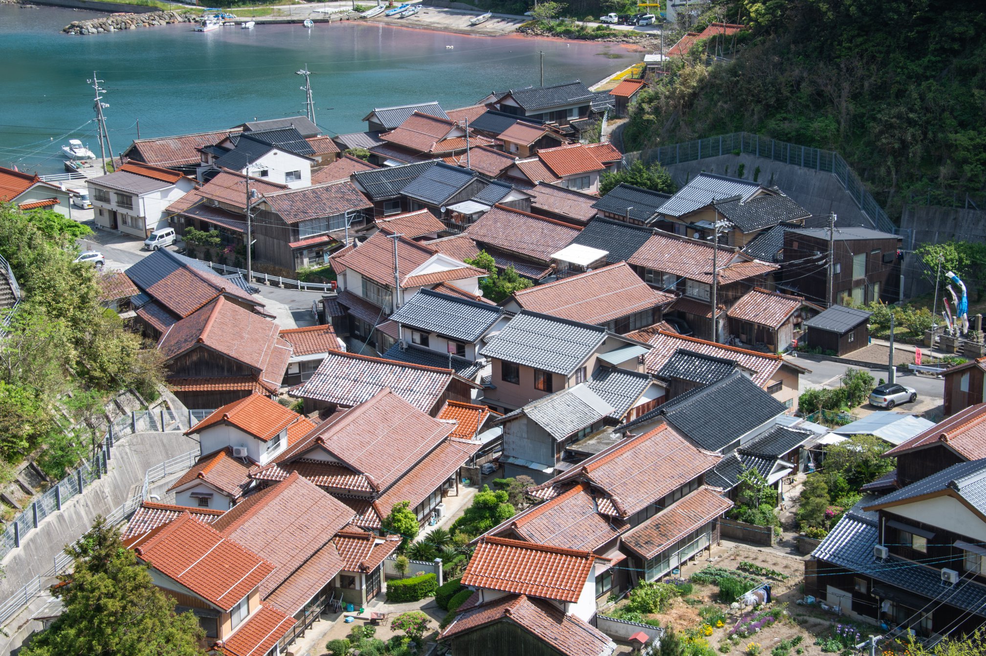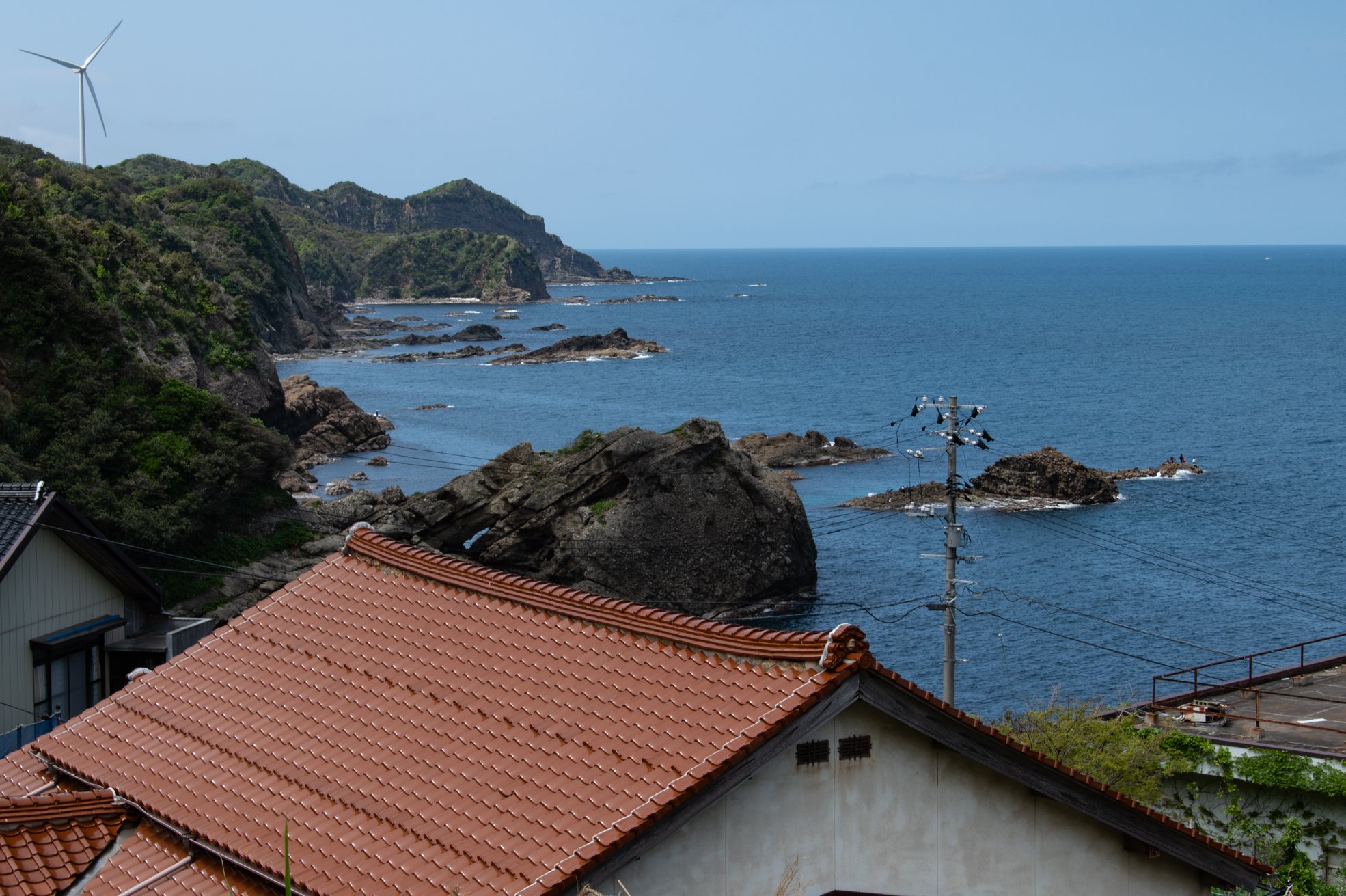 塩津から十六島を抜けて北浜へ出るあたりが、クライマックス。赤瓦と海の青の対比がとても美しい。