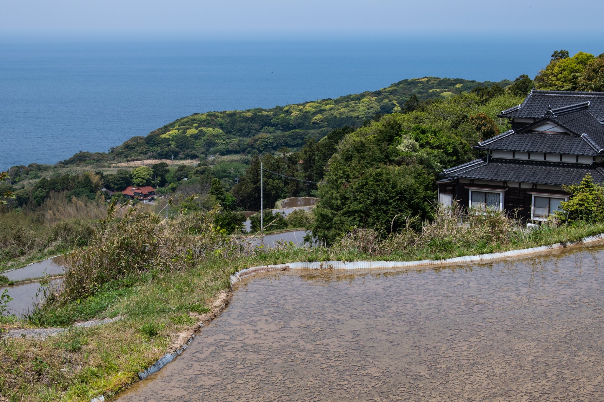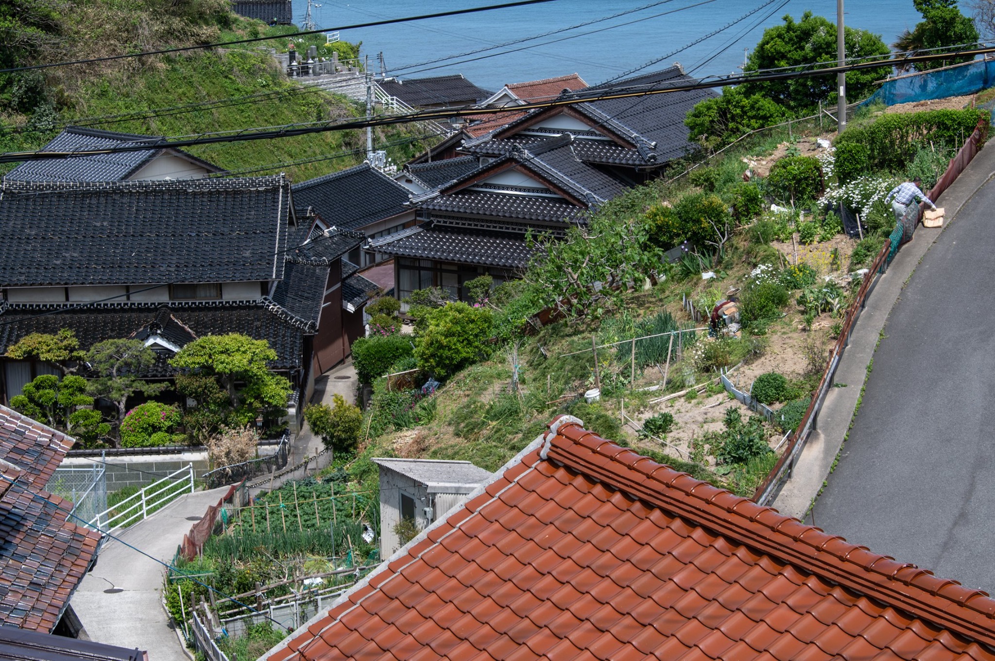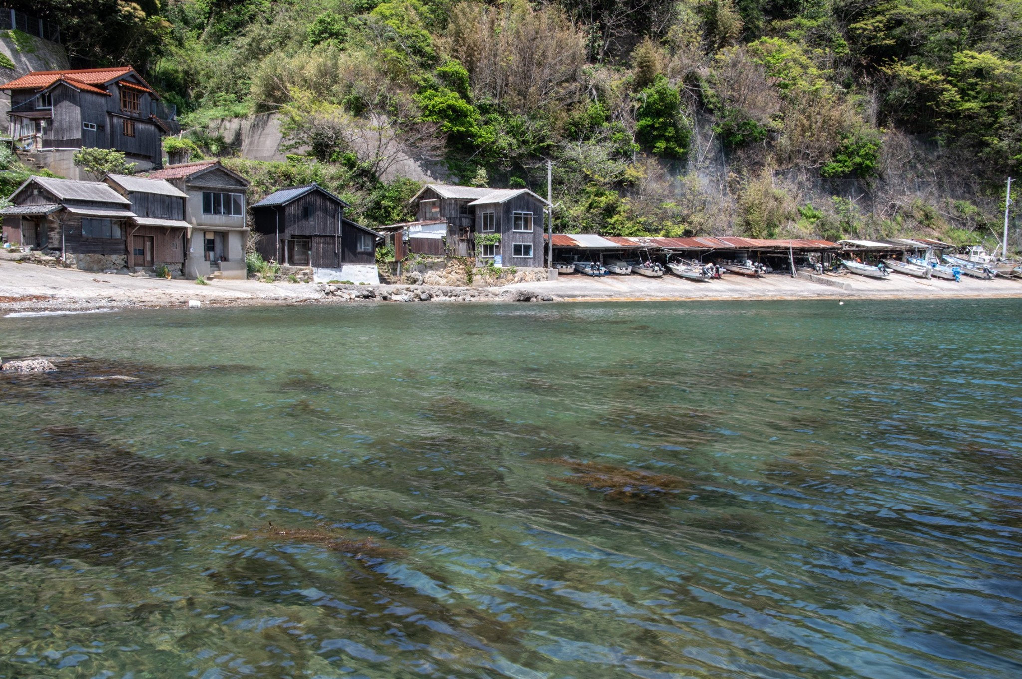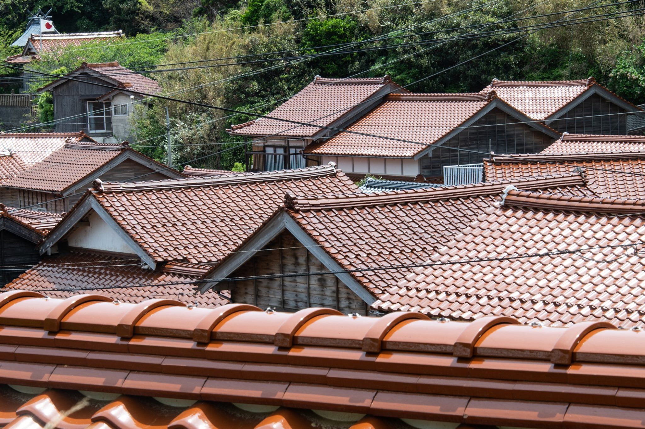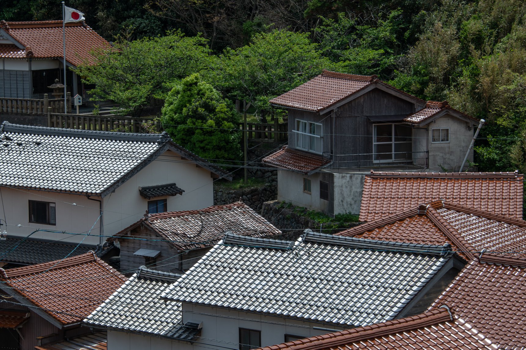 塩津から十六島を抜けて北浜へ出るあたりが、クライマックス。赤瓦と海の青の対比がとても美しい。