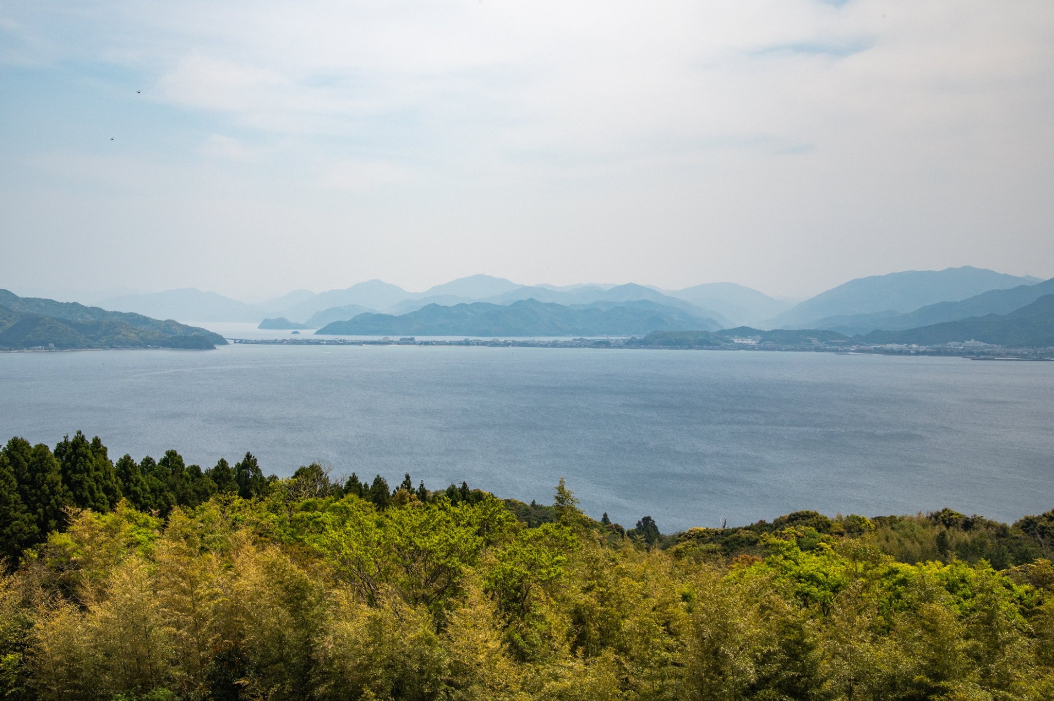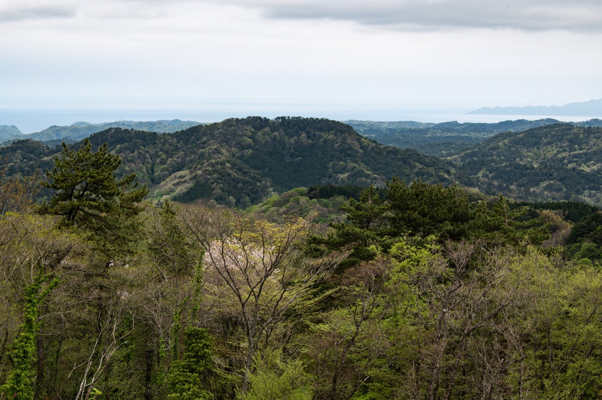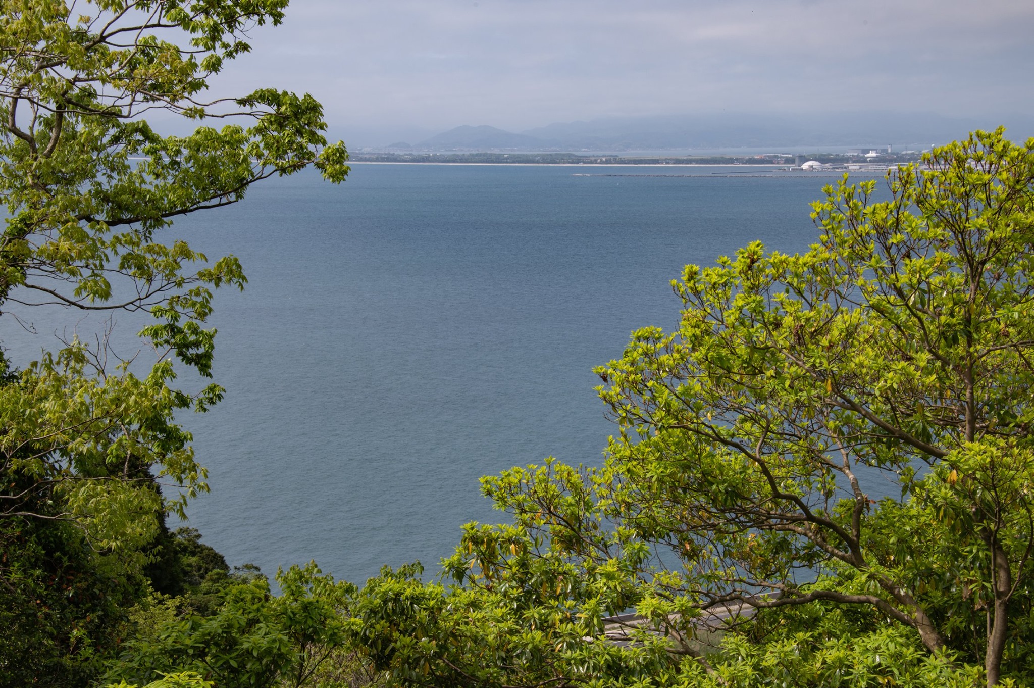 南の山沿いは、おそらく雨が降っているだろうと思われるくらい空が暗いが、北の海の方角には雲の切れ間も見える。