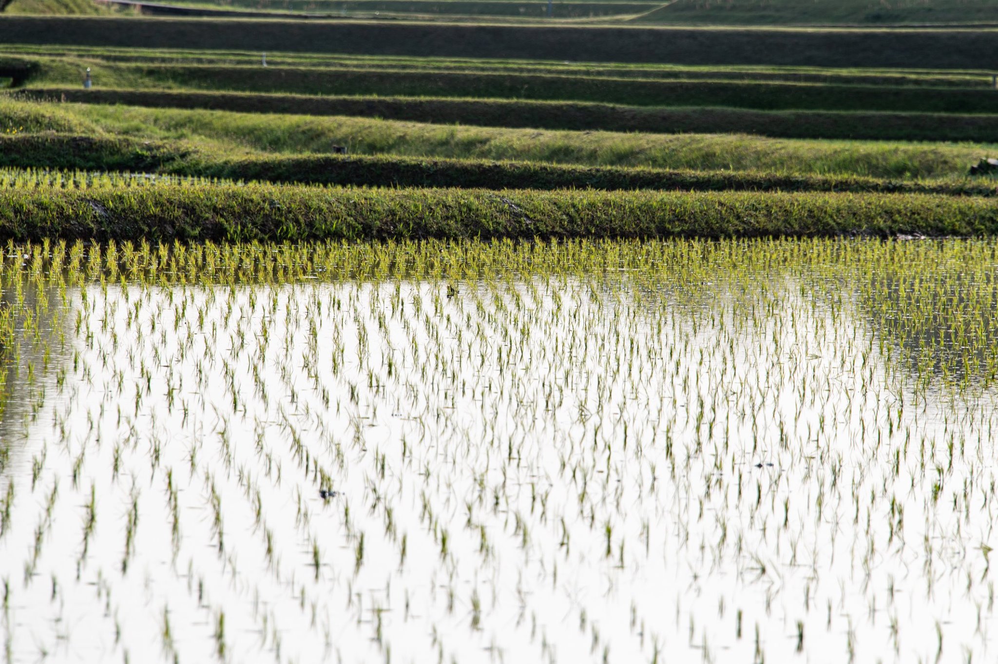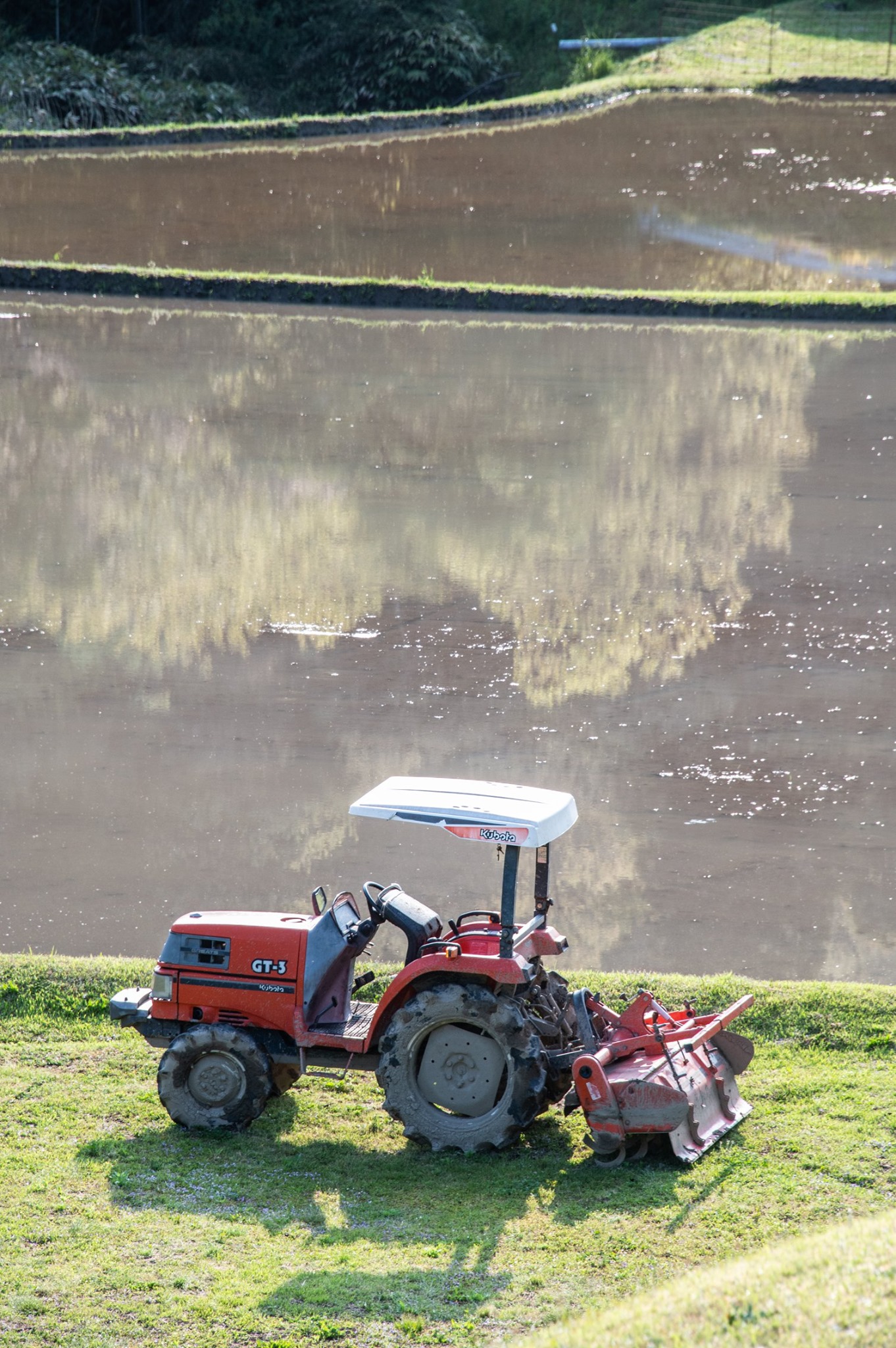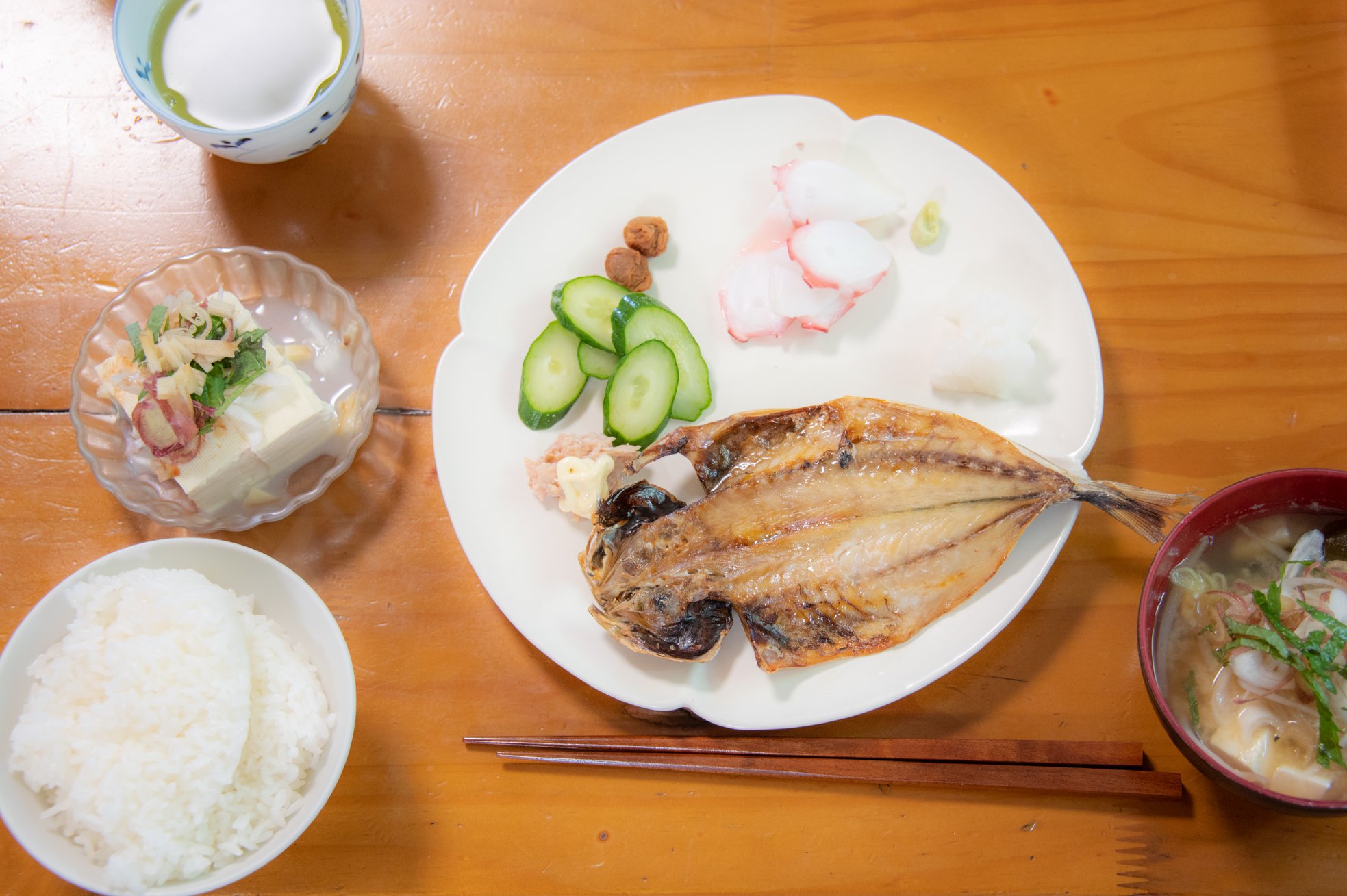 08:00ちょうどになって、通勤のピークを避けるため、内日第二貯水池付近の道ばたで朝食休憩20分。