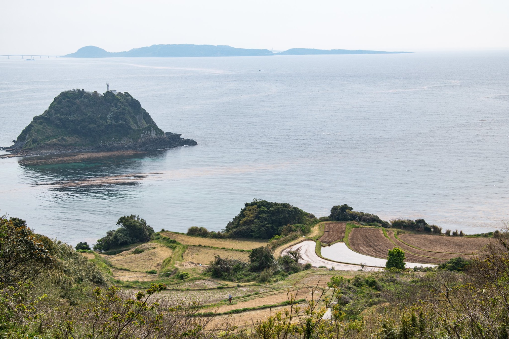 油谷島からは遠く角島と角島大橋が見渡せた。