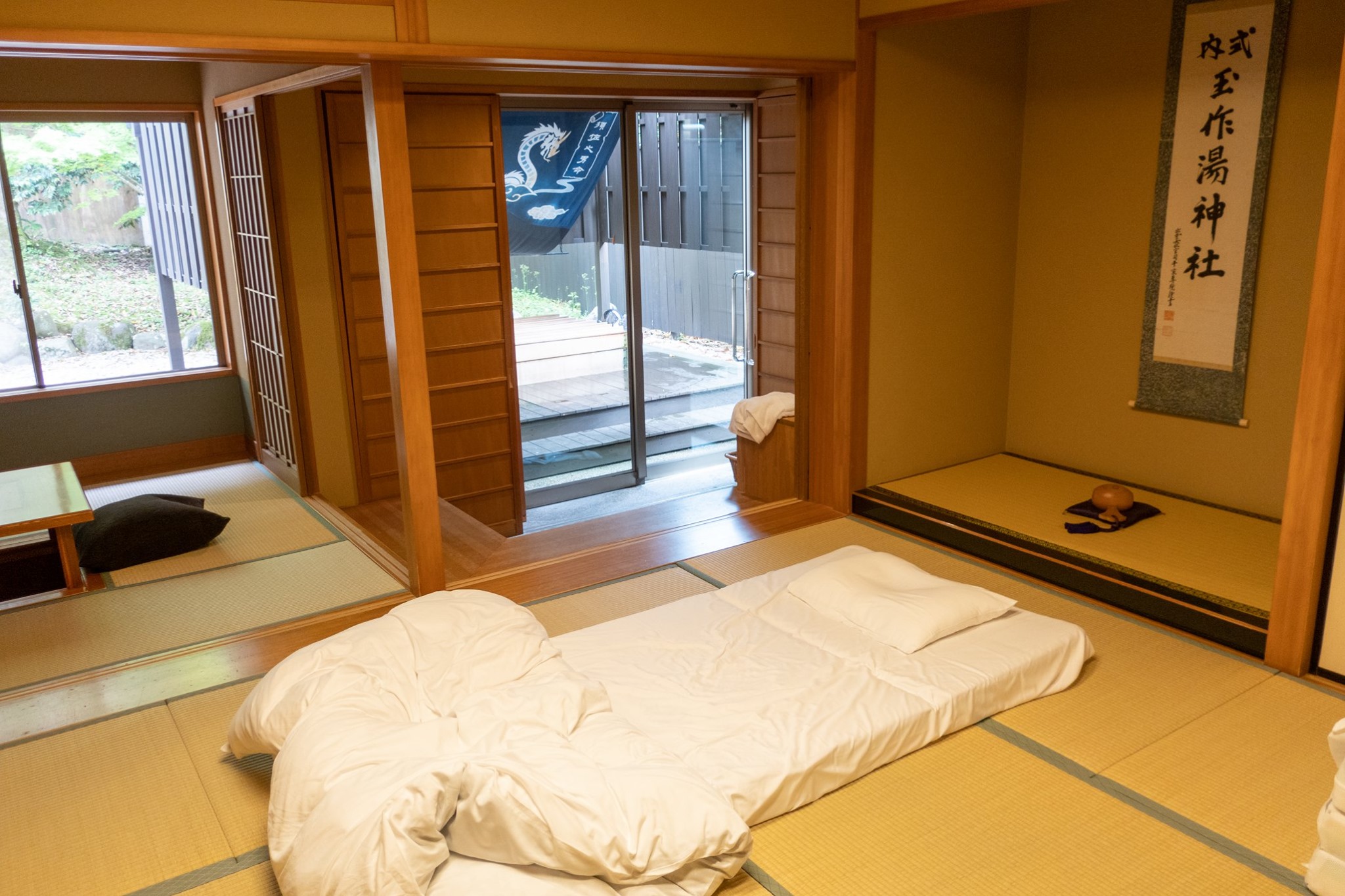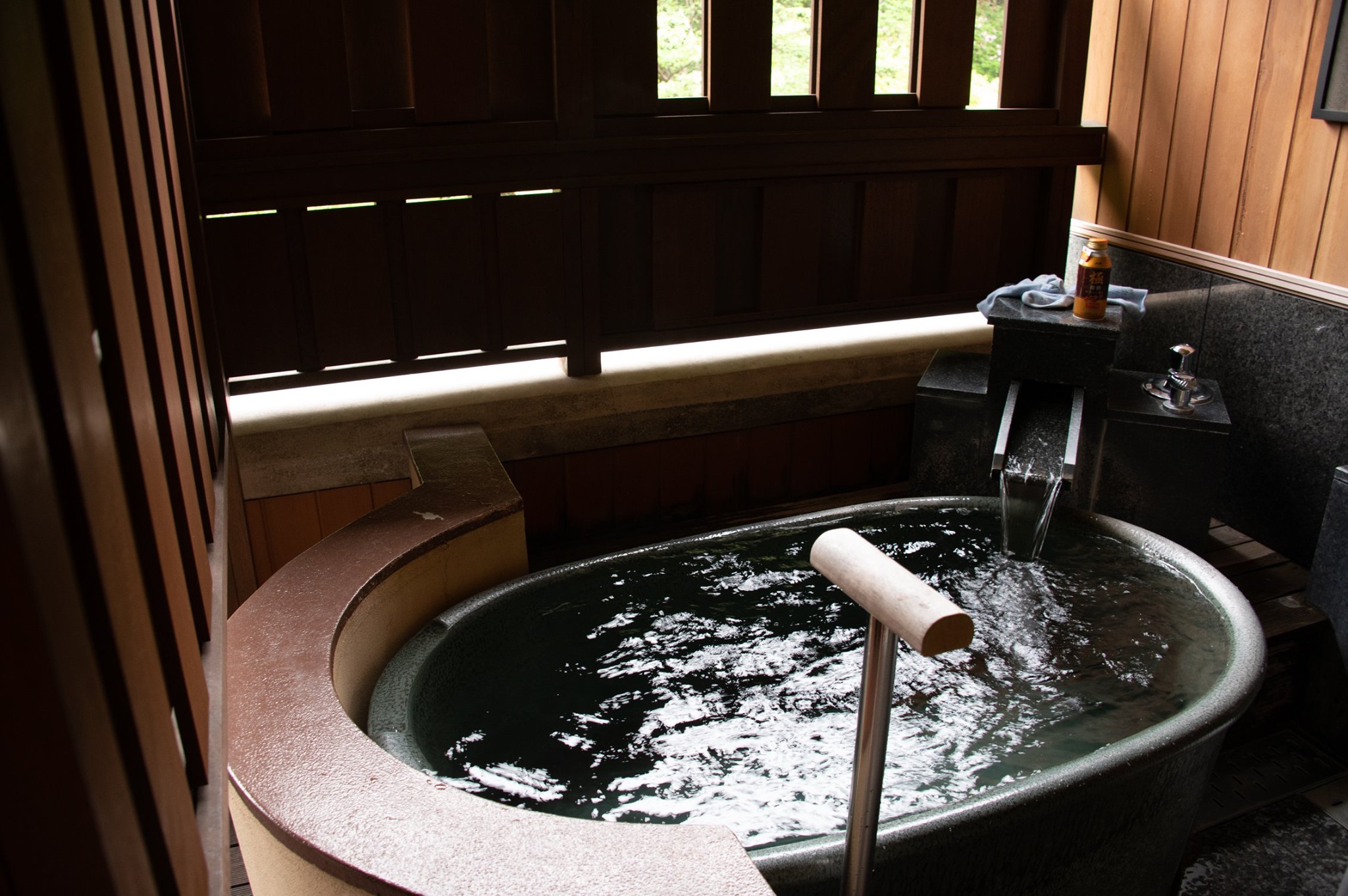 チェックインしてすぐに浴場へ向かう。幸いなことにお風呂には自分1人。大風呂にゆっくりつかり、露天に出てくつろいでいる間に他の客が入ってきた。