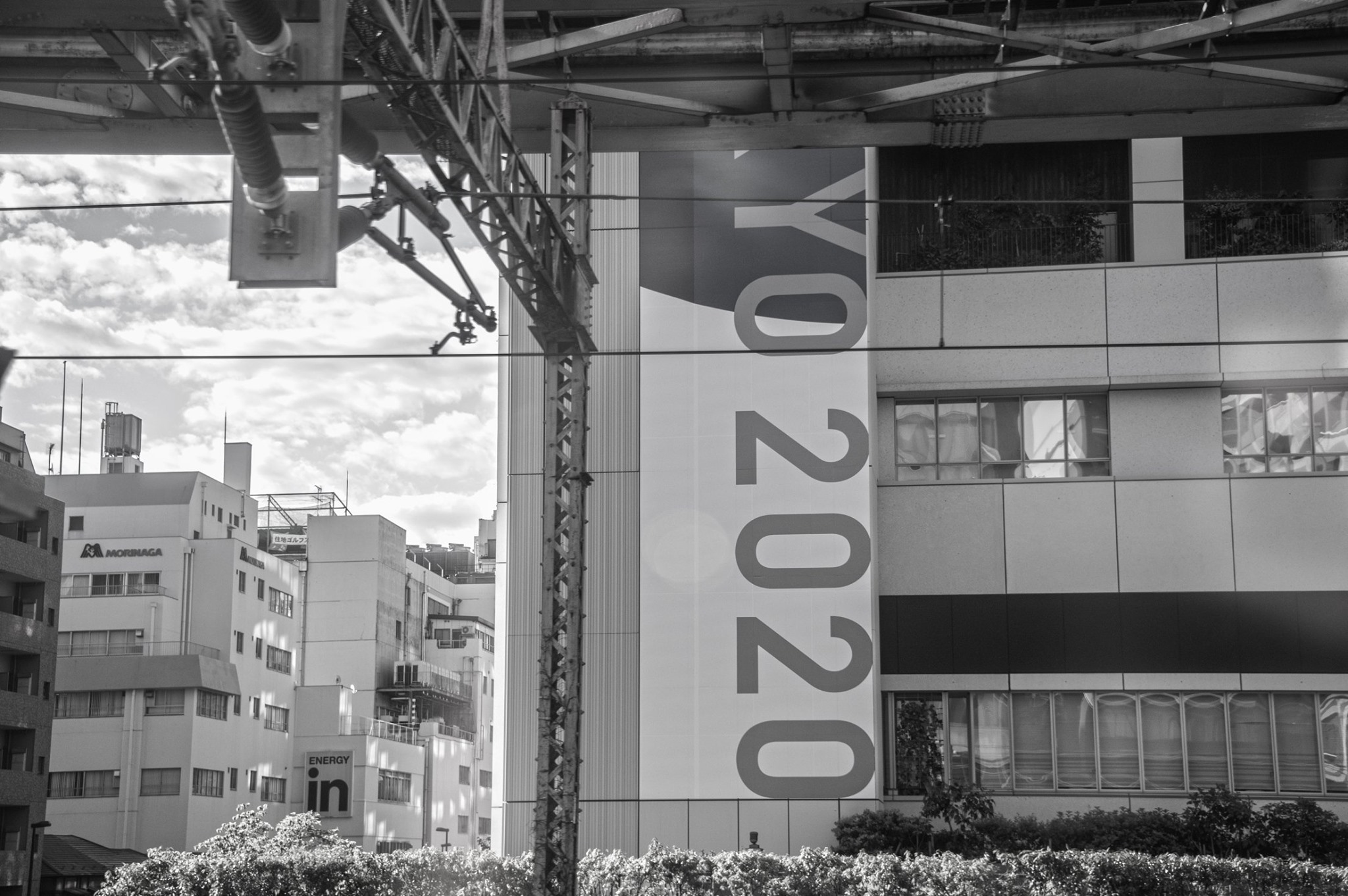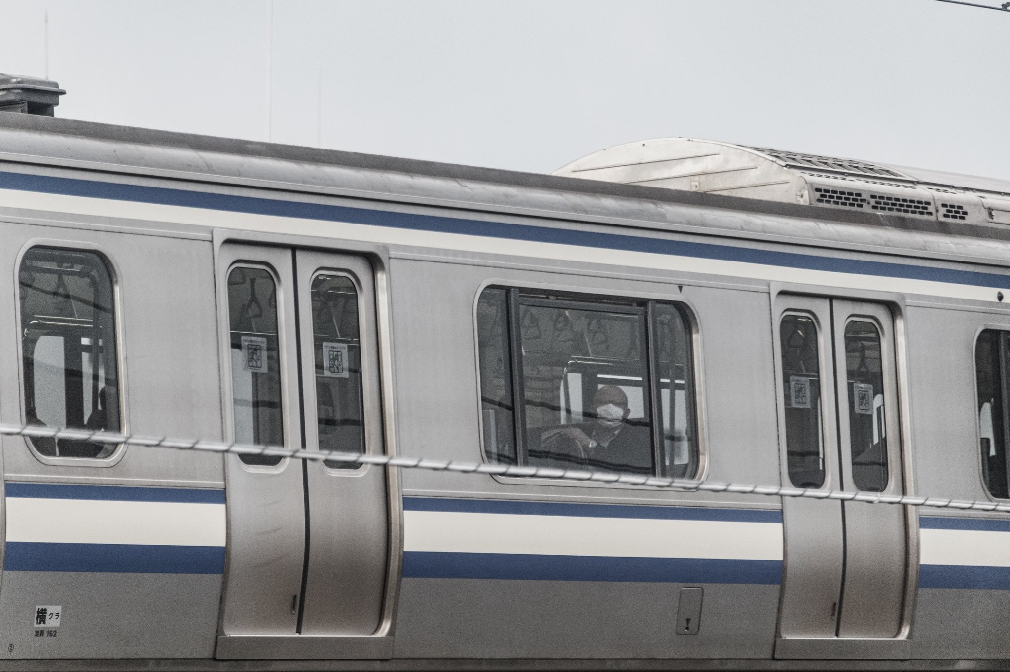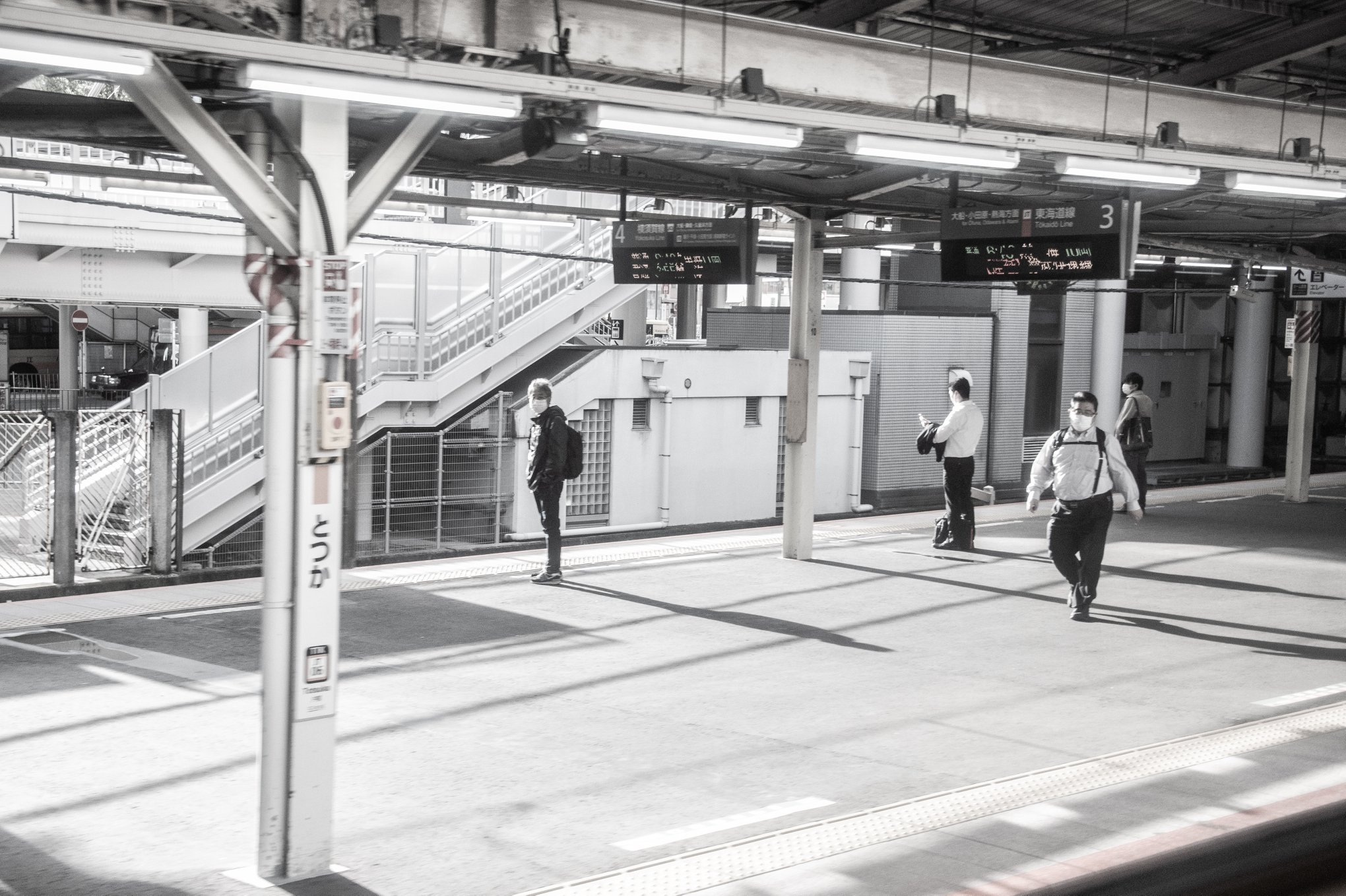 夜明けから、車窓の外の駅の様子を写真に撮る。