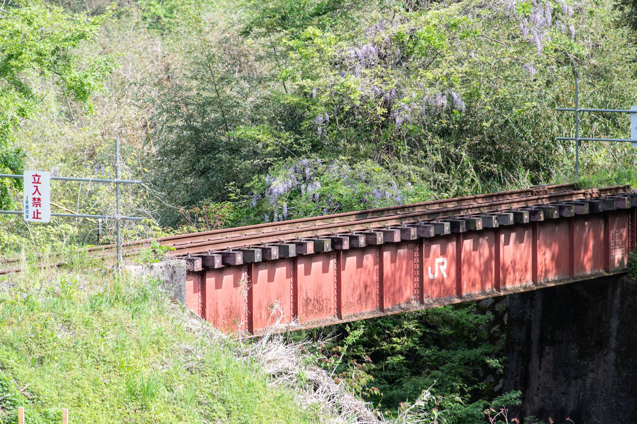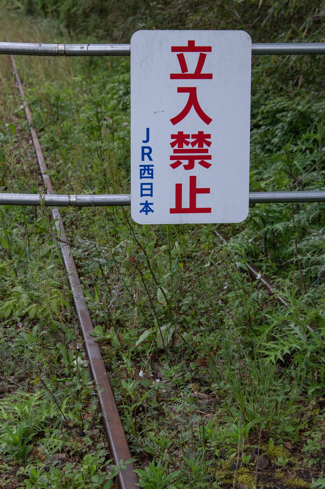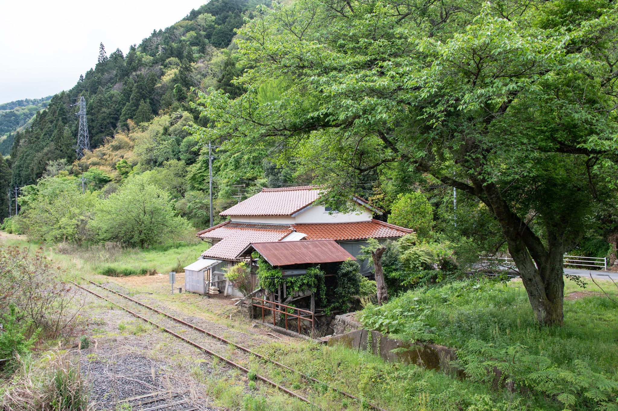 金本の町をぬけたところで、ジャケットとオーバーパンツを脱ぐ。この日も最高気温は25度くらいまで上がる予報(GW中は昨日の雨を除き、晴天に恵まれ、連日午前のうちから半袖短パン姿で走った)。廃駅の写真なぞを撮りながらのんきに進む。