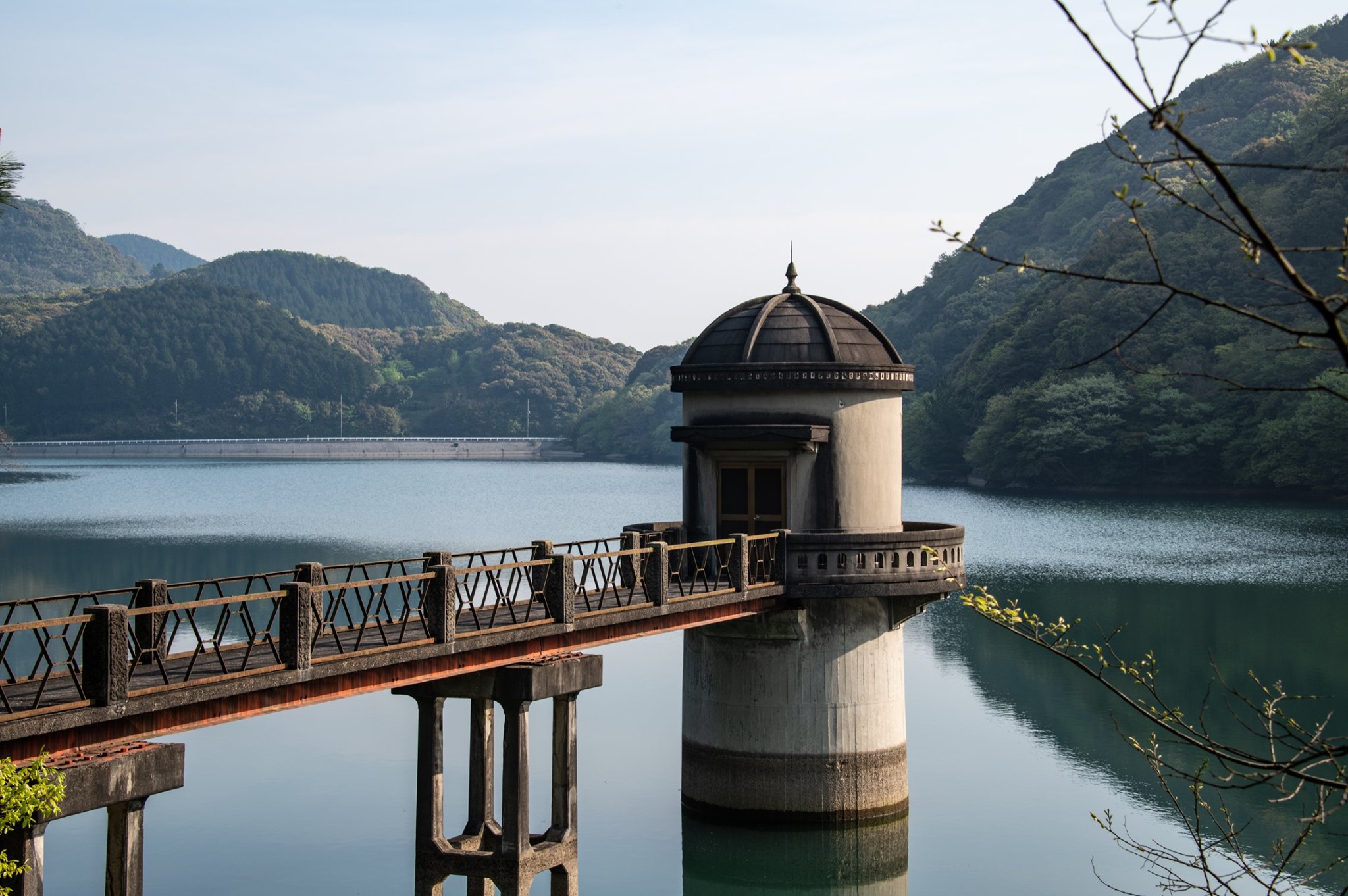 豊田湖まで来て、左岸を回る脇道に入って小休止。気温が上がってきたので、半袖・短パンに着替え、栄養・水分補給をして、のんきに湖の写真を撮りながらダラダラ進む。