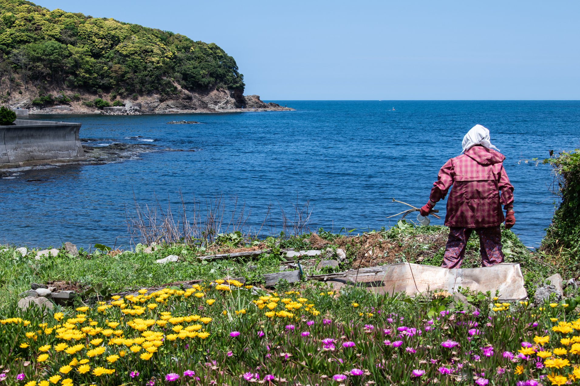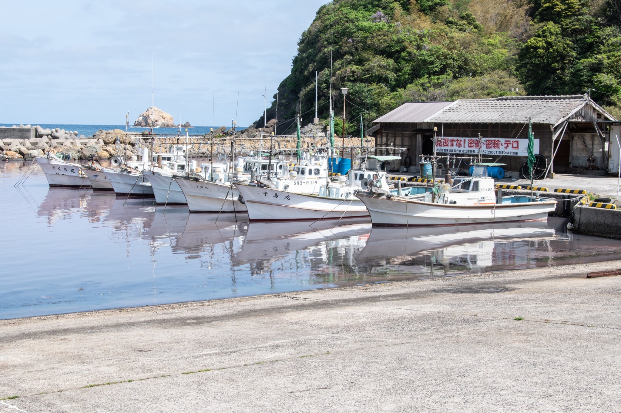 諸喰港、美保の北浦を抜けて七類港へ至る。七類の町を抜け岬の先を一度訪ねてから、再び県道37号(松江鹿島美保関線)に戻って西へ進む。ここから先はセンターラインのある整備された県道になった。