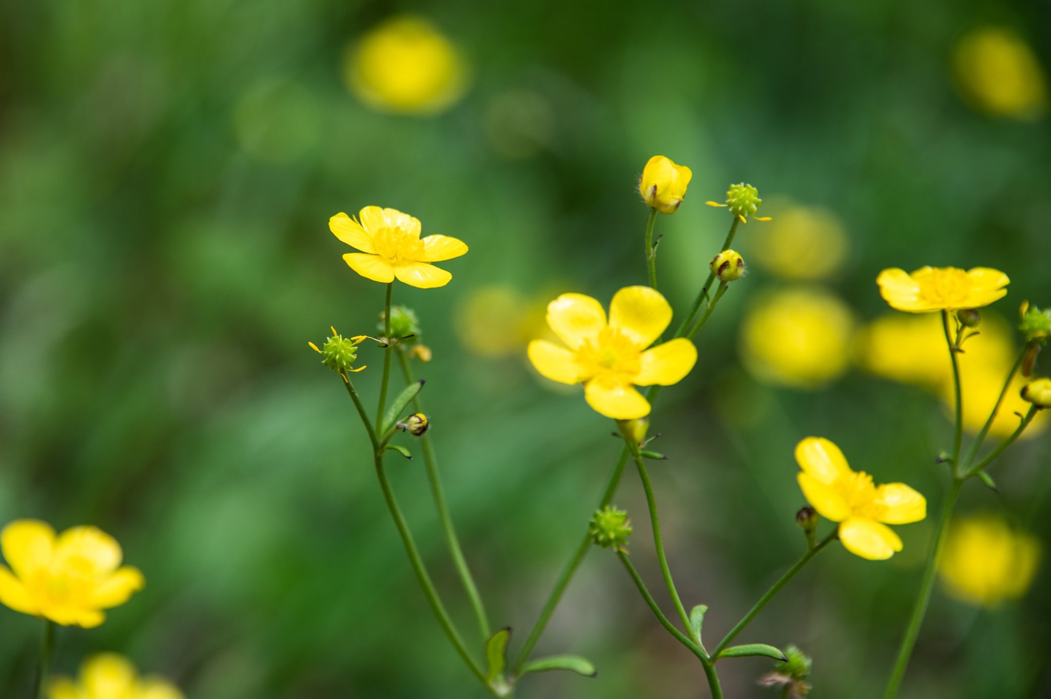 美郷町で江の川と三江線を離れ、県道40号線に入り三瓶へ向かう。志学から三瓶山高原道路(県道30)へ折れ、三瓶山へ登る。三瓶山高原道路を時計回りに進んで、再び県道40に戻って東へ進み、掛合町波多からは飯石ふれあい農道を進む。ここから掛合町多根でR54にでるまでの山中の道端には一面にキンポウゲ(ウマノアシガタ)が黄色く咲いていた。