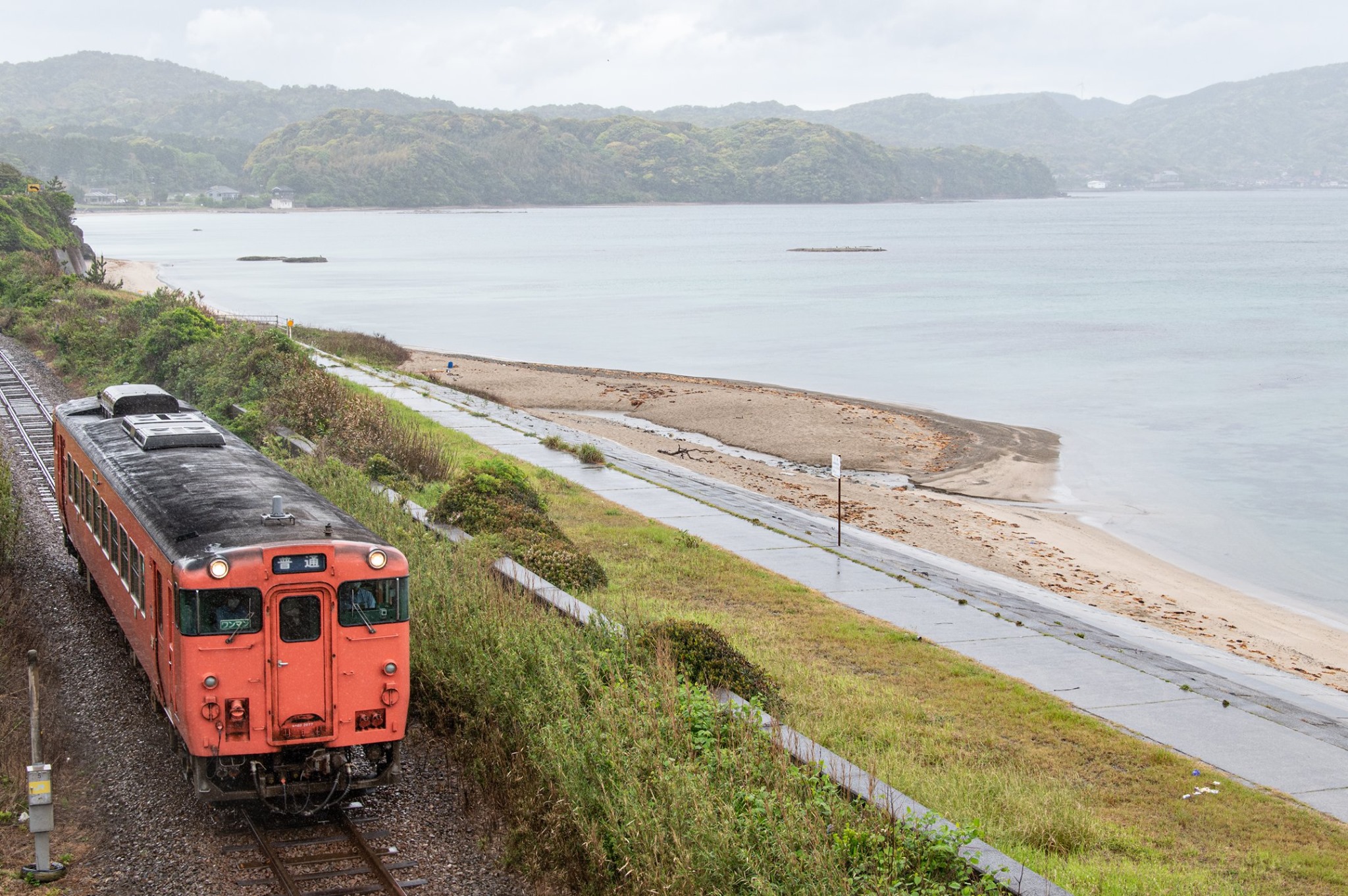 どうやら予報どおりに、一日中雨。そこで作戦変更して、自転車旅から離れ、山陰本線の写真を撮ることに一日費やしながら、車で浜田まで移動することにした。