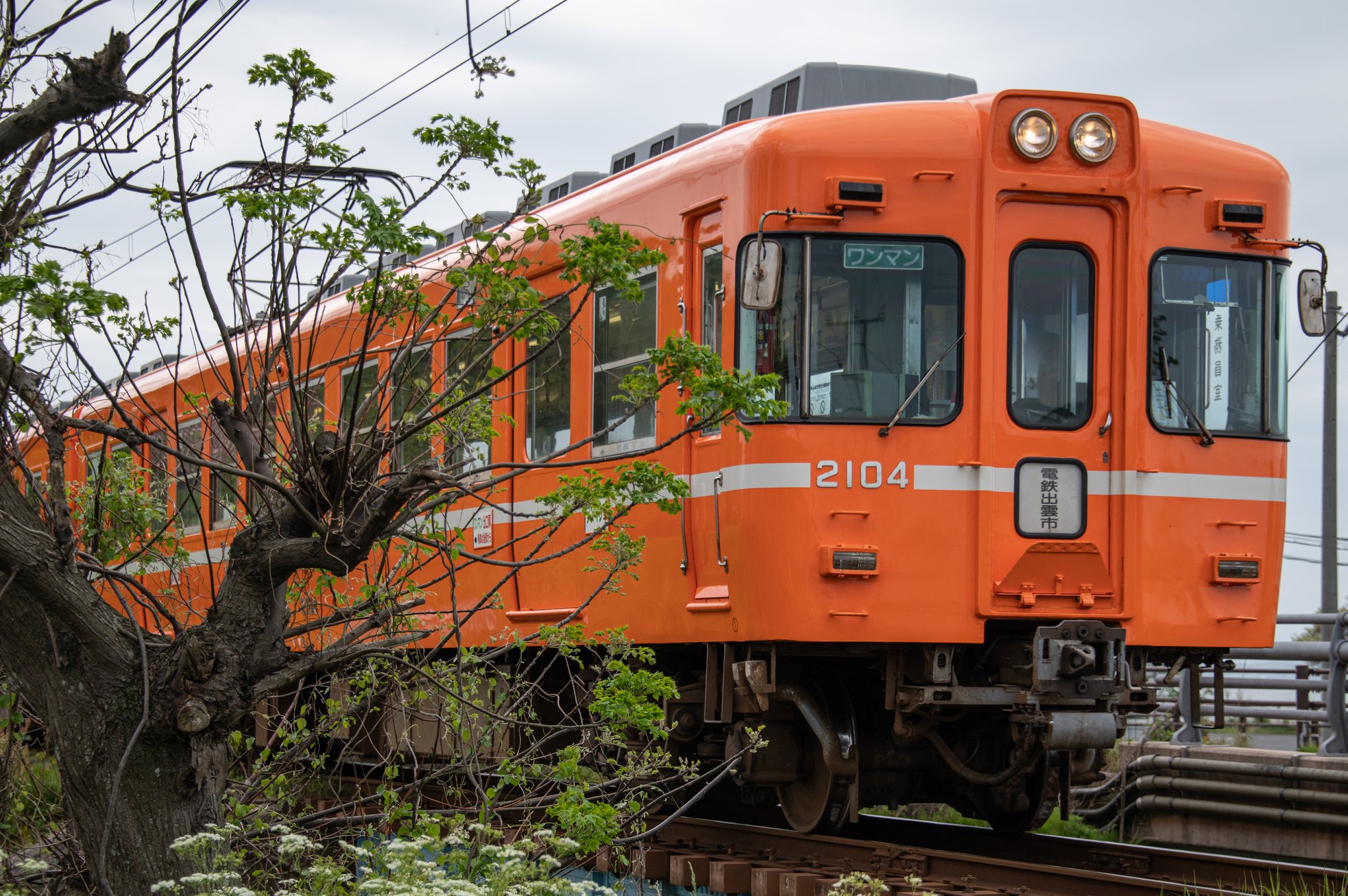 県道338を北に向かい再びR431にでる。坂本町から学園通りに入って城北通りに入り、県道を西へ走る。昨日のゴールの警察学校目指してR431へでて、R431をさらに西に進む。途中で一畑の列車に出くわしたので数ショット撮影。